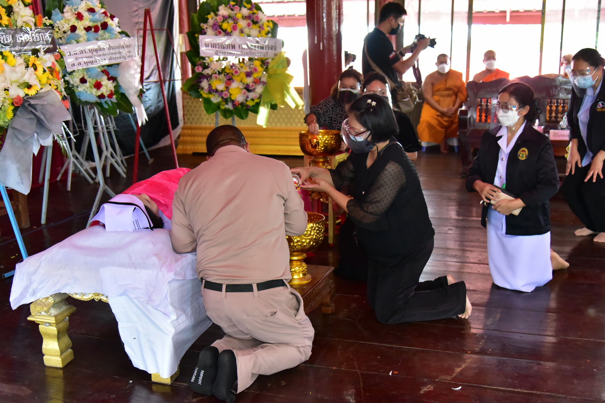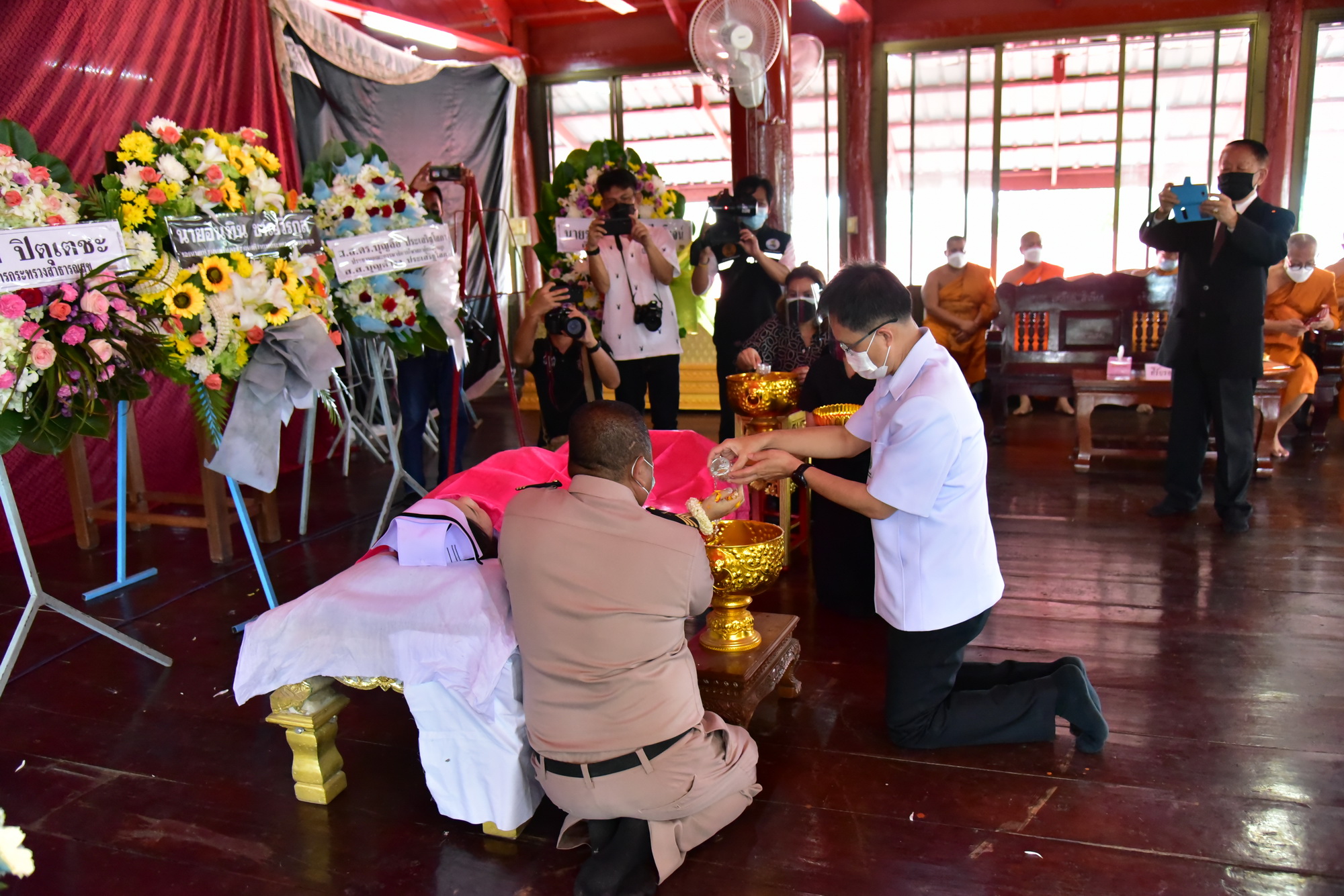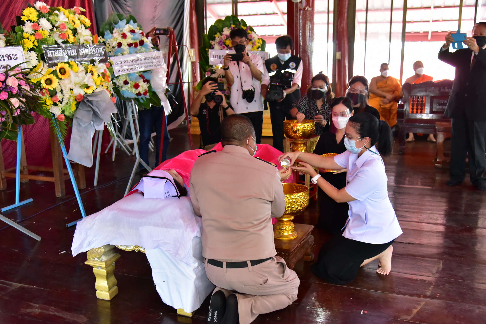 รัฐมนตรีช่วยว่าการกระทรวงสาธารณสุข เป็นประธานรดน้ำศพพยาบาลวิชาชีพ โรงพยาบาลเมตตาประชารักษ์ จ.นครปฐม ที่เสียชีวิต