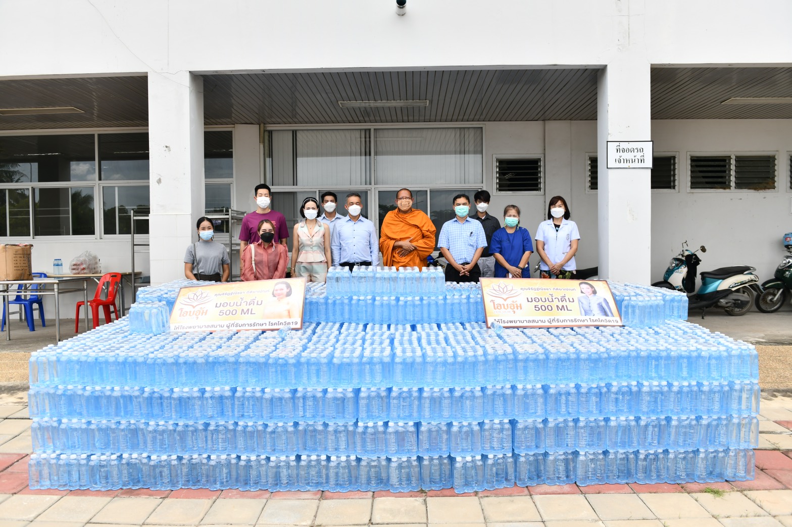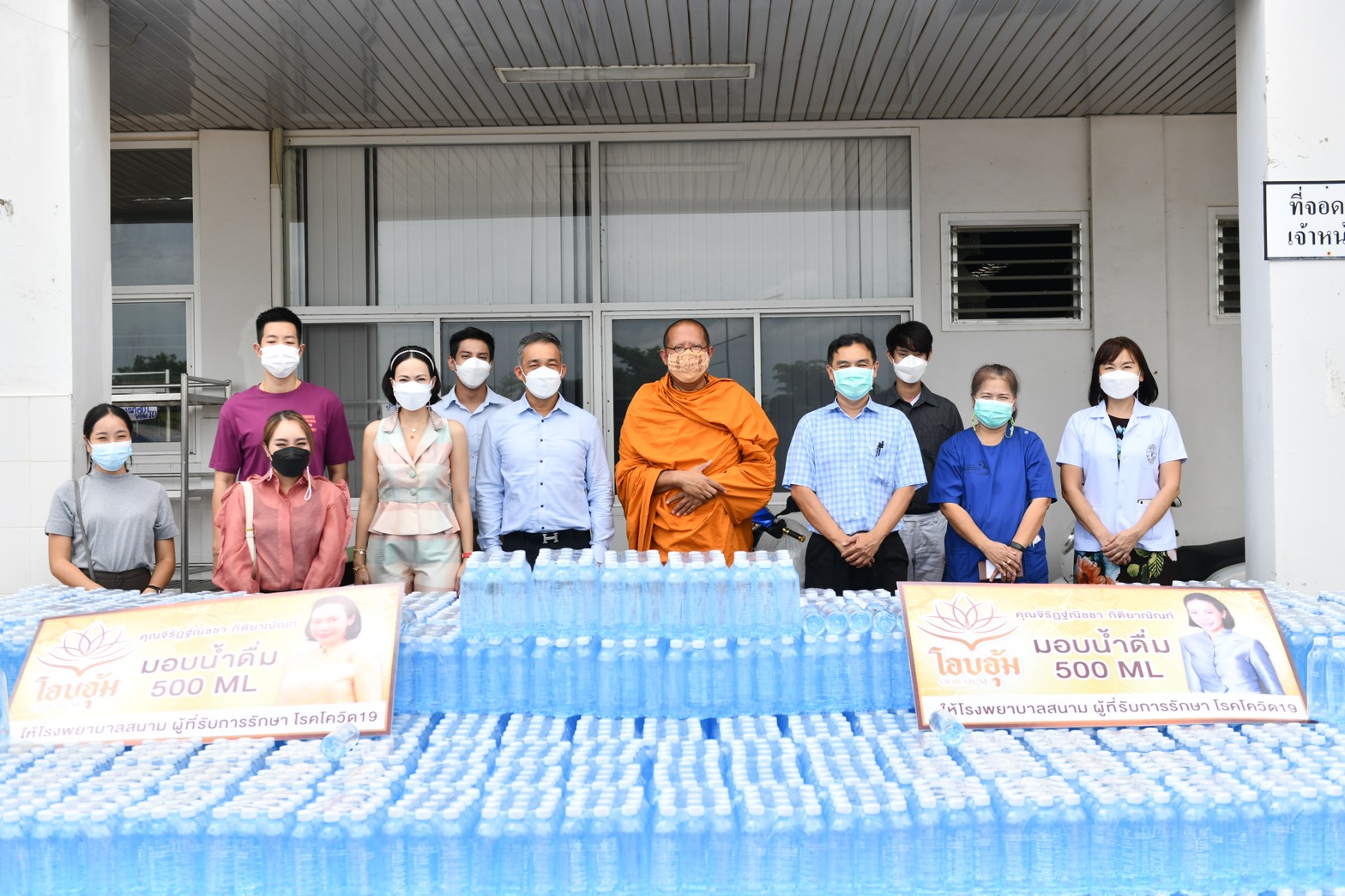 หลวงพี่น้ำฝนและคณะศิษย์มอบน้ำดื่ม12,000ขวดให้รพ.สามพราน