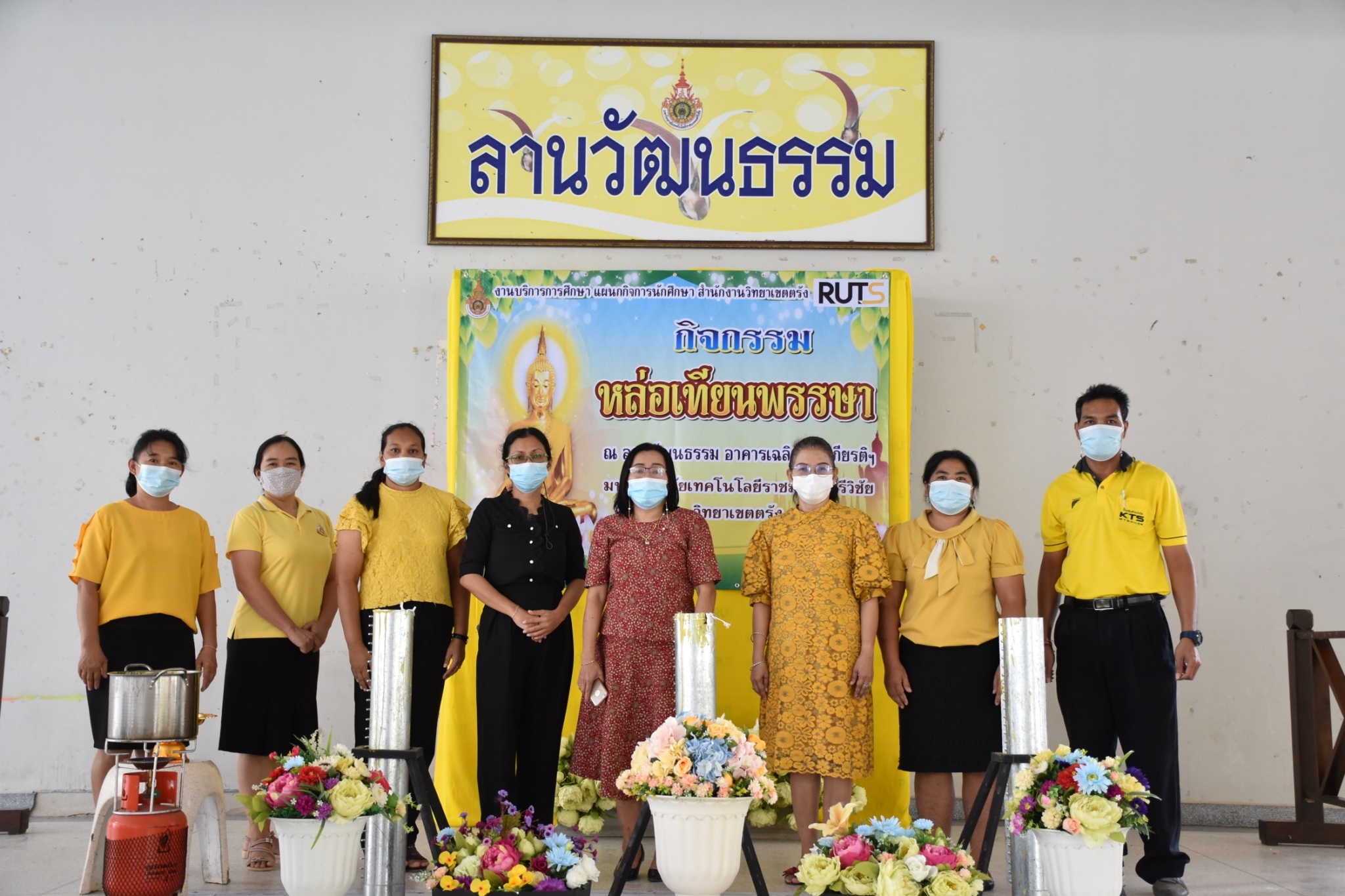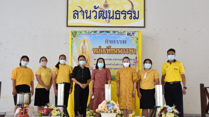 ผศ. โกสินทร์ พัฒนมณี รองอธิการบดีประจำวิทยาเขตตรัง ได้มอบหมายให้ นางอุษา ศรีเจริญ ผู้อำนวยการสำนักงานวิทยาเขตตรังเป็นประธานในพิธีถวายเทียนพรรษาประจำปี 2564 พร้อมด้วยบุคลากร มหาวิทยายาลัยเทคโนโลยีราชมงคลศรีวิชัย วิทยาเขตตรัง เข้าร่วมกิจกรรมทำบุญถวายเทียนพรรษา ผ้าอาบน้ำฝน เครื่องอุปโภคบริโภคและปัจจัย โดยการทำกิจกรรมดังกล่าวได้ยึดถือปฏิบัติกันเป็นประจำทุกปีนั้น นางเมธาพร หิรัญวงศ์ หัวหน้างานบริการการศึกษา ในนามของผู้จัดกิจกรรมถวายเทียนพรรษาประจำปี 2564 ได้เห็นถึงความสำคัญและตระหนักถึงมาตรการป้องกันการแพร่ระบาดของโรคCOVID -19 จึงเปิดโอกาสให้บุคลากรได้มีส่วนร่วมในการถวายเทียนพรรษา ซึ่งได้ดำเนินกิจกรรมต่อเนื่องโดยการเชิญชวนให้บุคลกรร่วมหล่อเทียนพรรษาตั้งแต่วันที่ 5 – 16 กรกฎาคม 2564 ณ ลานกิจกรรม อาคารเฉลิมพระเกียรติฯ มทร.ศรีวิชัย วิทยาเขตตรัง
