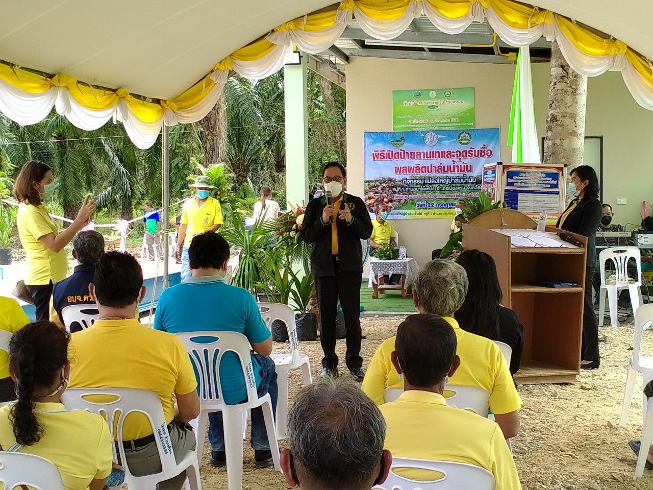 ครงการยกระดับแปลงใหญ่ด้วยเกษตรสมัยใหม่และเชื่อมโยงตลาด ทั้งนี้นายวสันต์ สุขสุวรรณ เกษตรจังหวัดตรัง ได้กล่าวรายงานวัตถุประสงค์ของการจัดงาน 1.เพื่อเป็นขวัญกำลังในการดำเนินงานการขับเคลื่อนด้านการตลาดของกลุ่มแปลงใหญ่ปาล์มน้ำมัน หมู่ที่ 1 ตำบลนาโต๊ะหมิง อำเภอเมืองตรัง จังหวัดตรัง 2. เพื่อประชาสัมพันธ์ให้สมาชิกและเกษตรกรทั่วไปนำผลผลิตมาจำหน่ายและสามารถลดต้นทุนค่าขนส่งในการไปจำหน่ายผลผลิตให้กับเอกชน3.เพื่อสร้างความสมัครสามัคคีของคนกลุ่มแปลงใหญ่ปาล์มน้ำมัน หมู่ที่ 1 ตำบลนาโต๊ะหมิง อำเภอเมืองตรัง จังหวัดตรัง ในการบริหารจัดการธุรกิจของกลุ่มและสินค้าปาล์มน้ำมันให้มีคุณภาพตรงความต้องการของตลาด 4.เพื่อเพิ่มประสิทธิภาพการผลิตและลดต้นทุนการผลิตให้กับเกษตรกรหรือกลุ่มเกษตรกรโดยการประยุกต์ใช้เทคโนโลยีและนวัตกรรมที่เหมาะสม 5. ยกระดับการผลิตไปสู่สินค้าที่มีคุณภาพมาตรฐาน สอดคล้องกับความต้องการของตลาดและอุตสาหกรรมต่อเนื่อง