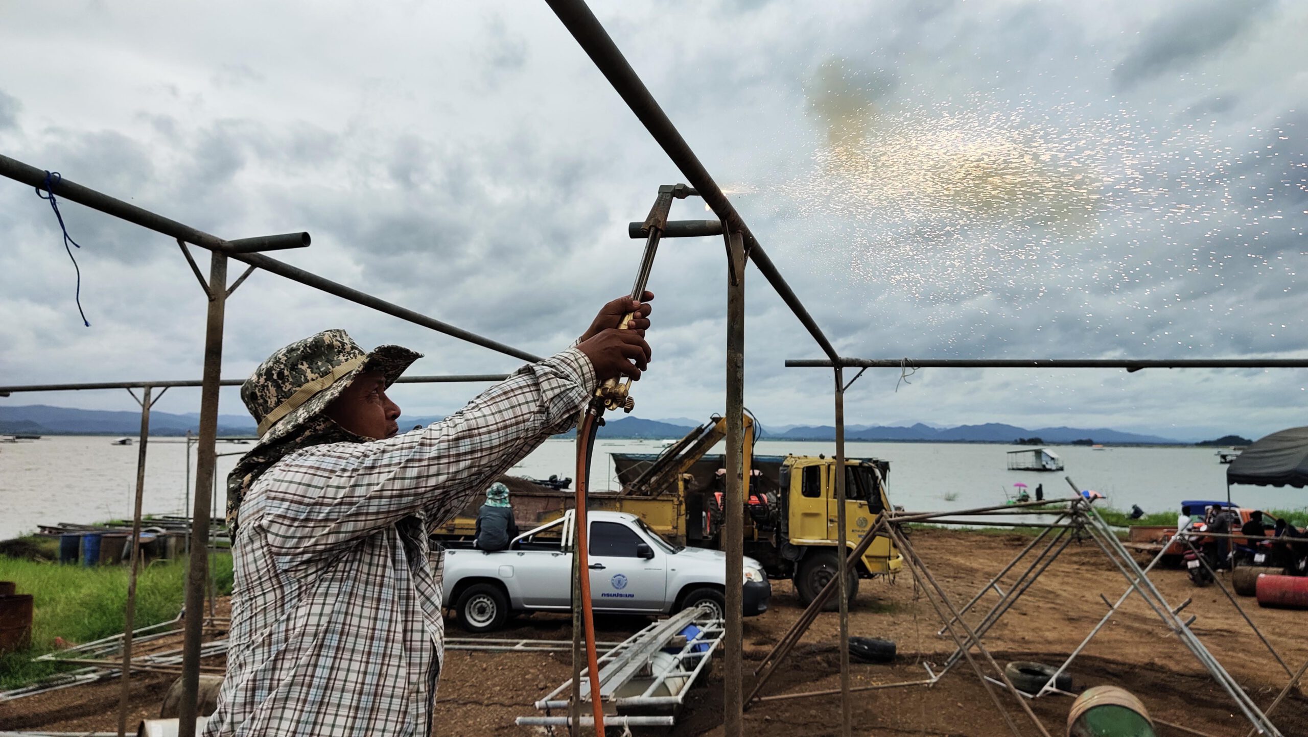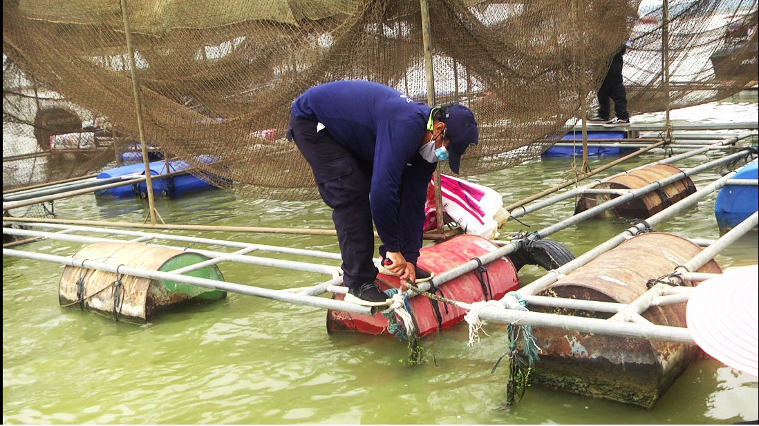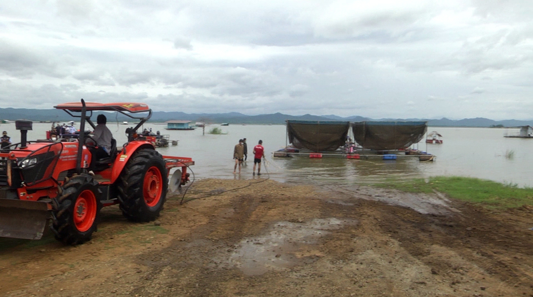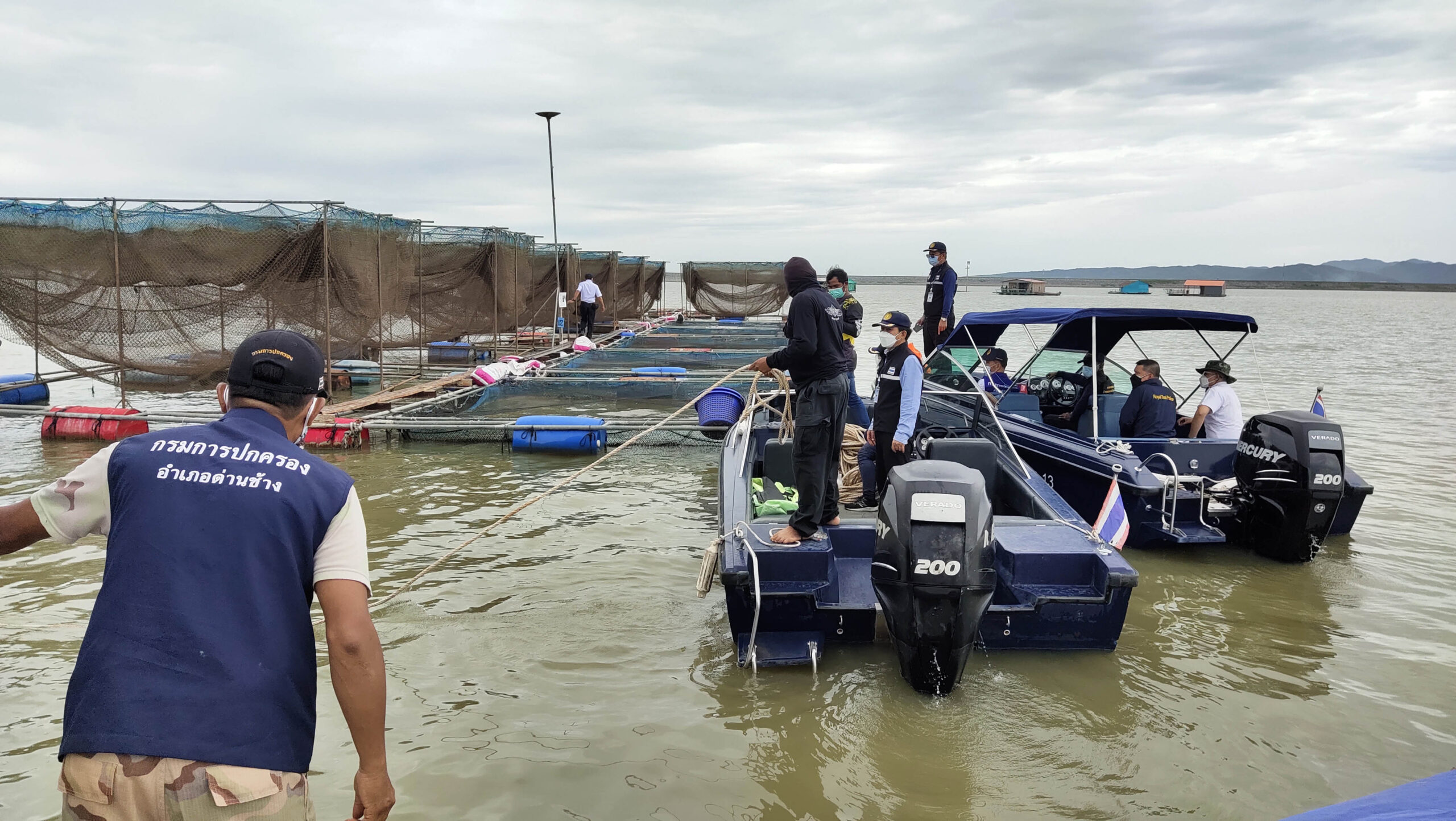 สุพรรณบุรี ประมงนำกำลังรื้อกระชังเลี้ยงปลาเขื่อนกระเสียวหลังจากยืดเยื้อมานาน