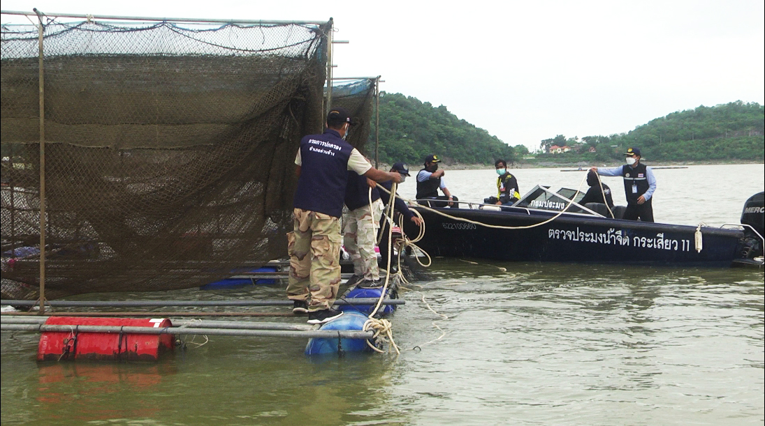 ที่ จ.สุพรรณบุรี นายชูชีพ พงษ์ไชย รองผู้ว่าราชการจังหวัดสุพรรณบุรี นายประพันธ์ ลีปายะคุณ ผู้ตรวจราชการกรมประมง นายเดชา ปรัชญารัตน์ ผู้อำนวยการกองกฎหมายกรมประมง นายเดชา รอดระรัง ประมงจังหวัดสุพรรณบุรี นายสิทธิศักดิ์ แย้มพรายภิรมย์ นายอำเภอด่านช้าง นายอุดมพร ผาสุข ผู้อำนวยการโครงการส่งน้ำและบำรุงรักษากระเสียว นายบรรพต สิงหาพันธ์ หัวหน้ากลุ่มบริหารจัดการด้านประมง สำนักงานประมงจังหวัดสุพรรณบุรี นายภิญโญ สุนทรวิภาต ผู้อำนวยการกลุ่มงานศูนย์ดำรงธรรม จังหวัดสุพรรณบุรีนำกำลังเจ้าหน้าที่ตำรวจ เจ้าหน้าที่กองกำลังรักษาดินแดนที่4 อำเภอด่านช้าง จังหวัดสุพรรณบุรี ร่วมกันเรื้อกระชังเลี้ยงปลาของผู้ที่ยังฝ่าฝืนเลี้ยงปลาในเขื่อนกระเสียว เพื่อยึดเป็นของกลาง และดำเนินคดีกับผู้ที่ฝ่าฝืน หลังจากครบกำหนดให้ผู้เลี้ยงปลากระชังในเขื่อนกระเสียวได้อุธรณ์ไว้ และยังมีการฝ่าฝืนเลี้ยงอยู่ทำให้เจ้าหน้าที่ต้องนำกำลังเรื้อกระชังของผู้เลี้ยงปลาทั้งหมด