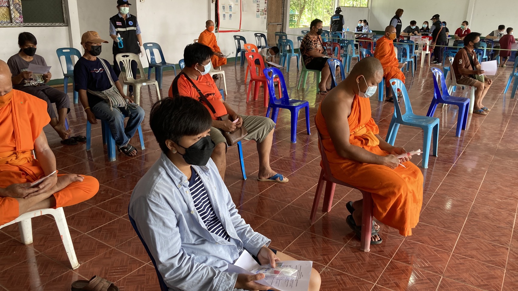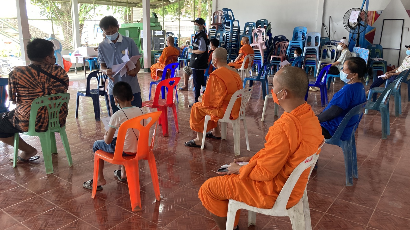 ในเช้าวันนี้ 25 กรกฏาคม 2564 เวลา09.00 น .ทางสาธารณสุข และโรงพยาบาลแม่อาย ได้ส่งเจ้าหน้าที่มาทำการตรวจสารคัดหลั่งชาวบ้านทั้งหมดที่ไปร่วมงานศพ ตั้งแต่วันที่ 22 กรกฏาคม 2564 จนแล้วเสร็จงาน จากรายงานตัวทำให้ ทราบว่ามีคนที่เสี่ยงสูงจำนวน ประมาณ 31 ราย ที่ได้อุ้มเล่นกับเด็กที่ติดโควิดทั้งอุ้มทั้งกอดและหอมแก้มเด็ก และส่วนที่มาร่วมงานทั้งชาวบ้าน และพระสงฆ์ อสม ชรบ ฯที่มาร่วมประกอบพิธีทางศาสนา อีกจำนวน 70 กว่าคน รวมทั้งหมดประมาณ 100 กว่าคน ได้มาทำการตรวจสารคัดหลังในวันนี้ซึ่งจะทราบผลในวันพรุ่งนี้ ถ้าพบว่าติดเชื้อก็จะเป็นครัทเตอร์ใหญ่อีกที่หนึ่ง ตอนนี้ทางส่วนราชการให้ทุกคนทำการกักตัวอยู่กับบ้าน ใส่แมส ให้ใช้สมุนไพรรักษาตัวเองก่อน ทางส่วนราชการที่เกี่ยวข้องได้เตรียมพื้นที่ที่คาดว่าถ้าติดเชื้อกันจำนวนมากแล้ว อาจจะทำการตั้งโรงพยาบาลสนาม เพราะในโรงพยาบาลแม่อาย หรือโรงพยาบาลฝางนั้น รับผู้ป่วยได้จำกัดไม่เกิน 40 คน ในพื้นที่อำเภแม่อาย อำเภอไชยปราการ อำเภอฝาง จะนำผู้ป่วยโควิดเข้าทำการรักษาตัวที่โรงพยาบาลฝางเท่านั้นเพราะมีเครื่องมือพร้อมกว่า ถ้ารุนแรงก็ส่งโรงพยาบาลนครพิงค์ประจำจังหวัดเชียงใหม่ วันนี้ทางโรงพยาบาลฝางมีผู้ป่วยจำนวนประมาณ 36 คน