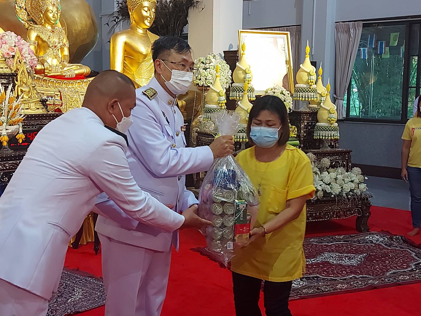 โดยมีพระเทพปริยัติสุธีเจ้าคณะจังหวัดสิงห์บุรี เป็นประธานฝ่ายสงฆ์ และคณะสงฆ์ พร้อมด้วย นางชุลีพร เตรัตน์ นายกเหล่ากาชาดจังหวัดสิงห์บุรี พ.อ.ชายธนัญชา วาจรัต รอง ผอ.รมน.จังหวัดสิงห์บุรี นางวชิราภรณ์ เพ็ชรล้อม วัฒนธรรมจังหวัดสิงห์บุรี หัวหน้าส่วนราชการ พุทธศาสนิกชน เข้าร่วมพิธี และได้มีการมอบเครื่องอุปโภคบริโภค พร้อมหน้ากากอนามัยและเจลแอลกอฮอร์ให้ผู้ที่ได้รับผลกระทบของการแพร่ระบาดโรคติดเชื้อไวรัสโคโรนา 2019 (covid-19) ให้แก่เครือข่ายชุมชนคุณธรรม ตำบลจักรสีห์ ณ พระอุโบสถกลางน้ำวัดพระนอนจักรสีห์ วรวิหาร อำเภอเมือง จังหวัดสิงห์บุรี