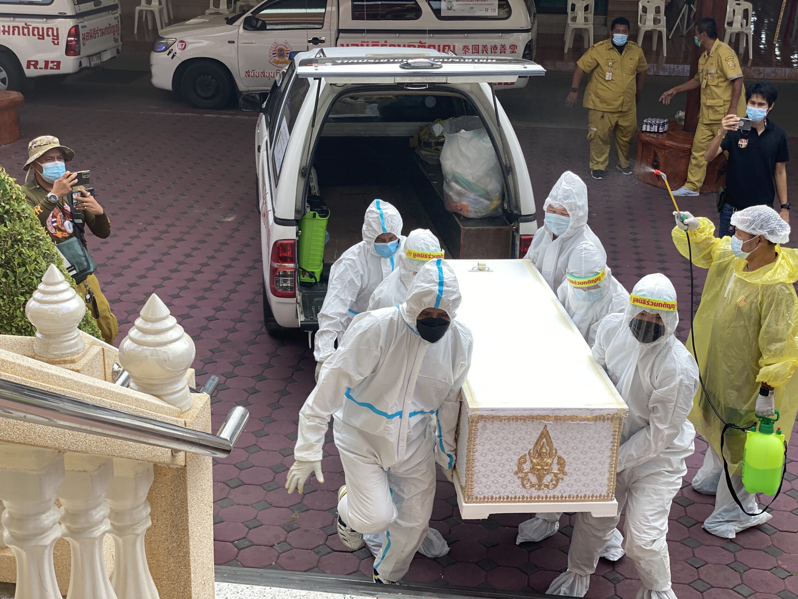 *****เมื่อเวลา 16.00 น. วันที่ 27 ก.ค.2564 เจ้าหน้าที่ชุดเฉพะกิจ ต่อต้านโควิด มูลนิธิร่วมกตัญญู ได้นำศพของ นางอาภาภรณ์ สุนทรารชุน วัย 44 ปี จากโรงพยาบาลรามาธิบดีจักรีนฤบดินทร์ สมุทรปราการ เคลื่อนย้ายมาทำการเผาที่เมรุวัดบางพลีใหญ่กลาง ต.บางพลี อ.บางพลี จ.สมุทรปราการ เพื่อทำการ ณาปนกิจ โดยมี พระครูปลัดสุวัฒนศีลคุณ (พระอาจารย์แจ้) เจ้าอาวาสวัดบางพลีใหญ่กลาง เป็นประธานเผาศพ นางอาภาภรณ์ สุนทรารชุน วัย 44 ปี ที่เสียชีวิตเมื่อวันที่ 26 ก.ค. มีเด็กหญิงวัย 11 ขวบและ 9 ขวบ นอนเฝ้าศพแม่ที่เสียชีวิตด้วยอาการป่วยติดเชื้อโควิด-19 ภายในห้องเช่าไม่มีชื่อ ตั้งอยู่ภายในซอยไพรโอเนีย 2 เลขที่ 5/66 หมู่ 6 ต.บางโฉลง อ.บางพลี จ.สมุทรปราการโดยที่ผู้เป็นแม่ได้สั่งเสียลูกทั้งสองว่าหากตนเองเสียชีวิตให้ลูกทั้งสองไปอยู่บ้านเด็กกำพร้าและจากการตรวจสอบเบื้องต้นพบว่าน้องทั้ง 2 คน ติดเชื้อโควิดด้วย โดยมี นายสมศักดิ์ แก้วเสนา นายอำเภอบางพลี นพ.พิเชษฐ พัวพันกิจเจริญ ผู้อำนวยการโรงพยาบาลบางพลี เจ้าหน้าที่บ้านพักเด็กและครอบครัวสมุทรปราการ และหน่วยราชการ และญาติเพียง 2 คน ร่วมงาน ที่วัด บางพลีใหญ่กลาง อ.บางพลี สมุทรปราการ