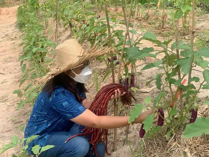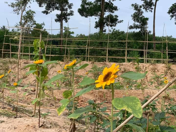 น.ส. สุธาสินี ญาโน นักพัฒนาพื้นที่ต้นแบบ ตามโครงการฯ (นพต.) ได้ลงนามถวายพระพรผ่านระบบออนไลน์ เนื่องในวันเฉลิมพระชนมพรรษา ขอให้ทรงพระเจริญ และได้ปฏิบัติงานในแปลง HLM ของนายวัชรินทร์ ใจชื่น หมู่ที่ 5 ต.ท่าโรงช้าง อ.พุนพิน จ.สุราษฎร์ธานี ซึ่งในวันนี้ ได้บำรุงต้นทานตะวัน โดยการใส่ปุ๋ย พรวนดิน และเก็บเกี่ยวผลผลิตที่ปลูกก่อนหน้านี้ คือ ถั่วฝักยาว มะเขือม่วง ซึ่งกำลังให้ผลผลิตอย่างต่อเนื่อง โดยเจ้าของแปลง ได้บริโภคในครัวเรือน มีเหลือก็แจกจ่ายให้กับเพื่อนบ้าน และตอนนี้ยังได้นำไปถวายพระ ทำบุญที่วัดบางส่วนด้วย การทำกิจกรรมโคก หนอง นา ได้อะไรมากมายกว่าที่คิด