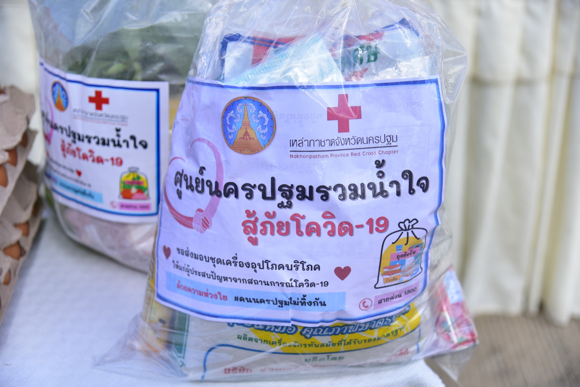 วันที่ 28 กรกฎาคม 2564 ที่บริเวณหน้าสำนักงานเหล่ากาชาดจังหวัดนครปฐม นายสุรศักดิ์ เจริญศิริโชติ ผู้ว่าราชการจังหวัดนครปฐม เป็นประธานกิจกรรมจิตอาสาส่งมอบน้ำใจช่วยเหลือผู้ได้รับผลกระทบจากการแพร่ระบาดของโรคติดเชื้อไวรัสโคโรนา 2019 (Covid – 19) จังหวัดนครปฐม โดยมีรองผู้ว่าราชการจังหวัด นายกเหล่ากาชาดจังหวัด และหัวหน้าส่วนราชการร่วมกิจกรรมเพื่อส่งมอบถุงยังชีพอาหารสด ประกอบด้วย ผัก เนื้อสัตว์ ไข่ไก่ 1 แผง (1 ชุด : 1 ครัวครอบ : 1 สัปดาห์) ) และถุงยังชีพเครื่องอุปโภคบริโภค พร้อมไข่ไก่ 1 แผง ให้กับผู้แยกกักตัวที่บ้าน (Home Isolation) ผู้สัมผัสเสี่ยงสูง และครอบครัวกลุ่มเปราะบาง ในพื้นที่