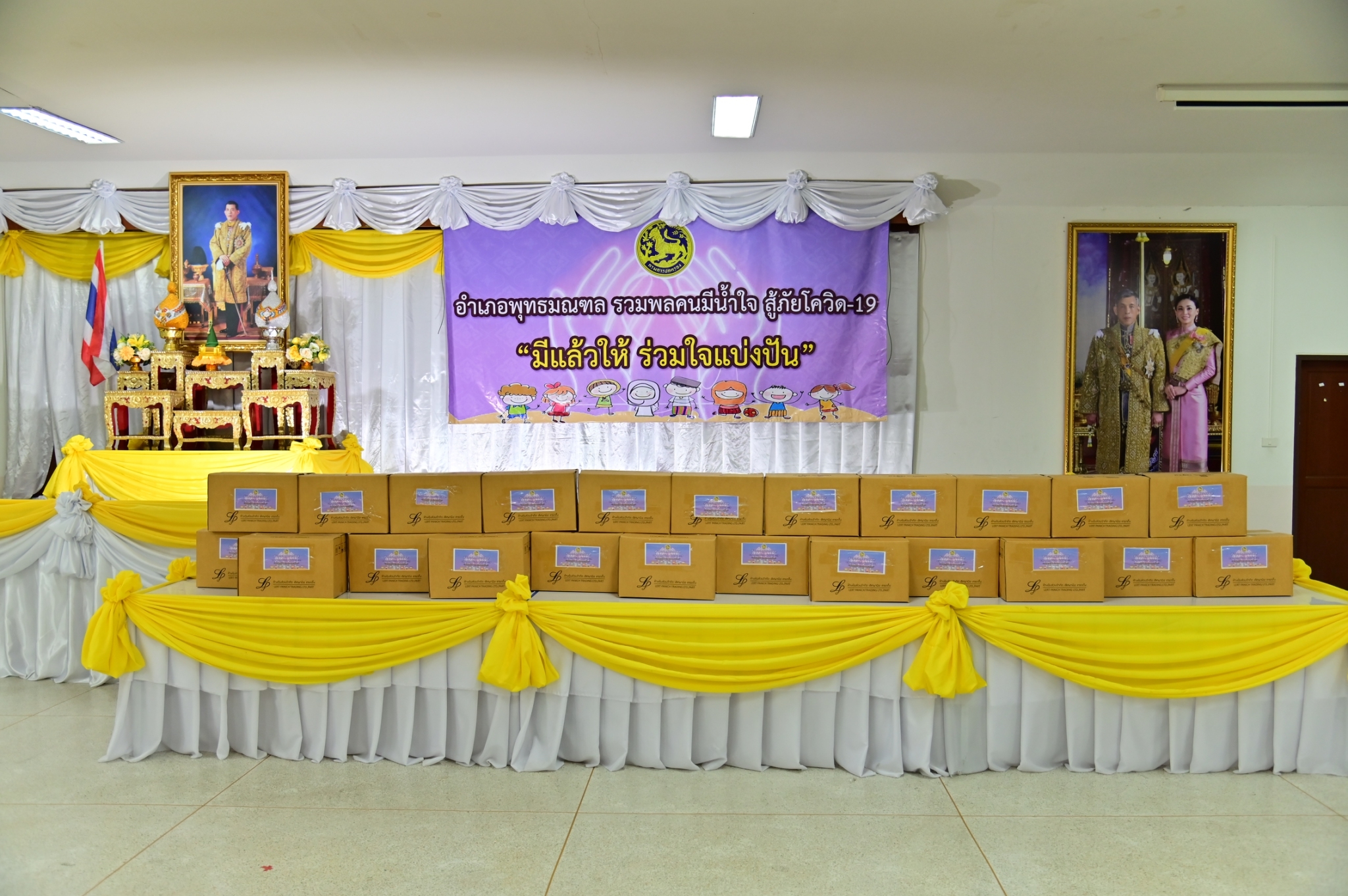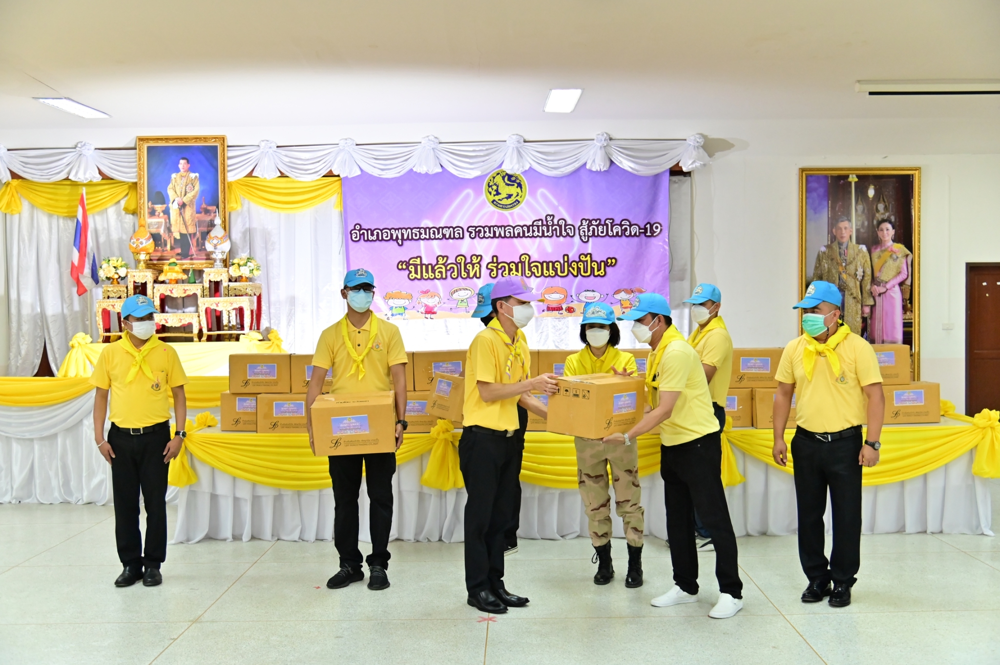 วันที่ 28 กรกฎาคม 2564 ที่หอประชุมอำเภอพุทธมณฑล จังหวัดนครปฐม นายสุรศักดิ์ เจริญศิริโชติ ผู้ว่าราชการจังหวัดนครปฐม เป็นประธานจัดกิจกรรมจิตอาสารวมพลคนมีน้ำใจ สู้ภัยโควิด-19 มีแล้วให้ร่วมใจแบ่งปัน เนื่องในโอกาสวันเฉลิมพระชนมพรรษา พระบาทสมเด็จพระเจ้าอยู่หัว 28 กรกฎาคม 2564 โดยอำเภอพุทธมณฑล จัดขึ้น เพื่อลดภาระค่าใช้จ่ายและบรรเทาความเดือดร้อนให้แก่ประชาชนที่ได้รับผลกระทบ จากสถานการณ์การแพร่ระบาดของโรคโควิด-19 อีกทั้งเพื่อให้ทุกภาคส่วน พร้อมด้วยประชาชนจิตอาสา ได้ร่วมกันทำสิ่งที่เป็นประโยชน์ เป็นการปลุกจิตสำนึกคนไทย มีความสามัคคี มีจิตสำนึกสาธารณะ มีความเอื้อเฟื้อ รู้จักแบ่งปันซึ่งกันและกัน โดยการร่วมกันบำเพ็ญสาธารณประโยชน์ต่างๆ เพื่อประโยชน์สุขของชุมชนส่วนรวม โดยไม่หวังสิ่งตอบแทน ก่อให้เกิดความรัก ความผูกพันใน 4 สถาบันหลักของชาติ คือ สถาบันชาติ สถาบันศาสนา สถาบันพระมหากษัตริย์ และประชาชน