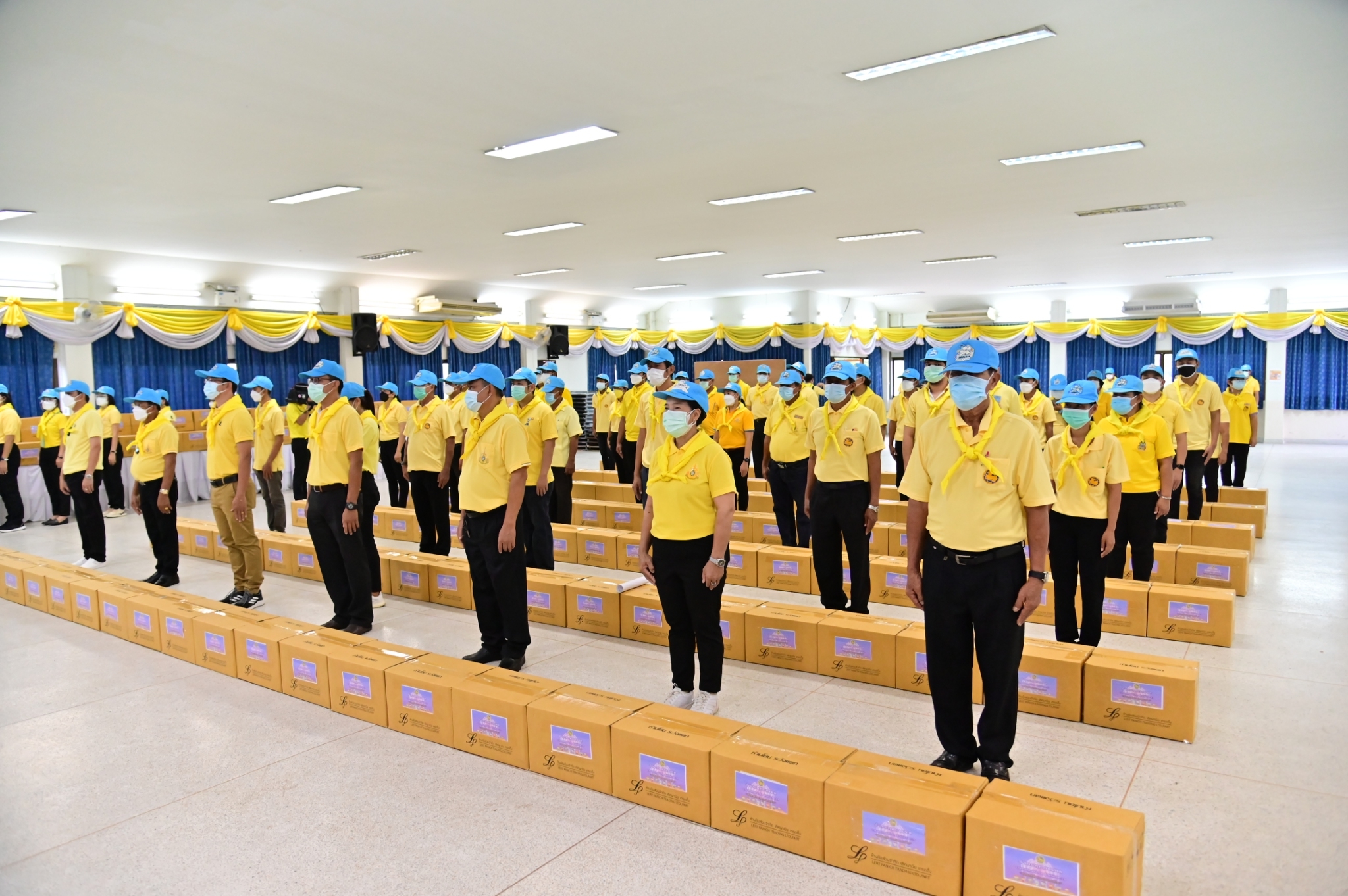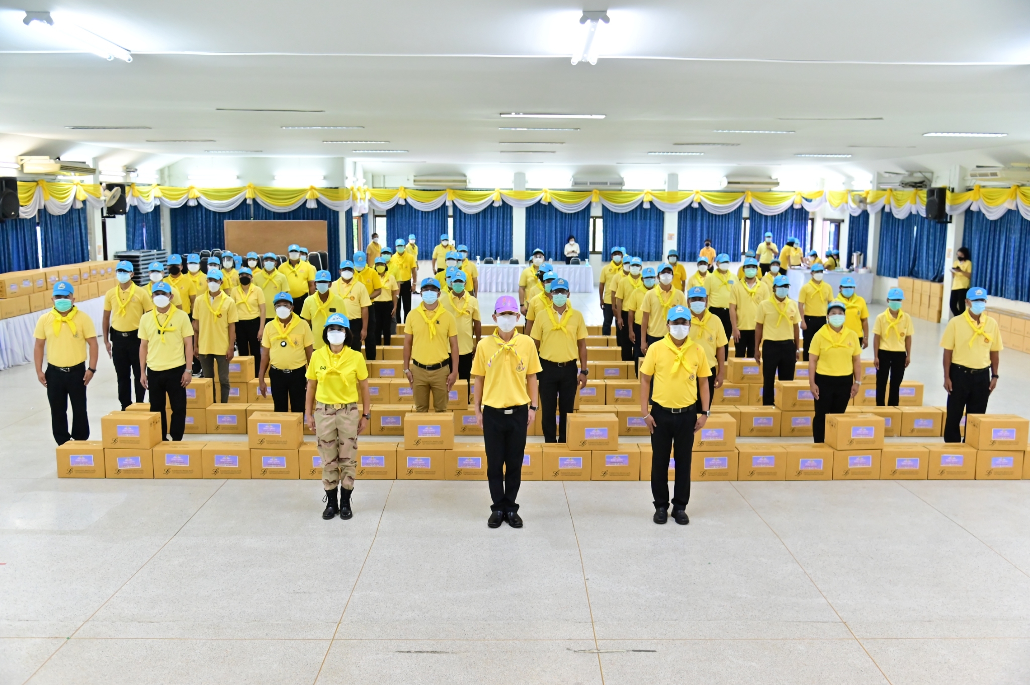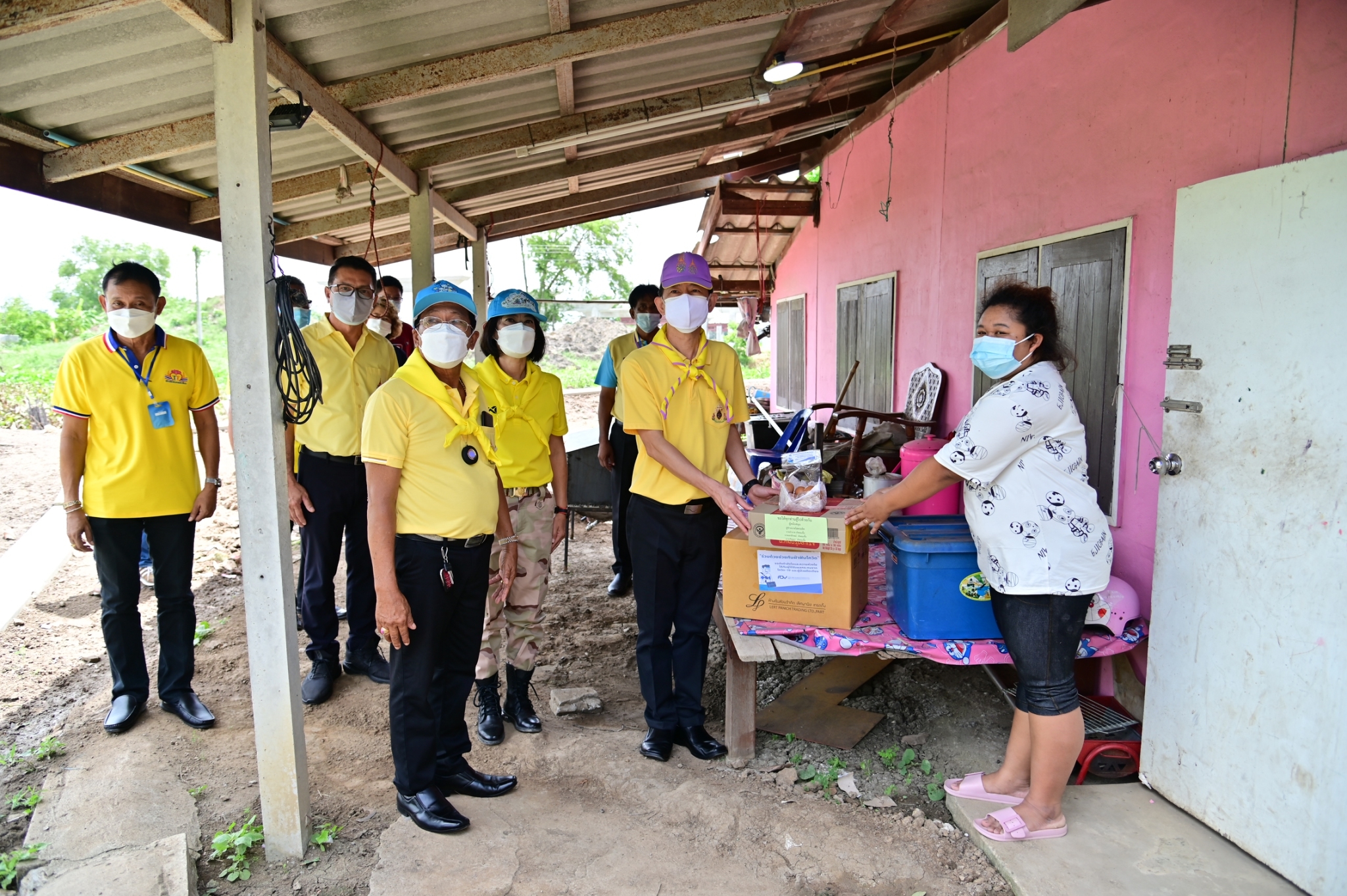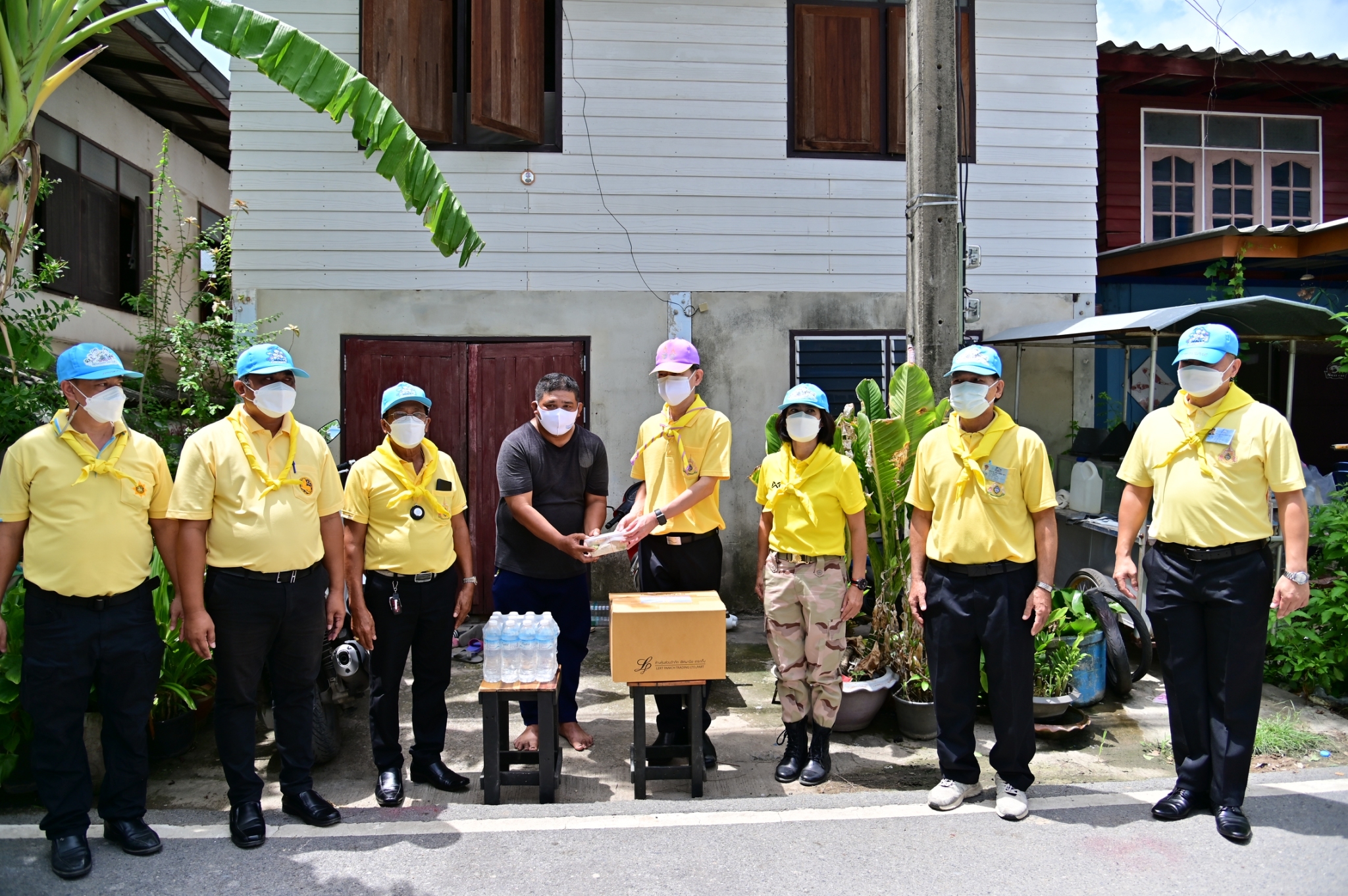 โอกาสนี้ ผู้ว่าราชการจังหวัดนครปฐม ได้มอบสิ่งของและเครื่องอุปโภคบริโภค ให้กับนายกเทศมนตรี นายกองค์การบริหารส่วนตำบล กำนัน และผู้ใหญ่บ้าน ในพื้นที่ตำบลศาลายา ตำบลคลองโยง และตำบลมหาสวัสดิ์ เพื่อนำไปมอบให้กับประชาชนในพื้นที่เป้าหมาย จำนวน 569 ราย จากนั้น นายอำเภอพุทธมณฑล ได้มอบเงินบริจาคสมทบ จำนวน 20,000 บาท เพื่อใช้ในกิจกรรมของเหล่ากาชาดจังหวัดนครปฐม หลังจากนั้น ผู้ว่าราชการจังหวัดนครปฐม ได้ลงพื้นที่มอบสิ่งของ เครื่องอุปโภคบริโภค และข้าวกล่อง ให้กับประชาชนผู้สูงอายุในพื้นที่ตำบลคลองโยง อีกด้วย