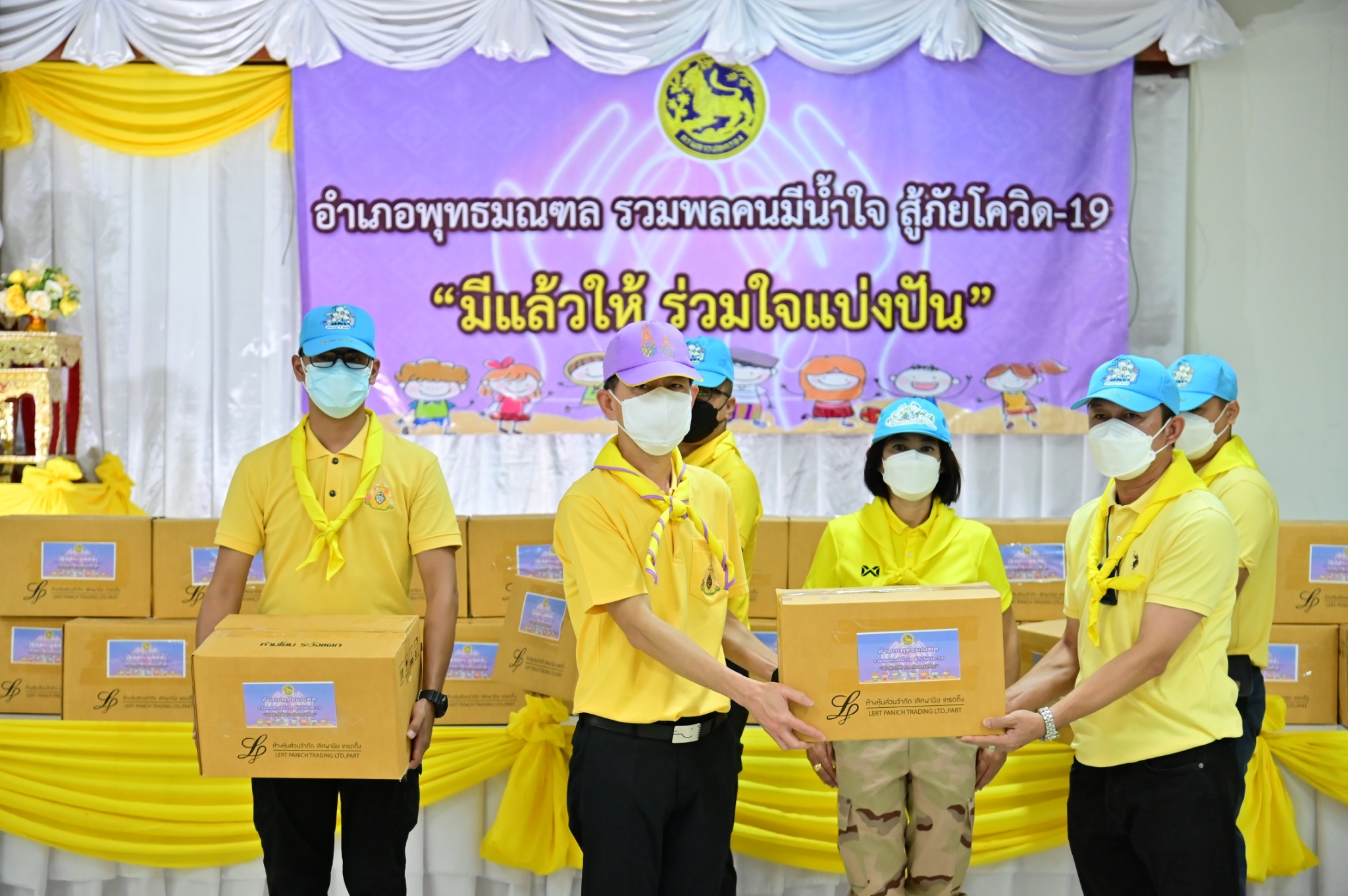 นางสาวสลารีวรรณ ทัพทวี นายอำเภอพุทธมณฑล กล่าวว่า จากสถานการณ์การแพร่ระบาดของโรคโควิด-19 ได้ทวีความรุนแรงขึ้นอย่างต่อเนื่อง ซึ่งมักเป็นการติดเชื้อจากการแพร่ระบาดเป็นกลุ่มเป็นก้อน ในครอบครัว และชุมชน ประกอบกับการยกระดับความเข้มข้น และการบังคับใช้ของมาตรการ เพื่อเร่งรัดการแก้ไขและบรรเทาสถานการณ์ฉุกเฉินให้คลี่คลายโดยเร็วที่สุด ทำให้เกิดผลกระทบต่อการดำรงชีวิตมีผู้ได้รับผลกระทบโดยเฉพาะอย่างยิ่งผู้พิการ ผู้ยากไร้ ผู้ด้อยโอกาส และผู้สูงอายุ