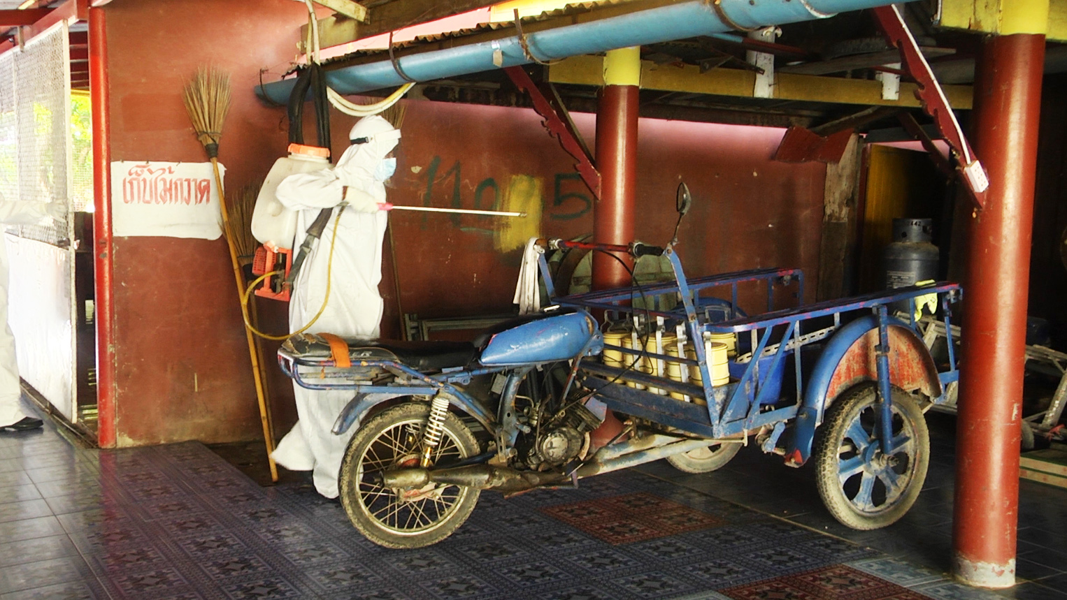 ทางด้านนายศุภชาติ ดอกบัว อดีต ผู้ใหญ่บ้าน หมู่ 4 ต.องครักษ์ อ.บางปลาม้า กล่าวว่าที่วัดกระทุ่มทองมีพระหลวงพ่อเจ้าอาวาสซึ่งอายุ 60 กว่าและพระลูกวัดอายุ 40 กว่าติดเชื้อโควิดจากการไปกิจนิมนต์สวดมนต์ต่อชะตาให้กับญาติโยมในหมู่บ้านซึ่งมีอาการป่วย จากนั้นก็มีอาการไข้ไปตรวจพบติดเชื้อโควิดหลวงพ่อเจ้าอาวาสถูกส่งตัวเข้าโรงพยาบาลบางปลาม้า ส่วนพระลูกวัดที่ติดเชื้อแต่อาการไม่รุนแรงทางโรงพยาบาลได้ให้รักษาตัวอยู่ที่วัดพร้อมกับให้เจ้าหน้าที่ รพ.สต.และอสม.ติดตามอาการอย่างต่อเนื่องและสั่งกักตัวพระลูกวัดทั้งหมด14วันและปิดวัดห้ามใครเข้าออก หลังพบมีพระติดโควิด ตนได้ประสานไปยังหน่วยงานท้องถิ่นให้ช่วยมาฉีดพ่นยาฆ่าเชื้อที่วัดเพื่อลดความเสี่ยงในการติดเชื้อ และเพื่อความสบายใจของประชาชนในหมู่บ้านแต่ได้รับการบ่ายเบี่ยงมีข้ออ้างต่างๆนาๆจึงประสานขอความช่วยเหลือจากเจ้าหน้าที่มูลนิธิเสมอกันกู้ภัยให้มาช่วยและทางมูลนิธิก็ได้มาช่วยฉีดพ่นยาฆ่าเชื้อให้โดยไม่เสียค่าใช้จ่ายใดๆทั้งสิ้นต้องขอบคุณเจ้าหน้าที่มูลนิธิเสมอกัน ที่มาช่วยดูและมาช่วยเหลือทั้งวัดและชาวบ้าน