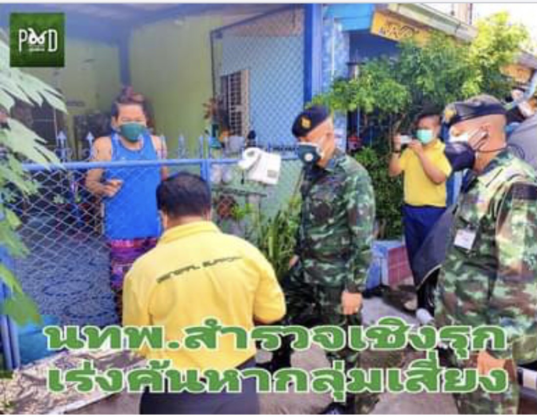 ดำเนินการประชาสัมพันธ์ข้อมูลข่าวสารให้ความรู้แก่ประชาชน สืบสภาพความเดือดร้อน ค้นหาผู้ป่วยเพื่อนำเข้ารับการรักษา การช่วยเหลือดูแลในกรณีที่ต้องแยกกักตัวที่บ้านหรือชุมชน และตรวจสอบความจำเป็นเร่งด่วนสำรวจเชิงรุกในการนำประชาชนกลุ่มเสี่ยงที่เป็นผู้สูงอายุที่มีอายุ 60 ปี ขึ้นไป, ผู้มีโรคเรื้อรัง 7 กลุ่มโรค และสตรีมีครรภ์ เข้ารับบริการฉีดวัคซีนป้องกันโรค COVID-19 เพื่อเป็นการป้องกันและควบคุมการแพร่ระบาดในพื้นที่ชุมชน ตลอดจนลดอัตราการป่วยรุนแรงและเสียชีวิต รวมถึงลดการใช้ห้อง ICU หากมีการติดเชื้อ โดยในวันนี้ได้มอบหมายให้ พลตรี ธนินทร์ พู่ทองคำ ผู้อำนวยการสำนักงานสนับสนุน หน่วยบัญชาการทหารพัฒนา (ผอ.สสน.นทพ.) เป็นผู้แทนตรวจการปฏิบัติงานพร้อมเข้าพื้นที่สำรวจเชิงรุกค้นหากลุ่มเสี่ยงเพื่อนัดหมายฉีดวัคซีนในวันต่อไป และประสานงานเตรียมจัดกำลังสนับสนุนศูนย์บริการฉีดวัคซีน COVID-19 ณ สถาบันเทคโนโลยีพระจอมเกล้าเจ้าคุณทหารลาดกระบัง เพื่อร่วมอำนวยความสะดวกให้กับประชาชนที่จะเข้ารับการฉีดวัคซีนในโอกาสต่อไป
