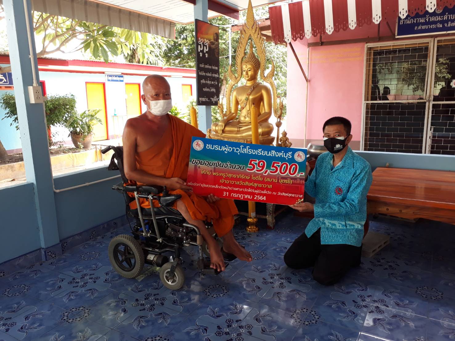 พร้อมกันนี้ เวลา15.00น.นายธีรพงศ์ ศรีประเสริฐรองประธานชมรมผู้อาวุโสโรงเรียนสิงห์บุรี นำเงิน59500บาทจากสมาชิกของชมรมที่ร่วมกันบริจาค ไปถวายให้พระครูวิสุทธาภิรักษ์ โชติโย(สมานบุตรยี่) เจ้าอาวาสวัดสิงห์สุทธาวาส เพื่อนำไปจัดทำมุ้งลวดเหล็กดัดเป็นโรงพยาบาลสนามให้กับผู้ป่วยพักฟื้นจากโรคโควิด 19ณ วัดสิงห์สุทธาวาส