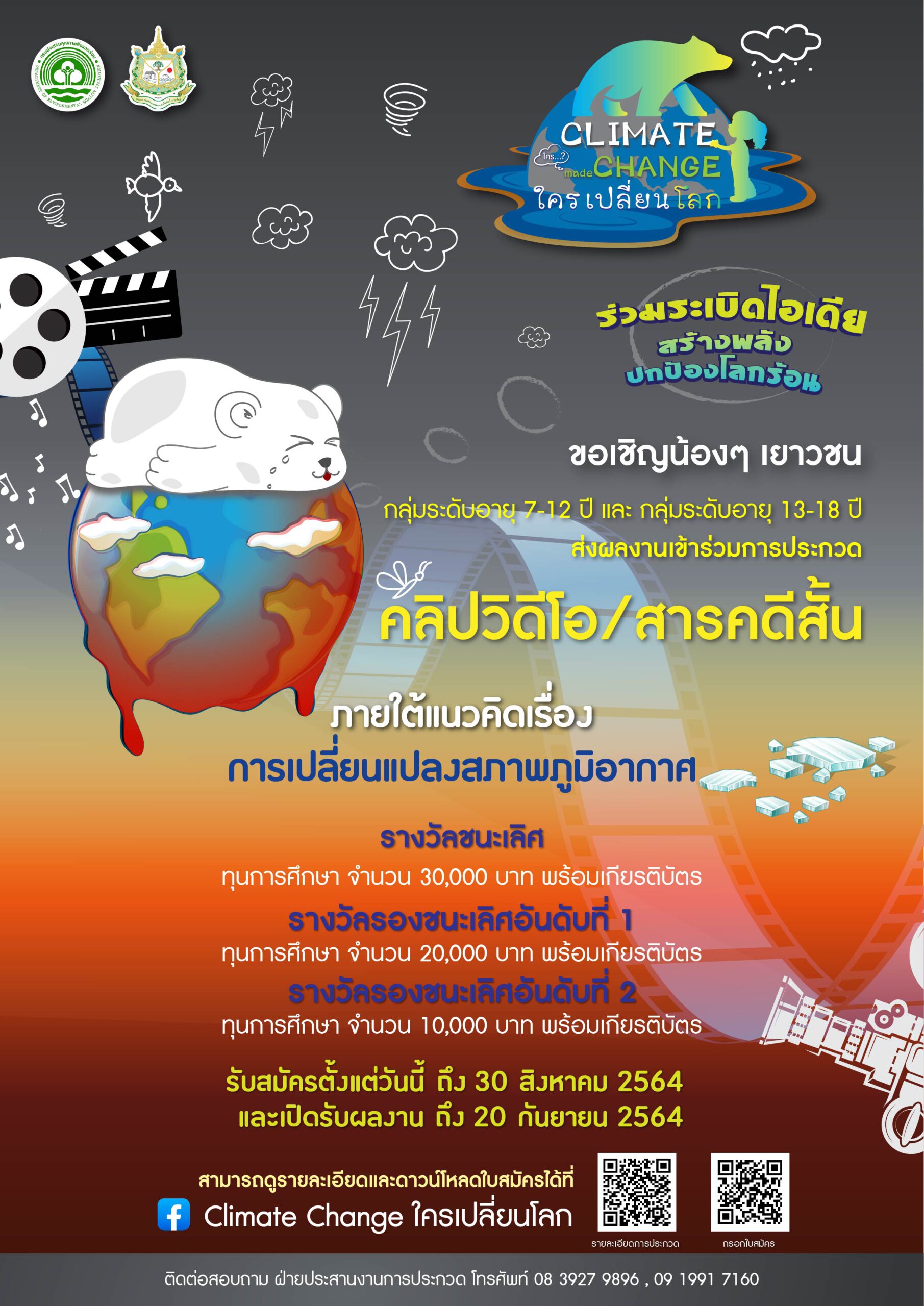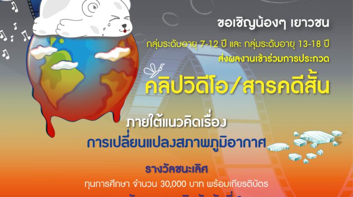 กรมส่งเสริมคุณภาพสิ่งแวดล้อมชวนนักเรียนและเยาวชนร่วมส่งคลิปประกวด ชิงทุนการศึกษา สะท้อนปัญหาการเปลี่ยนแปลงสภาพภูมิอากาศ พร้อมนำเสนอแนวทางการมีส่วนร่วมแก้ไขวิกฤตด้านสิ่งแวดล้อม