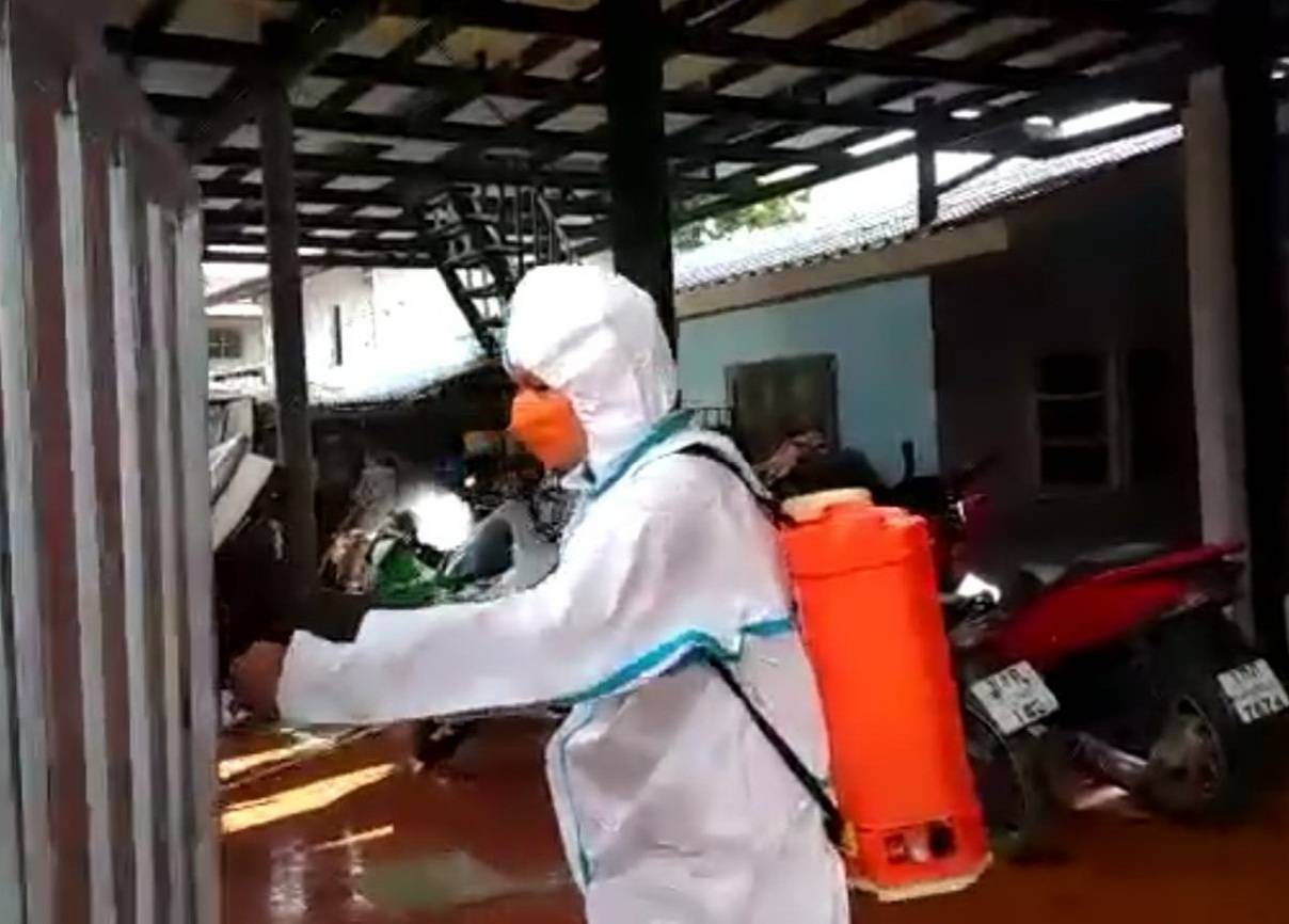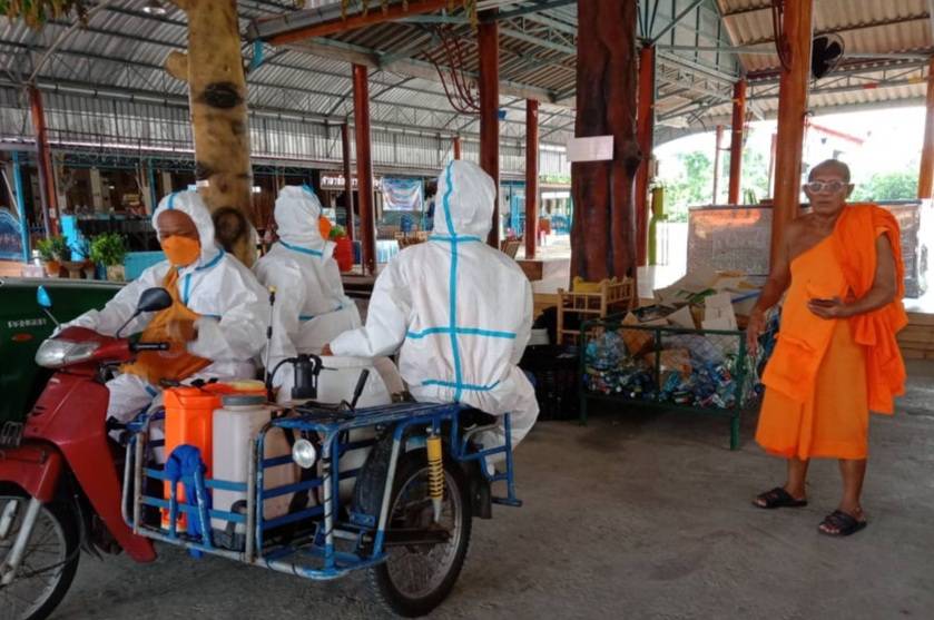 พระทำของจริง…… พระวัดราชบรรทม จ.อยุธยา สวมชุด PPE ออกพ่นฉีดน้ำยาฆ่าเชื้อโรค ไปตามชุมชนรอบ ต.บ่อโพง ( มีภาพนิ่งและคลิป )