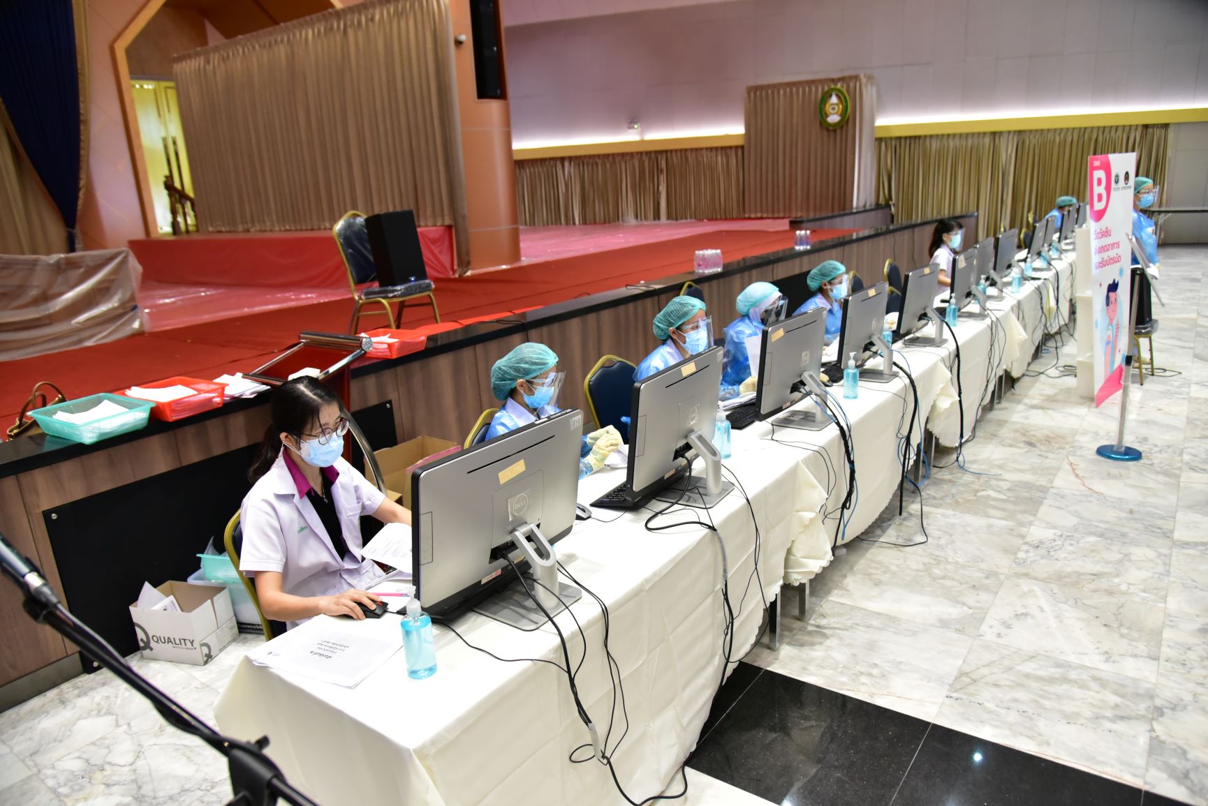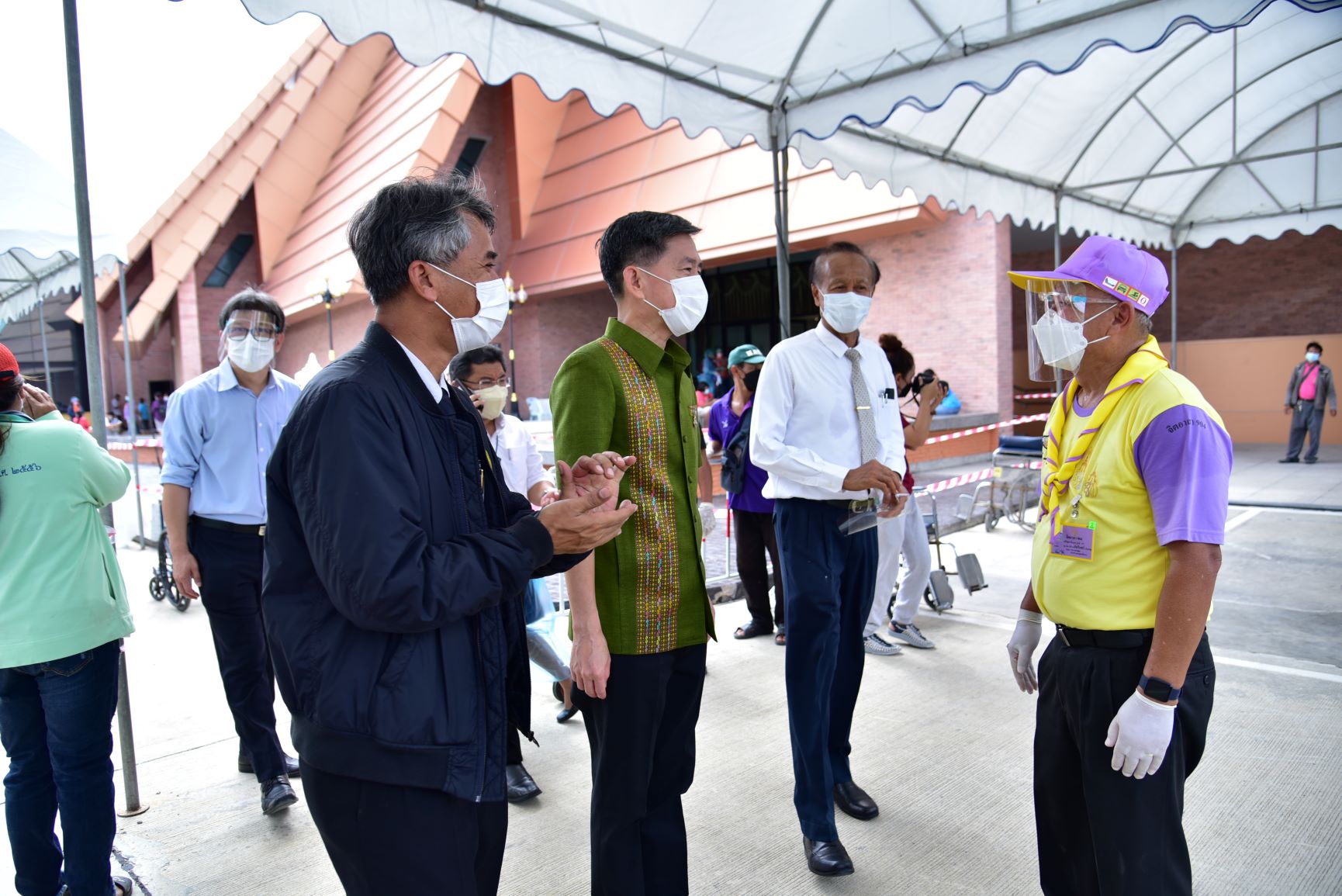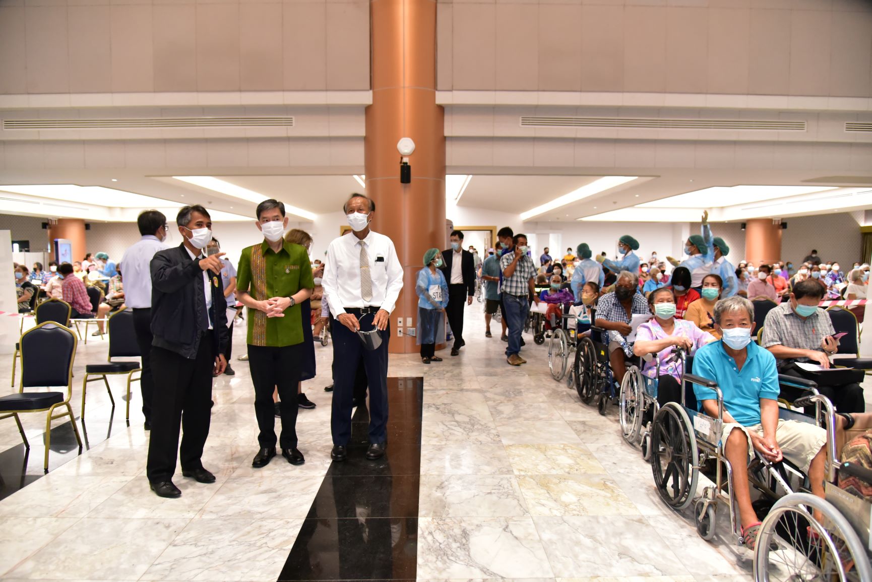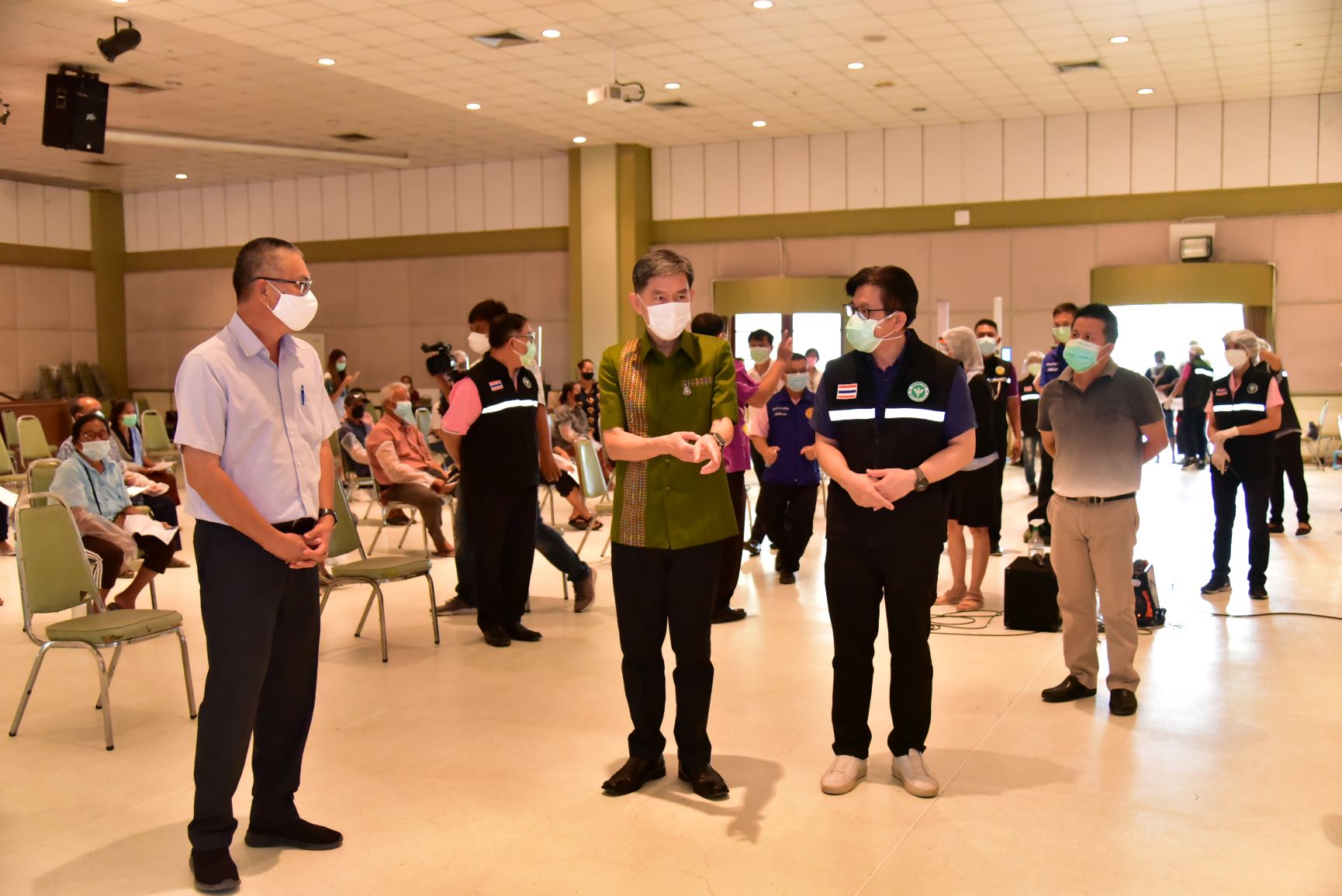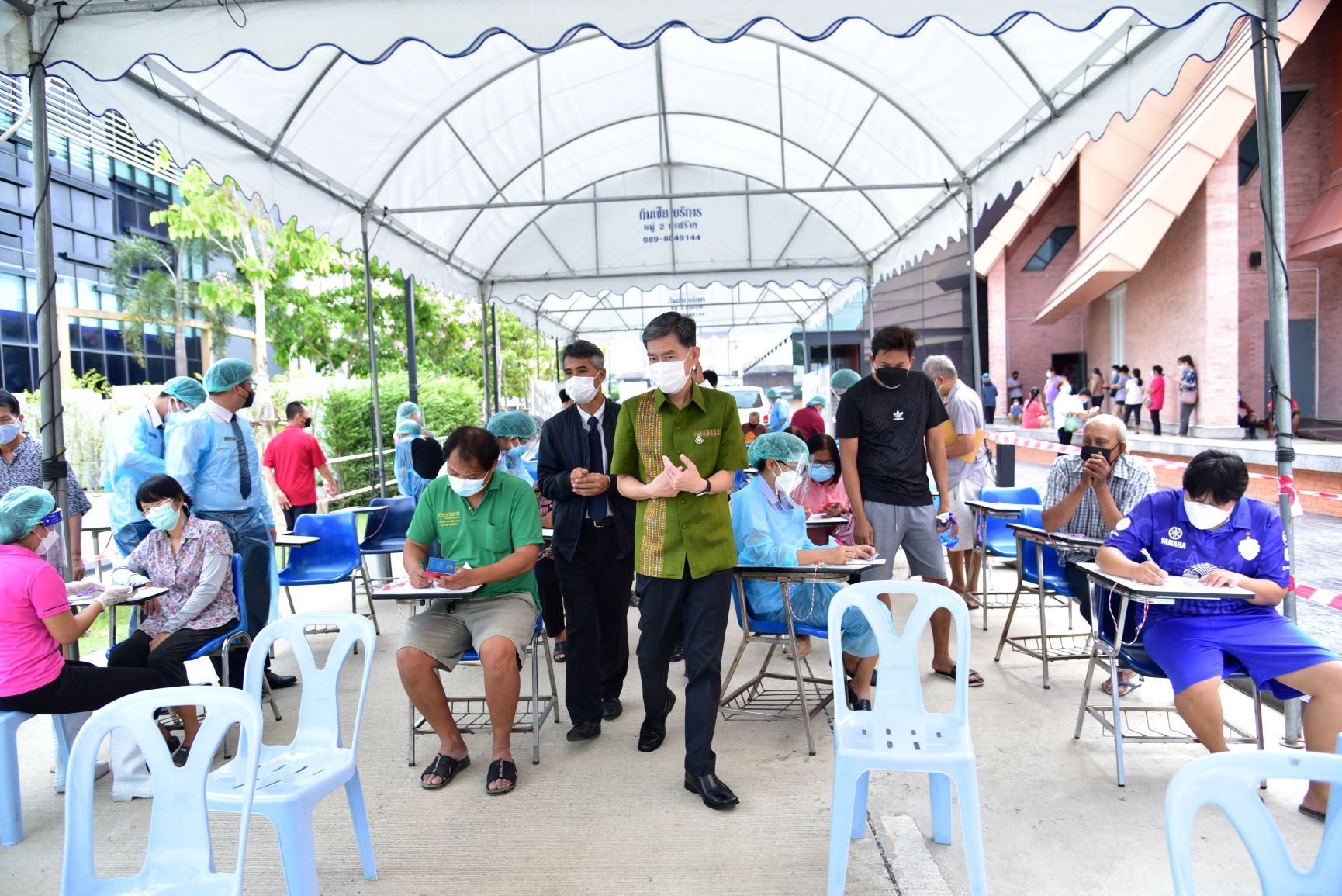 วันที่ 4 ส.ค.2564 นายสุรศักดิ์ เจริญศิริโชติ ผู้ว่าราชการจังหวัดนครปฐม ตรวจเยี่ยมการบริการฉีดวัคซีน ที่หน่วยบริการฉีดวัคซีนอาคารสิริวรปัญญา มหาวิทยาลัยราชภัฏนครปฐม อำเภอเมืองนครปฐม และที่อาคารคอนเวนชั่น มหาวิทยาลัยเกษตรศาสตร์ วิทยาเขตกำแพงแสน อำเภอกำแพงแสน จังหวัดนครปฐม ซึ่งจังหวัดนครปฐมได้เร่งดำเนินการฉีดให้กับกลุ่มผู้สูงอายุ 60 ปีขึ้นไป และกลุ่มเสี่ยง 7 โรคเรื้อรัง เข็มแรกที่ลงทะเบียนผ่านหมอพร้อม และช่องทางต่างๆ ของจังหวัดนครปฐม ซึ่งสามารถรองรับการฉีดให้กับประชาชน1,000-1,500 คน/วัน เพื่อสร้างภูมิคุ้มกันหมู่ให้กับประชาชนในการป้องกันและลดอัตราเสี่ยงต่อการติดเชื้อโควิด-19