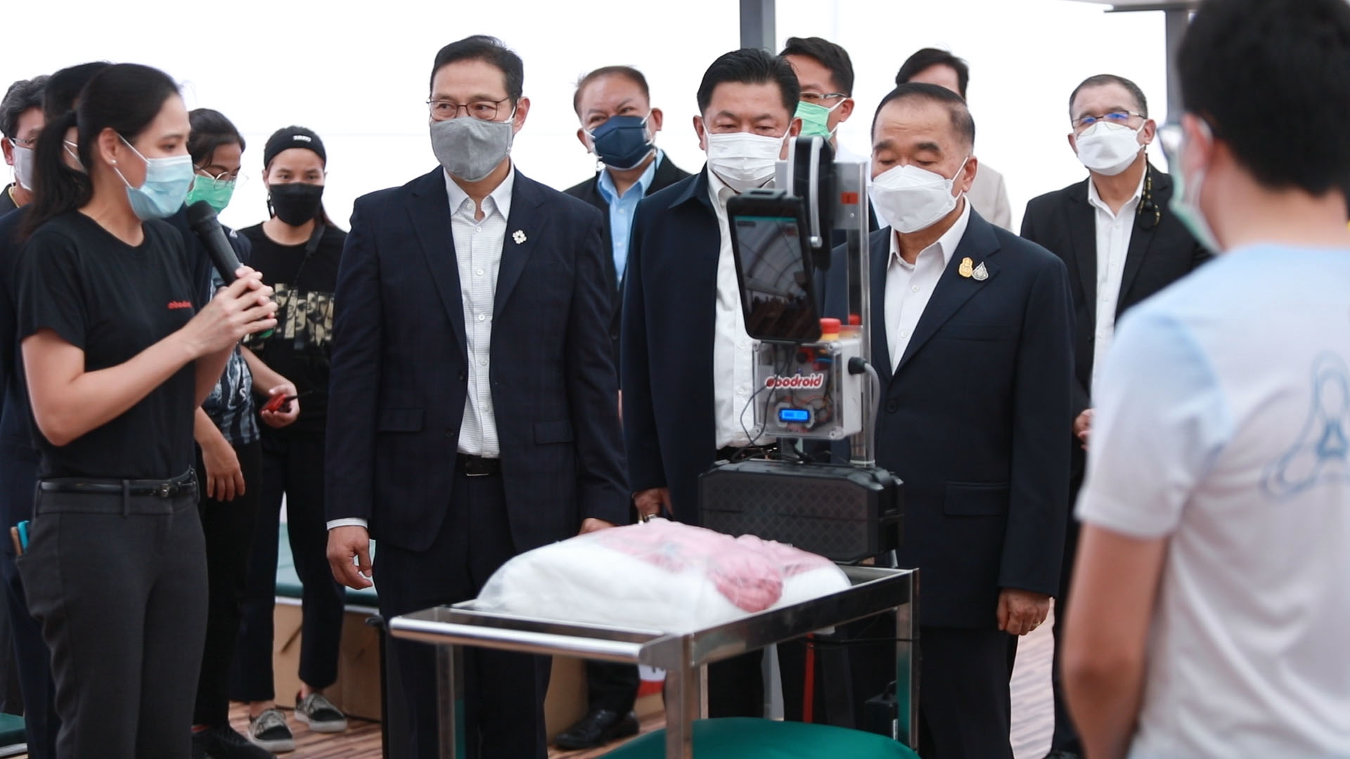 *****และต่อมาเมื่อเวลา 14.00น. วันที่8 ส.ค.2564 ดร.สาธิต ปิตุเตชะ รัฐมนตรีช่วยว่าการกระทรวงสาธารณสุข เป็นประธานในการตรวจเยี่ยมโรงพยาบาลสนามแสงแห่งใจมีนายแพทย์พรณรงค์ ศรีม่วง นายแพทย์สาธารณสุขจังหวัดสมุทรปราการ และนายณัฐพงศ์ แตงสุวรรณ นายกเทศมนตรีเมืองบางแก้ว ร่วมเยี่ยมชม และดูการสาธิตการรักษาพยาบาลด้วยระบบ telemedicine tablet “ไข่ต้ม ฮอสพิทอล” (Kaitomm Hospital) และหุ่นยนต์ “ปิ่นโต” ในการสื่อสารกับผู้ป่วย เป็นคณะที่ 2 เพื่อขอบคุณภาคเอกชนและให้คำแนะนำ ให้กำลังใจบุคลากรทางการแพทย์ในการทำงานช่วยแบ่งเบาภาระของภาครัฐ โดยมีคณะผู้บริหารโรงพยาบาลแสงแห่งใจนำโดย ดร.สาธิต วิทยากร กรรมการผู้จัดการบริษัท พริ้นซิเพิล เฮลท์แคร์ จำกัดในเครือบริษัท พริ้นซิเพิล แคปิตอล จำกัด (มหาชน) หรือ PRINC และ นายวิสิษฐ์ มาลัยศิริรัตน์ ประธานเจ้าหน้าที่บริหาร บริษัทแมกโนเลีย ควอลิตี้ ดีเวล็อปเม้นต์ คอร์ปอเรชั่น จำกัด (MQDC) พร้อมคณะ พาเยี่ยมชม ณ ที่ตั้งโรงพยาบาลสนามแสงแห่งใจ ซอยวัดคลองปลัดเปรียง ถนนบางนาตราด กม.5 ต.บางแก้ว อ.บางพลี จ.สมุทรปราการ