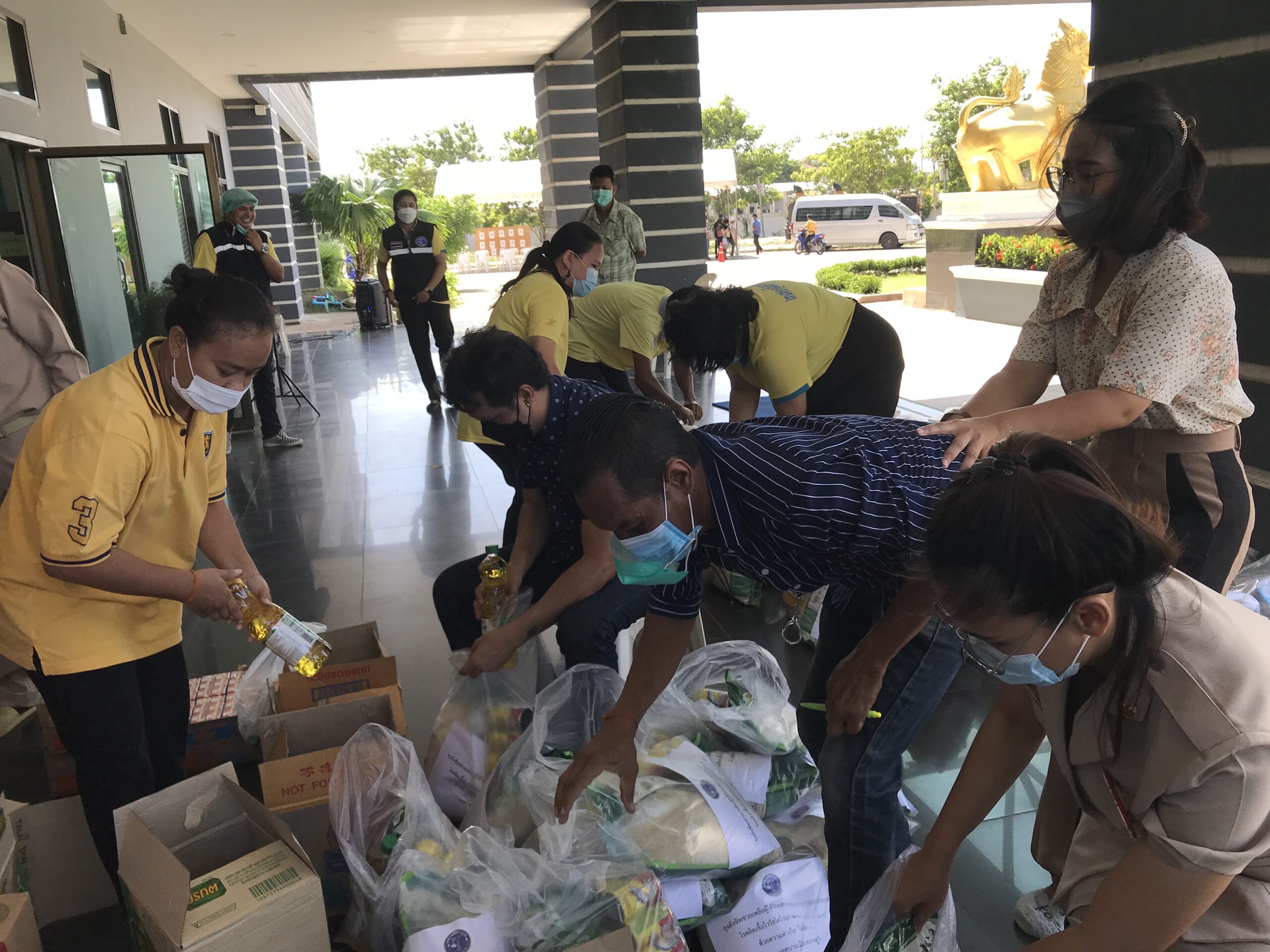 ผู้สื่อข่าวรายงานว่า ที่สำนักงานเทศบาลเมืองบางคูวัด อ.เมือง จ.ปทุมธานีจัดคาราวานมอบถุงยังชีพให้ผู้ป่วยโควิท สีเขียว รอบที่ 3 จำนวน 91 ครัวเรือน