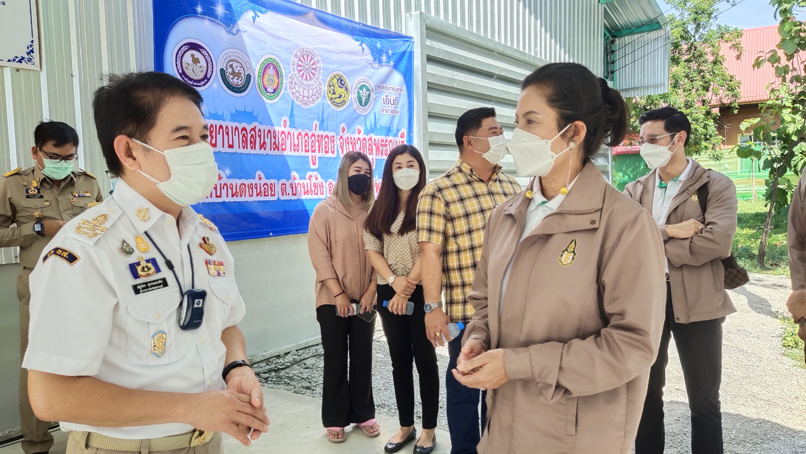 ที่จังหวัดสุพรรณบุรี นายณัฐภัทร สุวรรณประทีป ผู้ว่าราชการจังหวัดสุพรรณบุรี เป็นประธานพิธีรับมอบอาคารมาตรศรี ที่สร้างเป็นโรงพยาบาลสนามระดับอำเภอ ส่วนขยายขนาด 90 เตียง ภายในวัดบ้านดงน้อย ตำบลบ้านโข้ง อำเภออู่ทอง จังหวัดสุพรรณบุรีพร้อมตรวจความพร้อมของอุปกรณ์ต่างๆและเยี่ยมให้กำลังใจเจ้าหน้าที่บุคลากรทางการแพทย์ที่ปฏิบัติหน้าที่ในโรงพยาบาลสนามแห่ง มีนายนพฤทธิ์ ศิริโกศล รองผู้ว่าราชการจังหวัดสุพรรณบุรี นายเสกสรร ถนอมกิตติ นายอำเภออู่ทอง นายอดิศักดิ์ มาตรศรี กำนันตำบลพลับพลาไชย นายพีระศักดิ์ มาตรศรี นายก อบต.พลับพลาไชย นางพชรพรรณ มาตรศรี ประธานคณะกรรมการพัฒนาสตรีอำเภออู่ทอง นายชัยวัฒน์ มาตรศรี นายอุดม ลลิตนิธิ นักศึกษาหลักสูตร ปศส.19 สถาบันพระปกเกล้าพร้อมคณะ พญ.สมพิศ จำปาเงิน ผอ.โรงพยาบาลอู่ทอง นายสุ่ยถิน แซ่ตัน สาธารณสุขอำเภออู่ทอง อสม.ร่วมให้การต้อนรับ