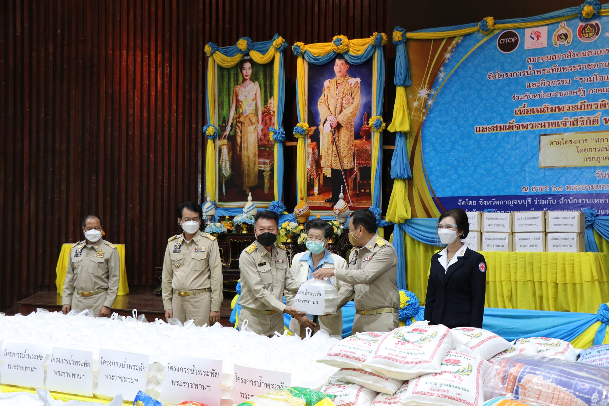 กาญจนบุรี สมาคมสภาสังคมสงเคราะห์แห่งประเทศไทยฯ ร่วมกับ จังหวัดกาญจนบุรี มอบอาหารปรุงสุกบรรจุกล่องตามโครงการน้ำพระทัยพระราชทาน ให้กับโรงพยาบาล เรือนจำและชุมชน เพื่อเฉลิมพระเกียรติพระบาทสมเด็จพระวชิรเกล้าเจ้าอยู่หัว และสมเด็จพระนางเจ้าสิริกิติ์ พระบรมราชินีนาถ พระบรมราชชนนีพันปีหลวง