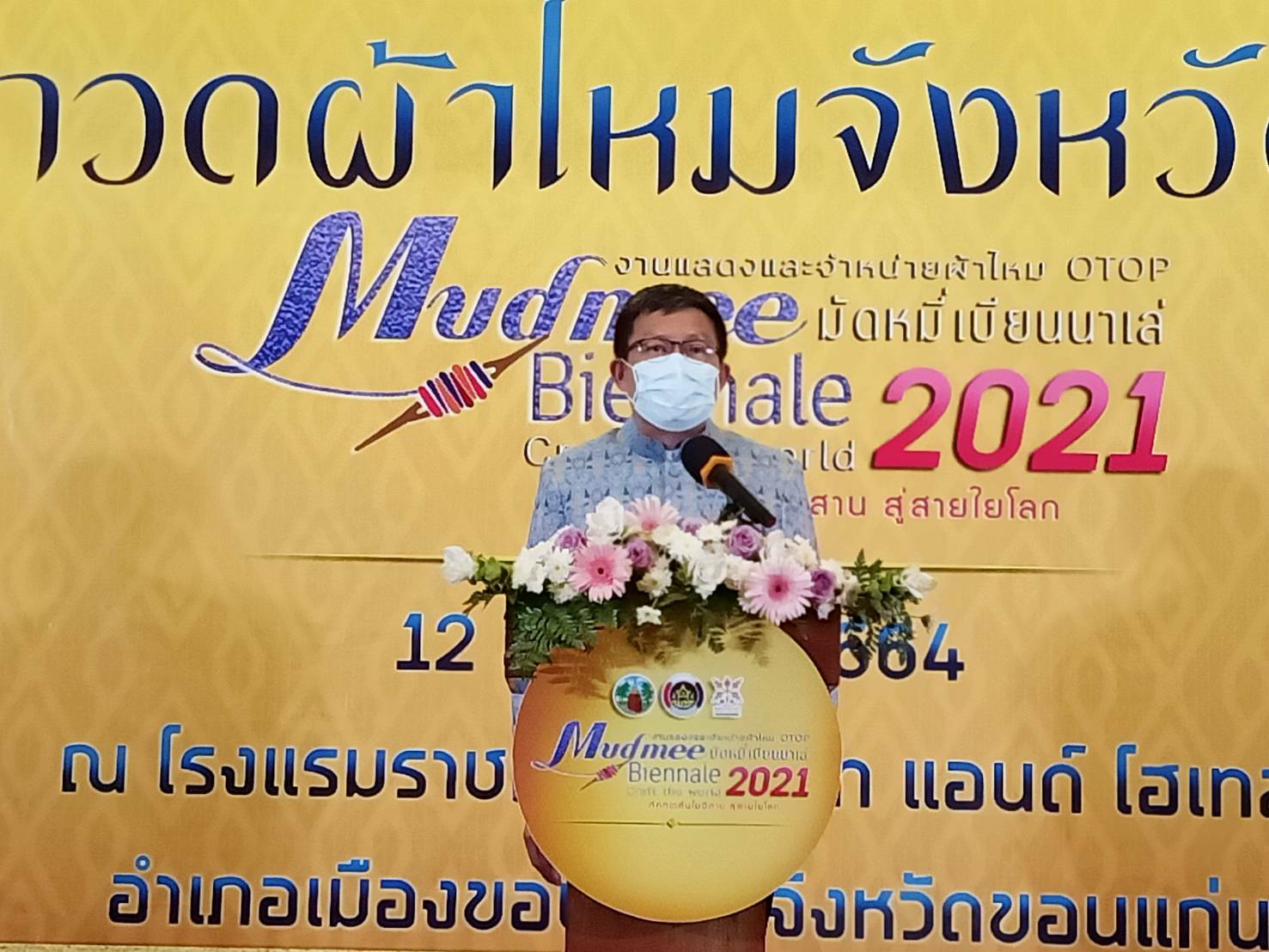 นายจำเริญ แหวนเพ็ชร พัฒนาการจังหวัดขอนแก่น กล่าวว่าจังหวัดขอนแก่น ได้อนุมัติจัดสรรงบประมาณให้สำนักงานพัฒนาชุมชนจังหวัดขอนแก่น เพื่อดำเนินจ้างเหมาโครงการพัฒนาศักยภาพและยกระดับการค้า การลงทุนสินค้า OTOP SMEs และผลิตภัณฑ์จังหวัด กิจกรรมจัดแสดงและจำหน่ายผ้าไหม ผลิตภัณฑ์จากไหม และการจัดแสดงและจำหน่ายผ้าไหมผลิตภัณฑ์จากไหม เป็นกิจกรรมสำคัญที่สอดคล้องกับแผนปฏิบัติการขับเคลื่อนเมืองหัตถกรรมโลกแห่งผ้ามัดหมี่สู่สากล(WCC-Word Craft City For Ikat (Mudmee) ภายใต้ทีมงานถักทอเส้นใย สู่สายใยโลก Mudmee Bienale 2021 การจัดประกวดผ้าไหม ครั้งนี้มีวัตถุประสงค์เพื่อสืบสานพระราชปณิธานสมเด็จพระนางเจ้าสิริกิติ์ พระบรมราชินีนาถพระบรมราชชนนีพันปีหลวง ในเรื่องการอนุรักษ์ภูมิปัญญาท้องถิ่นไทย และเผยแพร่พระอัจฉริยภาพของสมเด็จพระเจ้าลูกเธอ เจ้าฟ้าสิริวัณณวรี นารีรัตนราชกัญญา ด้านการออกแบบเครื่องแต่งกาย สิ่งทอและการอนุรักษ์ผ้าไทยให้เห็นเป็นที่ประจักษ์ และการสืบสานอนุรักษ์ปลุกกระแสเทรนผ้าไหมให้ทันสมัย พร้อมดึงรายได้เข้าสู่ชุมชนเศรษฐกิจฐานราก และเพื่อการเผยแพร่ประชาสัมพันธ์ผ้าไหมแต่ละประเภทให้เป็นที่รู้จักผ่านการประกวดผ้าไหม กลุ่มเป้าหมายที่ส่งผ้าไหมเข้าประกวดประกอบด้วย ผู้ผลิต ผู้ประกอบการ OTOP จังหวัดขอนแก่น ส่งผ้าไหมมัดหมี่เข้า
