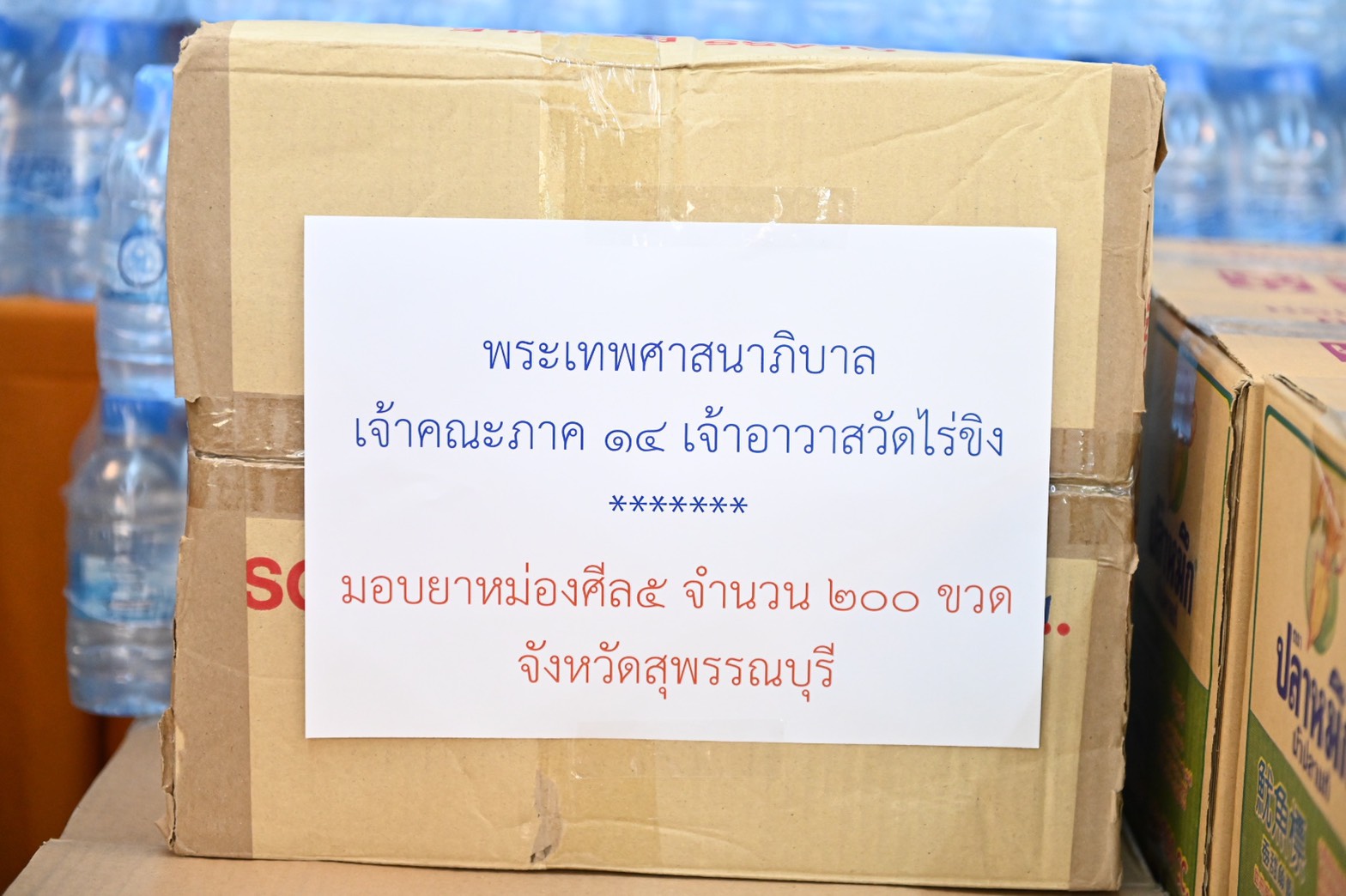 โดยมี พระเทพศาสนาภิบาล เจ้าคณะภาค 14 เจ้าอาวาสวัดไร่ขิง พระอารามหลวง เป็นองค์ประธานรับมอบเครื่องอุปโภคบริโภค พร้อมด้วย พระบวรรังษี รองเจ้าคณะภาค 14 ผู้แทนเจ้าคณะจังหวัด นครปฐม สุพรรณบุรี กาญจนบุรี และจังหวัดสมุทรสาคร ร่วมด้วย นายสิปป์บวร แก้วงาม รองผู้อำนวยการสำนักงานพระพุทธศาสนาแห่งชาติ และเจ้าหน้าที่สำนักงานพระพุทธศาสนาทั้4จังหวัด ร่วมพิธี ซึ่งมีนายบุญเชิด กิตติธรางกูร ผู้อำนวยการสำนักงานพระพุทธศาสนาจังหวัด กล่าวรายงานความสำคัญ ความเป็นมา และวัตถุประสงค์