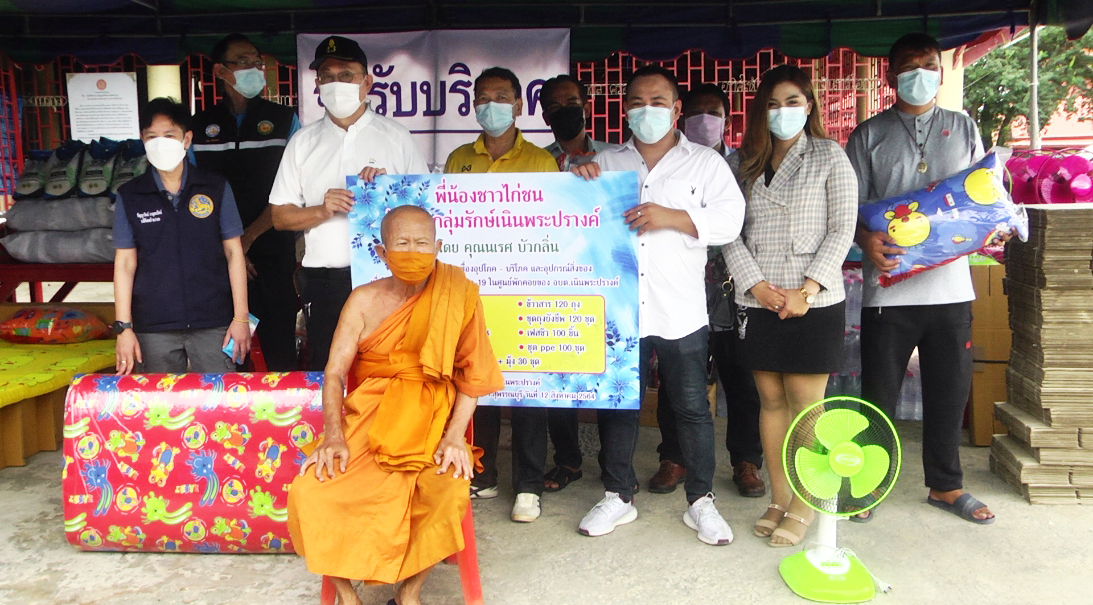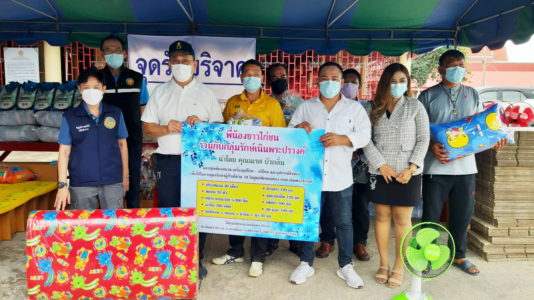 นายนเรศ บัวกลิ่น กล่าวว่าตนในฐานะประธานกลุ่มรักษ์เนินพระปรางค์ และเคยเป็นผู้ป่วยติดเชื้อไวรัสโควิด 19 และได้ทำการรักษาหายแล้วได้จัดทำโครงการนี้ขึ้นโดยร่วมกับพี่น้องชาวไก่ชนจากทั่วประเทศช่วยกันสมทบทุนนำมาจัดซื้อเตียง ที่นอน หมอนมุ้ง พัดลม ชุด PPE ถุงยังชีพ ข้าวสาร แมสก์ หน้ากากอนามัย และของใช้อื่นๆมามอบให้กับศูนย์พักคอยวัดเนินพระปรางค์ แห่งนี้ให้ผู้ป่วยที่เข้ามากักตัวสังเกตอาการ เป็นการช่วยเหลือแบ่งเบาภาระและดูแลพี่น้องประชาชนในยามทุกข์ยาก ในยามที่กำลังเดือดร้อน และเป็นการช่วยเหลือหน่วยงานภาครัฐ และเป็นการทำบุญด้วย ตนในฐานะที่เคยเป็นผู้ป่วยโควิด ก็อยากจะฝากถึงพี่น้องประชาชนทั้งที่เป็นผู้ป่วยและที่ไม่ป่วย ขอให้ช่วยกันรักษาสุขภาพ ป้องกันตัวเอง รักษาระยะห่างล้างมือบ่อยๆด้วยเจลแอลกอฮอล์ สวมแมสก์ หน้ากากอนามัยทุกครั้งที่ออกจากบ้านและที่สำคัญขอให้ปฏิบัติตามาตรการของกระทรวงสาธารณสุขอย่างเคร่งครัดขอให้ทุกคนปลอดภัย เราจะก้าวผ่านวิกฤติโควิดไปด้วยกัน