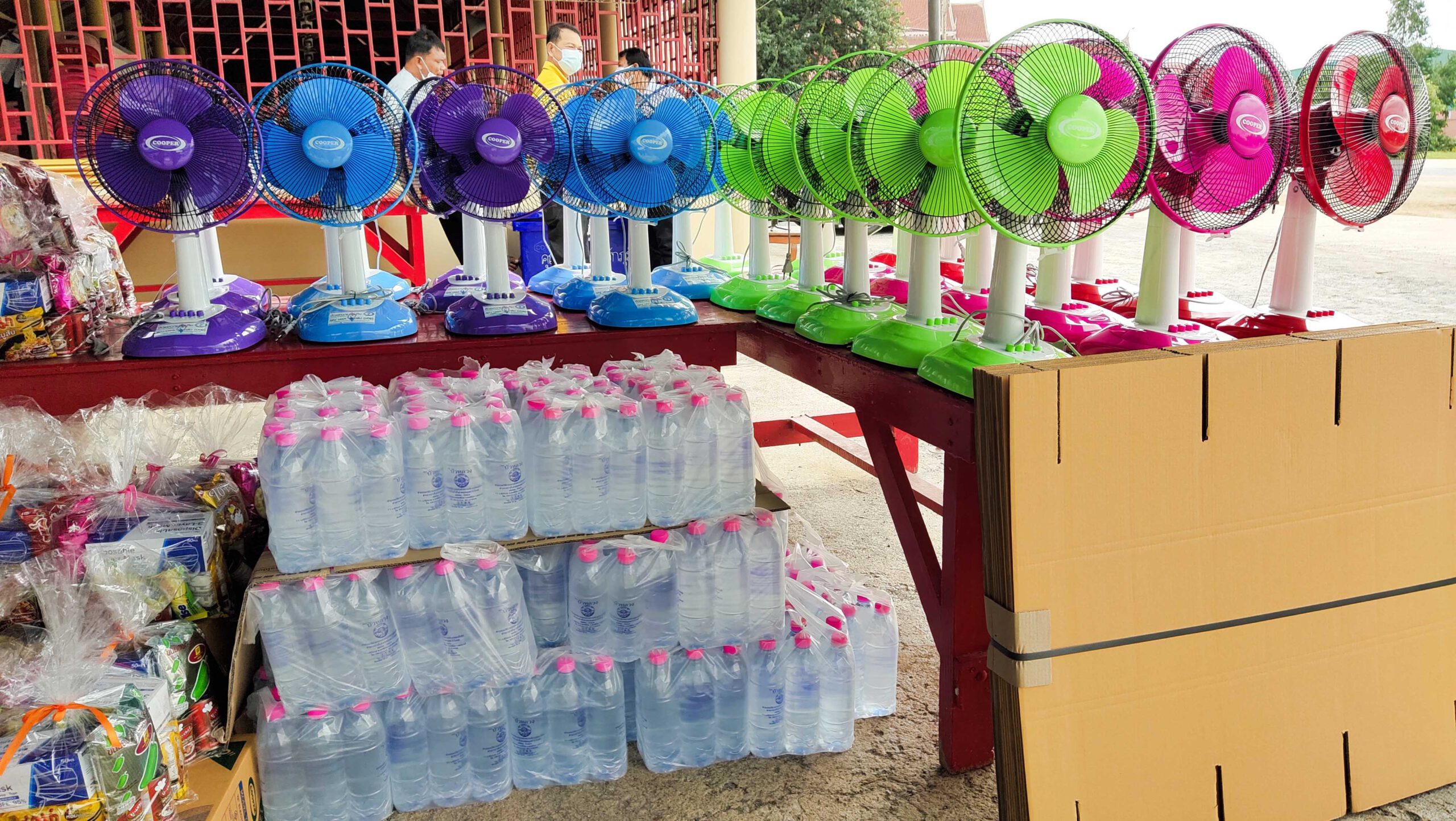 สุพรรณบุรี ผู้ป่วยโควิดรักษาหายแล้วนำกลุ่มไก่ชนมอบของใช้นับหมื่นชิ้นให้ศูนย์พักคอย