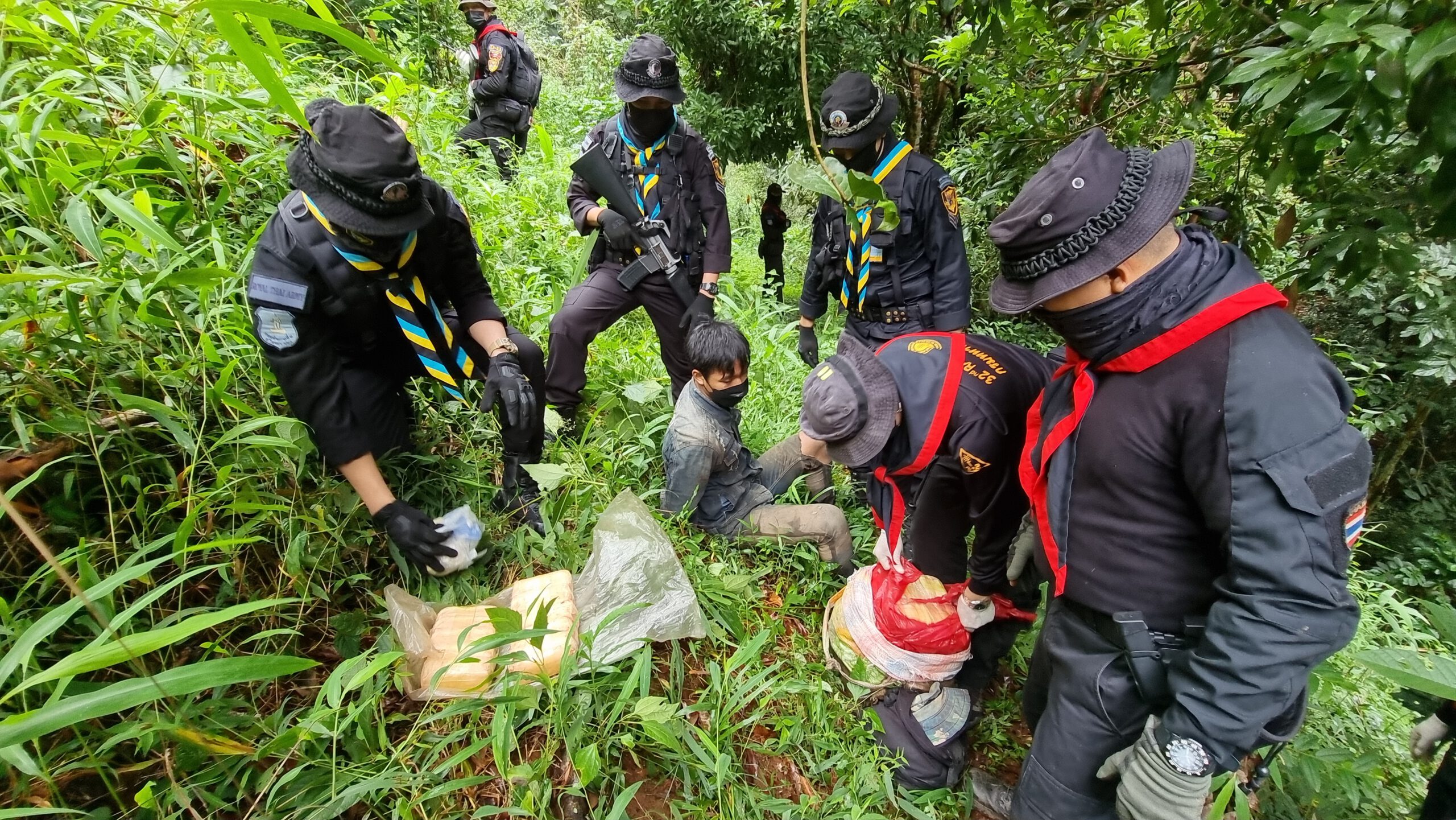 หน่วยจึงได้แสดงตัวเพื่อขอทำการตรวจค้น แต่กลุ่มบุคคลดังกล่าว เมื่อเห็น จนท. ได้ทำการยิงปืนเพื่อเปิดทางหนี จนท.จึงได้ยิงตอบโต้ เป็นเวลา 3-5นาที จากนั้นได้ตรวจสอบพื้นที่ดังกล่าว ตรวจพบ บุคคลชาย จำนวน 2 คน หลบอยู่บริเวณพุ่มหญ้า พร้อมเป้ (ดัดแปลง) จำนวน 2 เป้ ภายในบรรจุยาเสพติดประเภทที่ 1 (ยาบ้า) ประมาณ 251,400 เม็ด โดยมีรายละเอียดผู้ต้องหา ดังนี้ 1นายสมภพ จะมู อายุ 17 ปี ที่อยู่บ้านเลขที่ 120 บ.ดอยแหลม ต.แม่อาย อ.แม่อาย จว.ช.ม. 2 นาย จะอือ จะลอ อายุ 16 ปี ที่อยู่ บ้านเลขที่ 65 บ.ดอยแหลม ต.แม่อาย อ.แม่อาย จว.ช.ม. ได้นำตัวขยายผล แล้วนำผู้ต้องหาพร้อมยาบ้าของกลางส่งพนักงานสอบสวนสถานีตำรวจภูธรแม่อายเพื่อดำเนินคดีต่อไป
