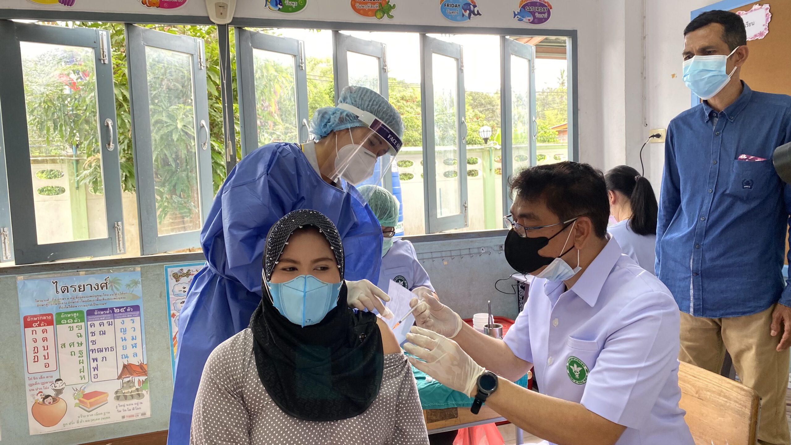 รพ.เบตงให้บริการฉีดวัคซีนเชิงรุกเข้าถึงในหมู่บ้านพี่น้องไทยพุทธไทยมุสลิม ณ กม.29 โรงเรียนบ้านอัยเยอร์เวง อ.เบตง จ.ยะลา