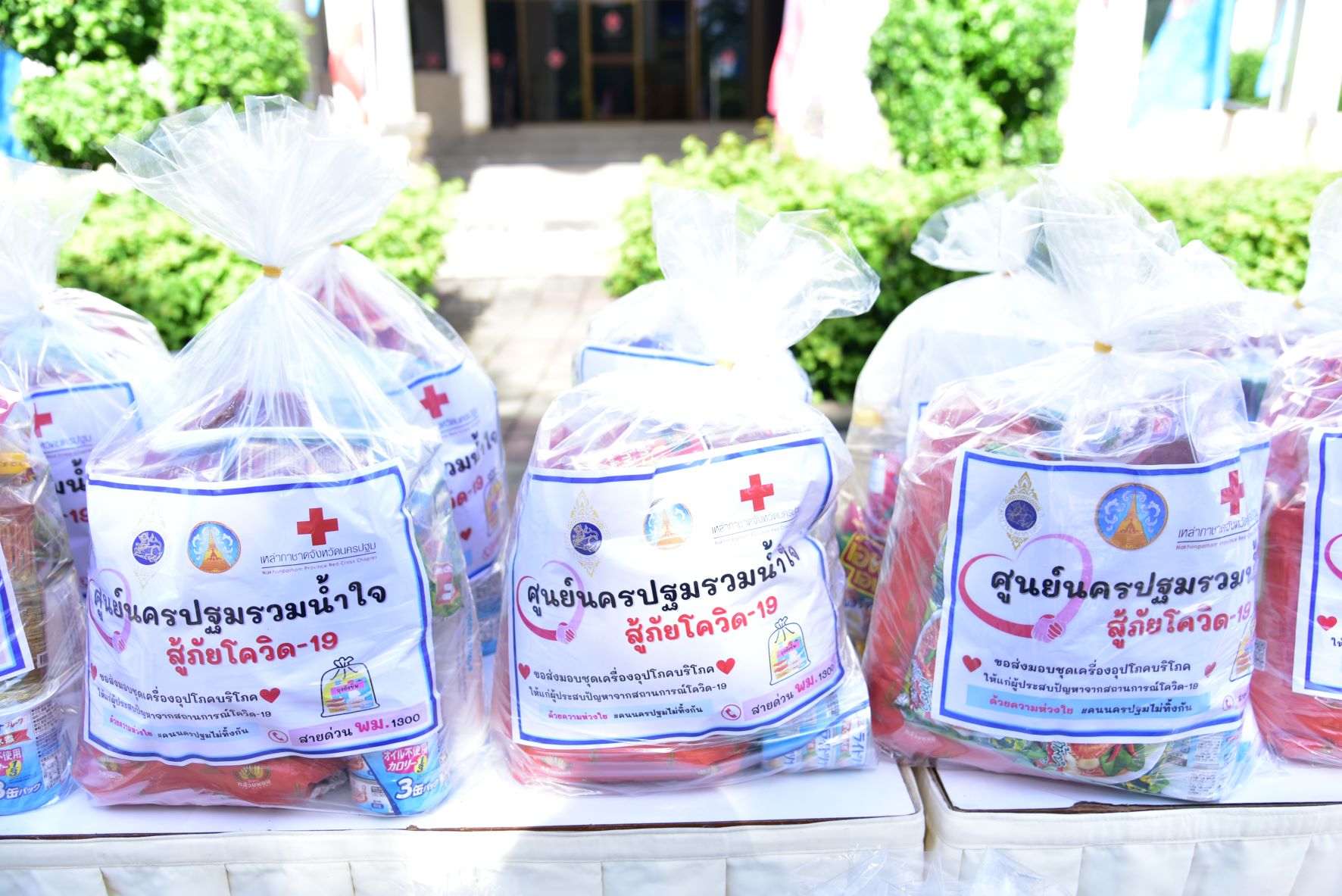 นายสุรศักดิ์ เจริญศิริโชติ ผู้ว่าราชการจังหวัดนครปฐม พร้อมด้วยนางวราภรณ์ เจริญศิริโชติ นายกเหล่ากาชาดจังหวัดนครปฐม มอบถุงยังชีพและชุดอุปกรณ์ป้องกันการติดเชื้อไวรัสโคโรนา 2019 โดยมีหัวหน้าส่วนราชการที่เกี่ยวข้อง พร้อมด้วยเจ้าหน้าที่สังกัดกระทรวงแรงงาน และกระทรวงพัฒนาสังคมและความมั่นคงของมนุษย์จังหวัด ร่วมพิธี