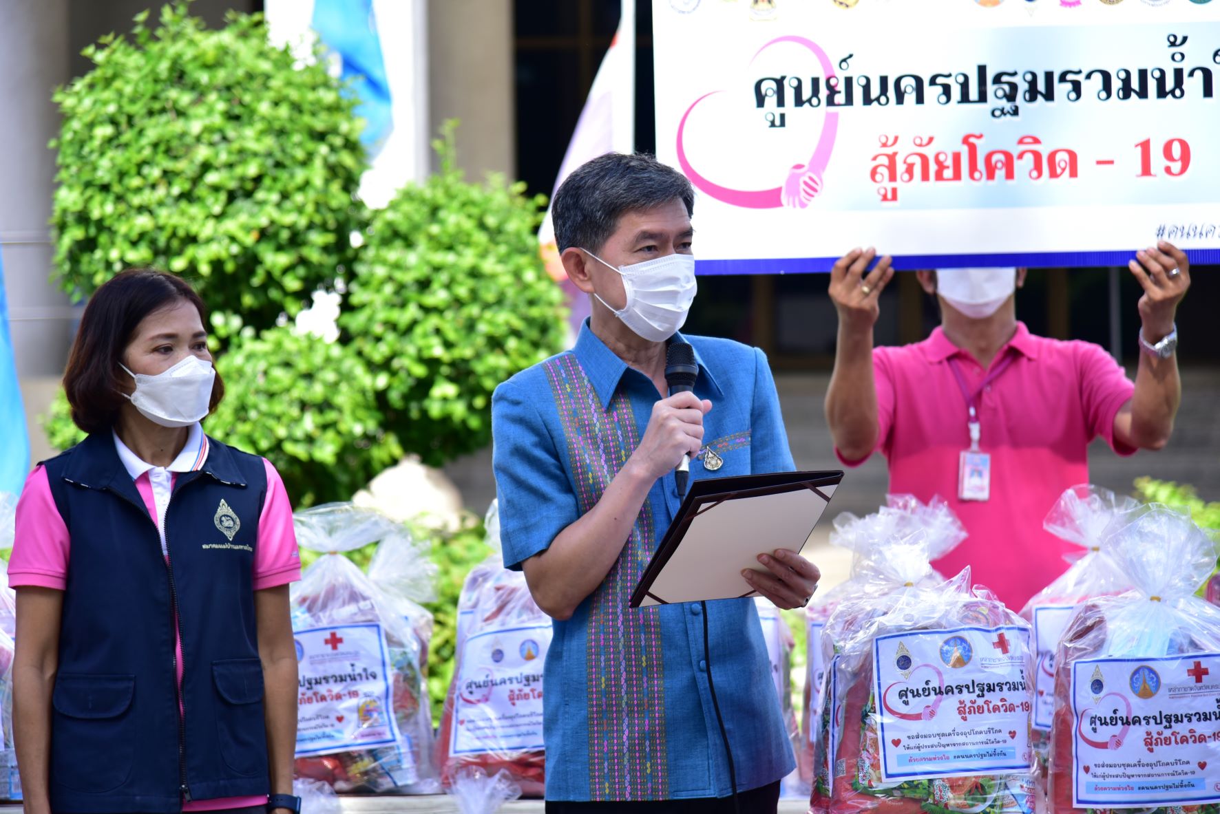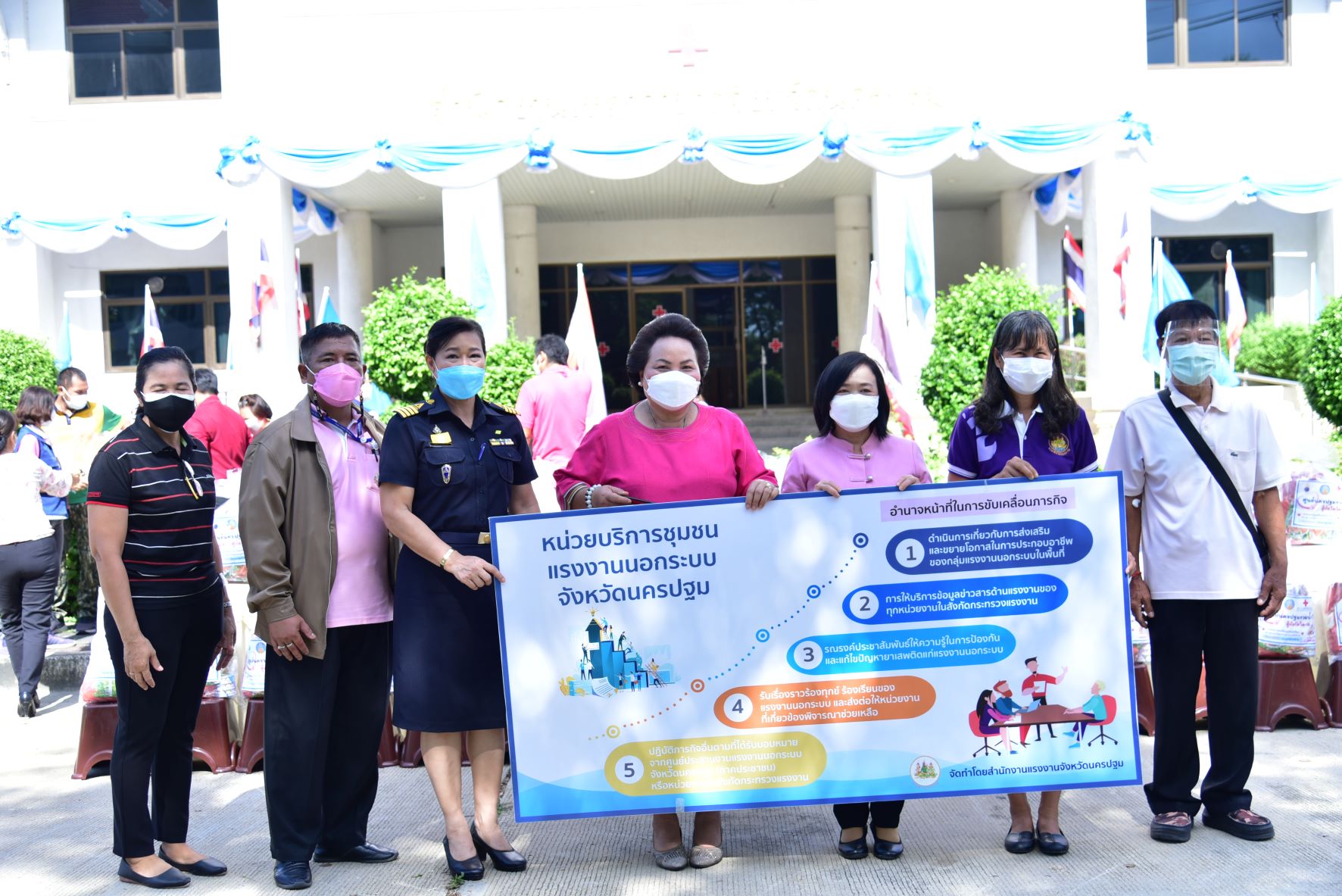 นครปฐม มอบถุงยังชีพและชุดอุปกรณ์ป้องกันโควิดให้อาสาสมัครแรงงาน