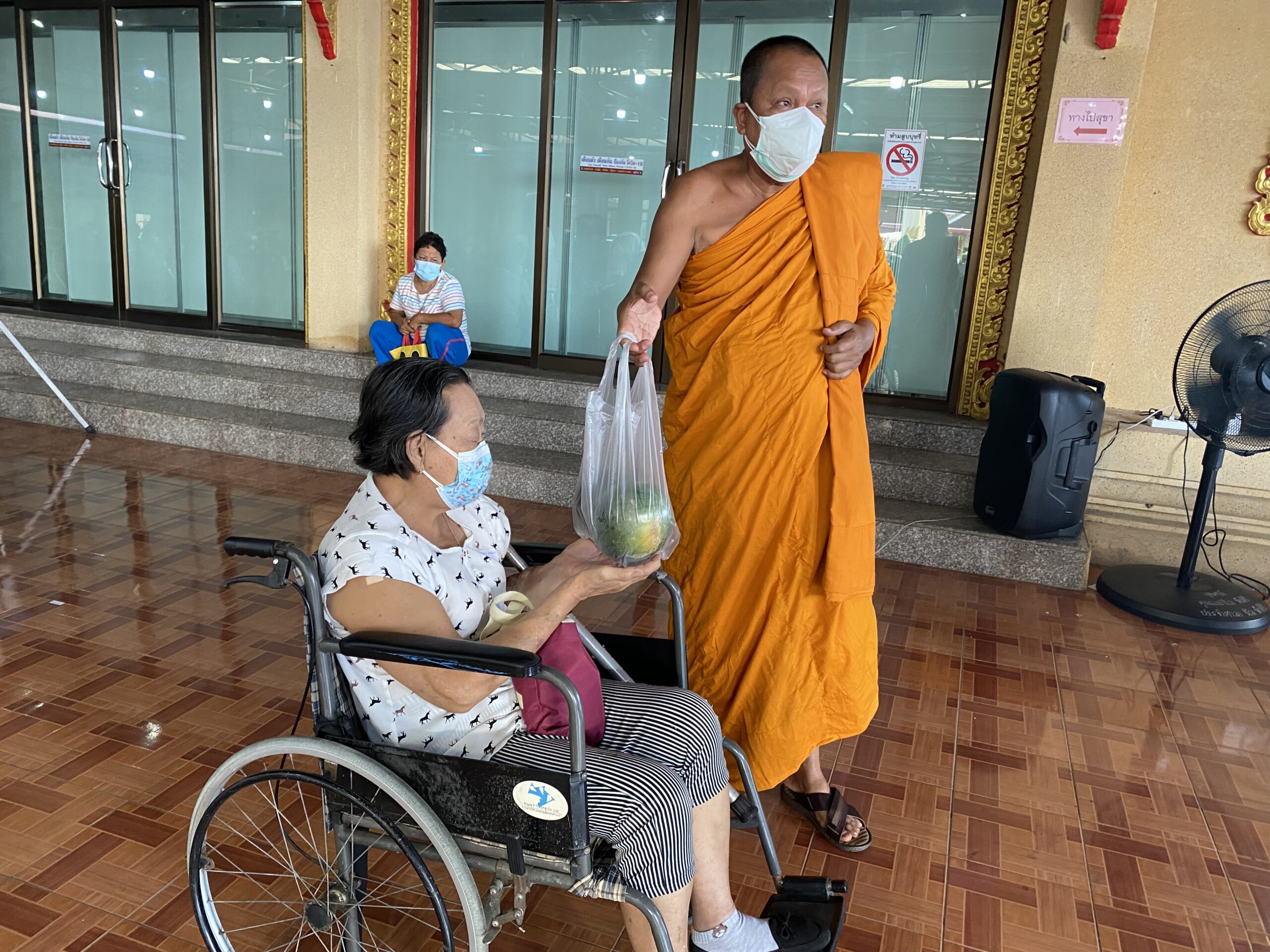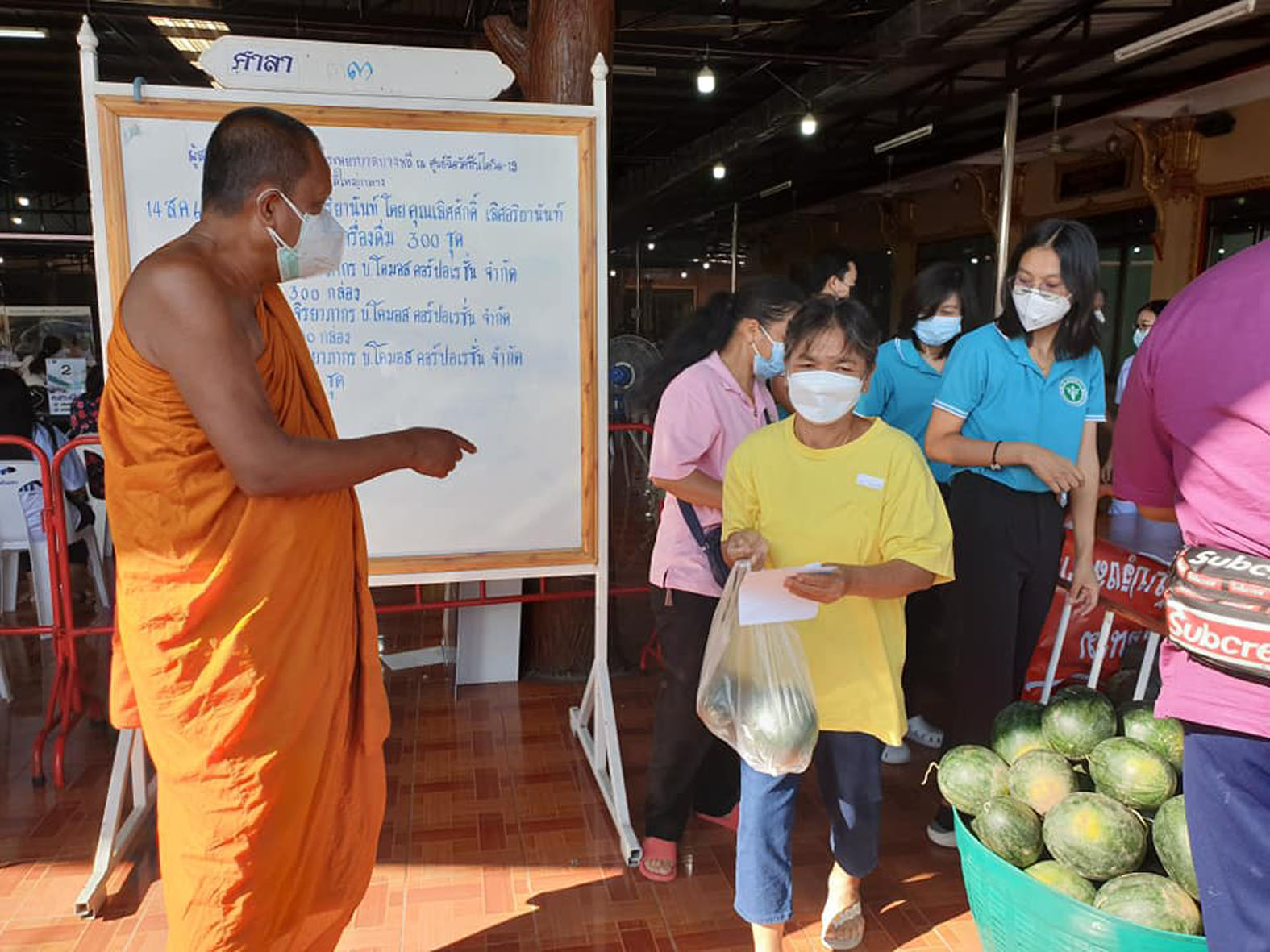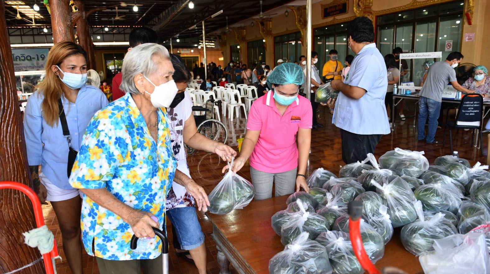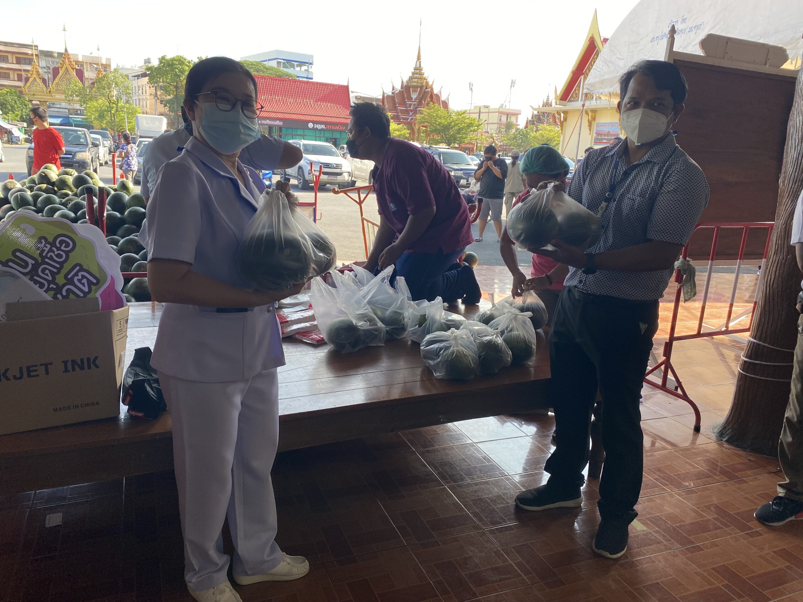 สมุทรปราการ พระอาจารย์แจ้ เหมาแตงโมแจกชาวบ้านที่มาฉีดวัคซีนที่ศูนย์ฉีดวัคซีนวัดบางพลีใหญ่กลาง