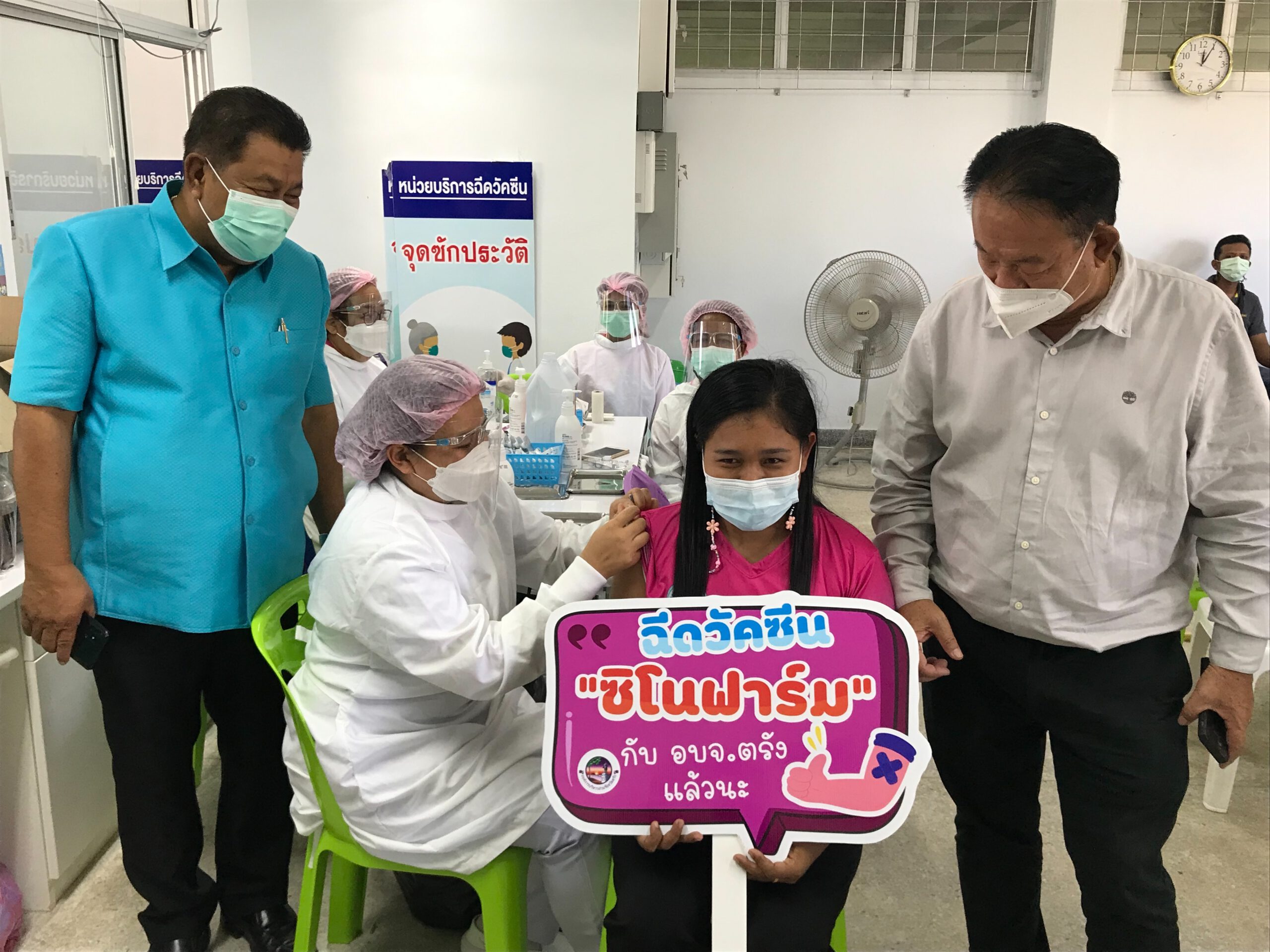 โดยการฉีดวัคซีนซิโนฟาร์ม (เข็มแรก) ของ อบจ.ตรัง ได้ดำเนินการแล้วเสร็จใน 2 อำเภอ คือ อำเภอรัษฎา และอำเภอหาดสำราญ ซึ่งให้ประชาชนรอฉีดเข็มสอง ตามวันเวลานัดหมายต่อไป และตั้งแต่วันที่ 18 – 31 สิงหาคม องค์การบริหารส่วนจังหวัดตรัง ได้ร่วมกับโรงพยาบาลโรคผิวหนังเขตร้อนภาคใต้ และโรงพยาบาลรัฐทั้ง 10 อำเภอ รวมถึงสำนักงานสาธารณสุขจังหวัดตรัง เครือข่ายทางการแพทย์ จะให้บริการฉีดวัคซีน ซิโนฟาร์มเข็มแรกให้กับประชาชน อีก 8 อำเภอ ได้แก่ อำเภอเมืองตรัง อำเภอปะเหลียน อำเภอย่านตาขาว อำเภอนาโยง อำเภอวังวิเศษ อำเภอห้วยยอด อำเภอสิเกา และอำเภอกันตัง จนครบ 44,000 คน ตามที่ได้รับการจัดสรรวัคซีนจากราชวิทยาลัยจุฬาภรณ์