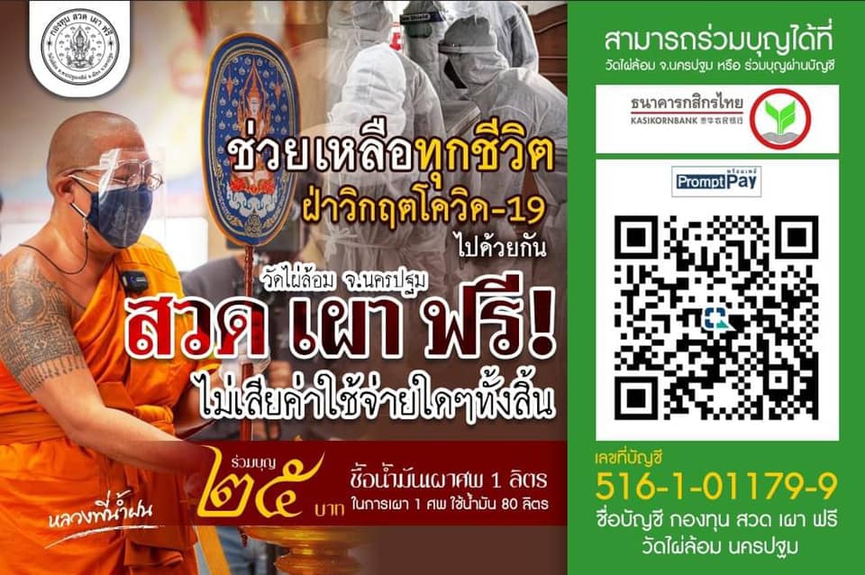 วันที่ 19 สิงหาคม 2564 พระครูปลัดสิทธิวัฒน์ หลวงพี่น้ำฝน เจ้าอาวาสวัดไผ่ล้อม ต.พระปฐมเจดีย์ อ.เมือง จ.นครปฐม ได้กล่าวว่า ขณะนี้โรคโควิด-19 มีการแพร่ระบาดอย่างรุนแรงในหลายจังหวัด และเป็นพื้นที่การแพร่ระบาดระดับสีแดงเข้ม รวมทั้งจังหวัดนครปฐม ก็เป็นหนึ่งจังหวัดที่มีจำนวนผู้ที่ติดเชื้อเพิ่มขึ้นวันละเป็นร้อยรายทุกวัน รวมทั้งมีผู้เสียชีวิตตายอย่างต่อเนื่องทุกวัน จากการนำผู้เสียชีวิตจากโควิด-19มาเผายังเมรุวัดไผ่ล้อมทุกวันๆละสองรายทุกวัน โดยทางวัดไผ่ล้อมได้มีการเตรียมพร้อมรับสถานการณ์ ที่เกิดขึ้น อย่างเต็มที่ อีกทั้งงานในด้านสาธารณะต่างๆเช่น การช่วยคนเป็น ในด้านการสาธารณสุข มีการเปิดโรงพยาบาลสาขาย่อยในวัดไผ่ล้อม ด้วยการจัดคณะสงฆ์และเจ้าหน้าที่ของวัดให้ช่วยกันขับเคลื่อนช่วยประชาชน ที่มาวัดไผ่ล้อมอย่างสุดกำลัง เพื่อให้ผู้สูงอายุ ผู้ป่วยที่มารับการรักษา พร้อมทั้งการจัดการสวดเผาฟรี โดยไม่มีการเรียกเก็บ ซึ่งค่าใช้จ่ายในการดำเนินการเป็นศูนย์บาท ด้วยการขับเคลื่อนด้วย กองทุนสวดเผาฟรี วัดไผ่ล้อม นครปฐม โดยพระครูปลัดสิทธิวัฒน์ หลวงพี่น้ำฝน เจ้าอาวาสวัดไผ่ล้อม