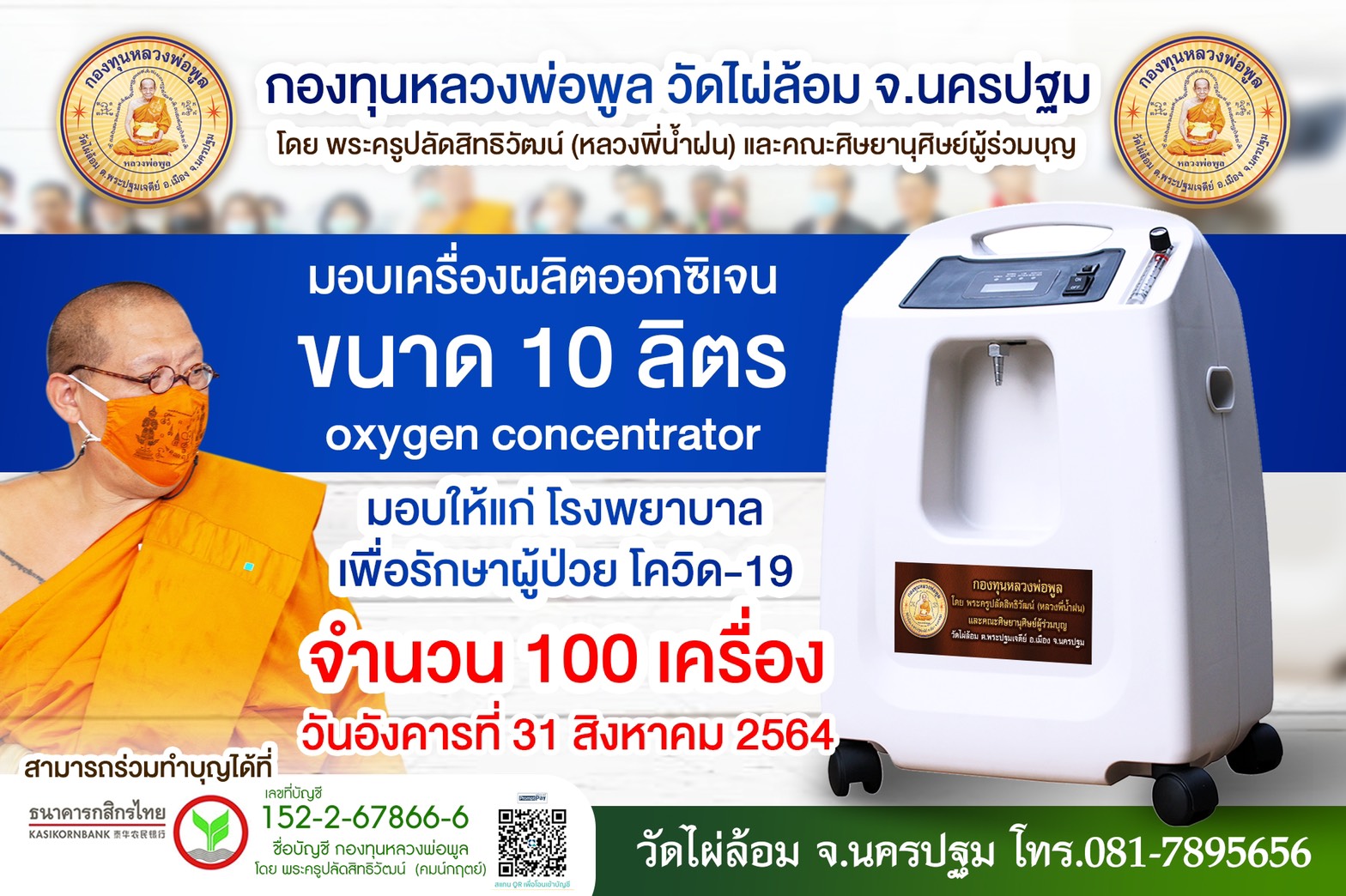 ทั้งนี้ หลวงพี่น้ำฝน ได้ฝากบอกว่าหากศิษย์ท่านใดที่ประสงค์จะเข้าร่วมในโครงการก็สามารถเข้ามาร่วมบุญกับกองทุนหลวงพ่อพูล วัดไผ่ล้อม ได้เลย เพราะตอนนี้มีทุนตั้งไว้รอสำหรับการจัดซื้ออย่างเร่งด่วนไปแล้ว รอการส่งเครื่องมาที่วัดและเตรียมประชุมเพื่อเร่งส่งเครื่องผลิตออกซิเจนลงพื้นที่ทันทีที่ได้รับเครื่องมา