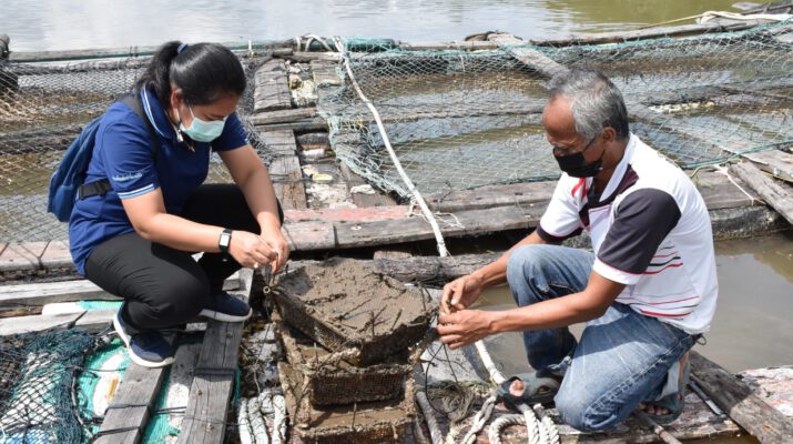 นางสาวสุพัชชา ชูเสียงแจ้ว อาจารย์ประจำสาขาเพาะเลี้ยงสัตว์น้ำและผลิตภัณฑ์ประมง คณะวิทยาศาสตร์และเทคโนโลยีการประมง มทร.ศรีวิชัย ตรัง ลงพื้นที่ติดตามดูความก้าวหน้า โครงการวิจัยการพัฒนาระบบการเลี้ยงหอยนางรมแบบความหนาแน่นสูง เพื่อยกระดับเศรษฐกิจชุมชนลุ่มน้ำปะเหลียน ตำบลวังวน อำเภอกันตัง จังหวัดตรัง ภายใต้แผนงานนวัตกรรมพัฒนาพื้นที่เพื่อยกระดับเศรษฐกิจฐานรากและหนุนเสริมผู้ประกอบการชุมชนใน เขตพื้นที่ลุ่มน้ำปะเหลียน จังหวัดตรัง ภายใต้การสนับสนุนจาก หน่วยบริหารและจัดการทุนด้านการพัฒนาระดับพื้นที่ (บพท.) ด้วยการถ่ายทอดความรู้สู่เกษตรกรผู้เลี้ยงหอยนางรม บ้านแหลม ตำบลวังวน อำเภอกันตัง จังหวัดตรัง ซึ่งปัจจุบันเป็นแหล่งอาศัยของหอยนางรม หอยแมลงภู่ในธรรมชาติแหล่งใหญ่ ที่ชาวบ้านมักดำน้ำ และงมหาเป็นประจำ ถือเป็นห้องครัวหน้าหมู่บ้าน แต่การหาในธรรมชาติมีวันหมดหายไป