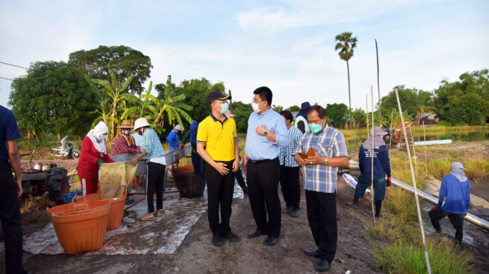 จังหวัดสุพรรณบุรี ได้รับการจัดสรรเงินงบประมาณในการช่วยเหลือเกษตรกรมาจำนวน618,000 บาทเพื่อช่วยเหลือส่วนต่างราคากุ้งจำนวน 20 ตันสามารถช่วยเหลือเกษตรกรผู้เลี้ยงกุ้งได้จำนวน 31ราย ซึ่งเป็นการช่วยเหลือเกษตรกรที่ได้รับผลกระทบจากการแพร่ระบาดของไวรัสโควิด19 ตามนโยบายของรัฐบาลวันนี้ได้มาดูการจับเพื่อนำไปเพิ่มช่วยเพิ่มช่องทางจำหน่ายตามโครงการของจังหวัดสุพรรณบุรีที่เข้ามาช่วยเหลือชดเชยส่วนต่างจัดหาจุดจำหน่ายให้แล้ว ก็อยากเชิญชวนพี่น้องประชาชนที่พอมีกำลังซื้อหรือท่านใดที่จะรับซื้อกุ้งตามมาตรการนี้ได้ขอให้แจ้งความประสงค์มาที่สำนักงานประมงจังหวัด และสำนักงานพาณิชย์จังหวัดสุพรรณ เพื่อจะได้ช่วยเหลือเกษตรกรผู้เลี้ยงกุ้งต่อไป