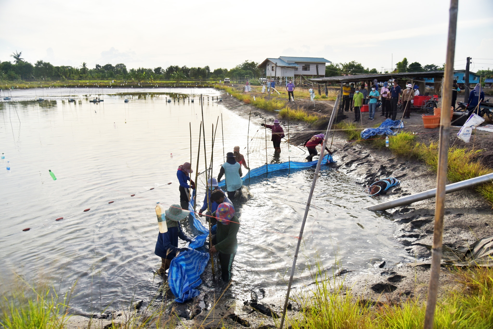มีเสียงนายชูชีพ รอง ผวจ.นายเดชา ประมงจังหวัด และนายสุวัฒน์ เกษตรกรผู้เลี้ยงกุ้ง ครับ ภัทรพล พรมพัก/สุพรรณบุรี