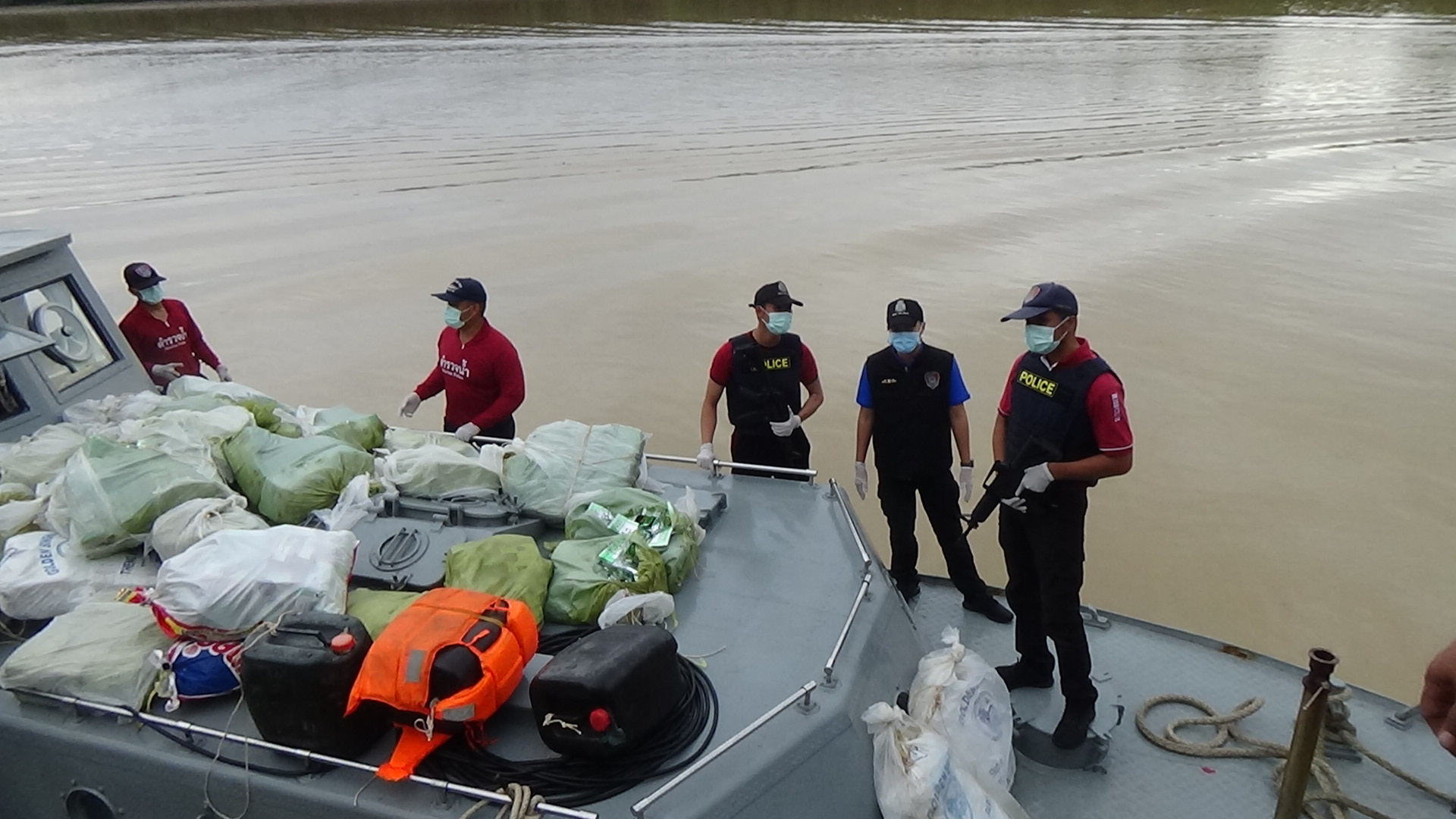 หลังรับแจ้งจึงจัดกำลังพร้อมนำเรือรุดตรวจสอบ กก.ชปส.ภ.จว.ตรัง และตำรวจ สภ.กันตัง เมื่อไปถึงบริเวณดังกล่าวอยู่กลางทะเล พบถังน้ำมันจำนวน 3 แกลลอน ลอยอยู่โดยรอบมีถุงปุ๋ยจำนวนหลายกระสอบตรวจสอบภายในพบไอซ์บรรจุภายในถุงชาจำนวนมาก จากการตรวจสอบเบื้องต้นมีทั้งหมด 32 กระสอบ รวมทั้งหมด 650 กก. จึงนำของกลางทั้งหมดมาที่ สถานีตำรวจน้ำกองกับการ 9 ตำรวจน้ำกันตัง จากการสอบสวนเบื้องต้นทราบว่าของกลางทั้งหมดคาดว่าเป็นเครือข่ายยาเสพติดมาทิ้งไว้ที่ตรงจุดพิกัดรับของกลางดังกล่าว แต่ช่วง 2 วันที่ผ่านมาในทะเลตรังมีลมมรสุมและคลื่นลมแรง จึงทำให้เชือกที่ผูกกับของกลางขาดทำให้หลุดกระจัดกระจายลอยขึ้นผิวน้ำดังกล่าว