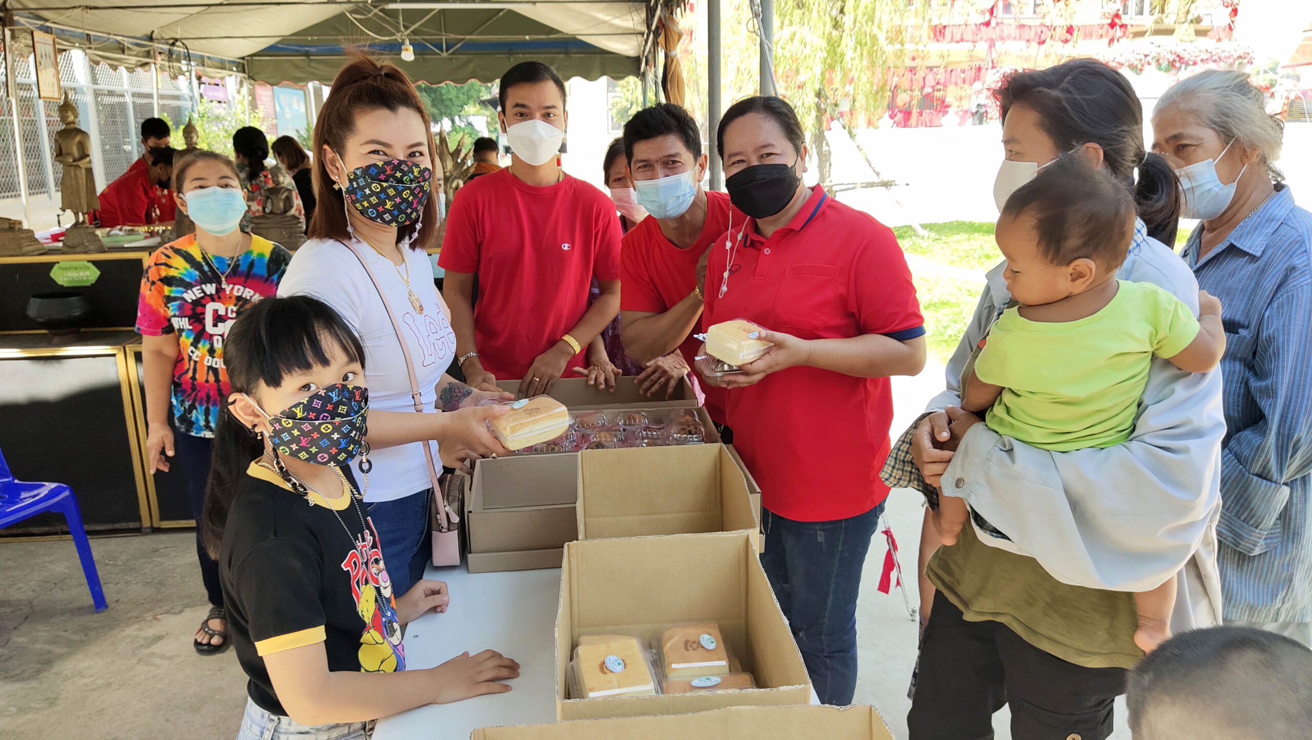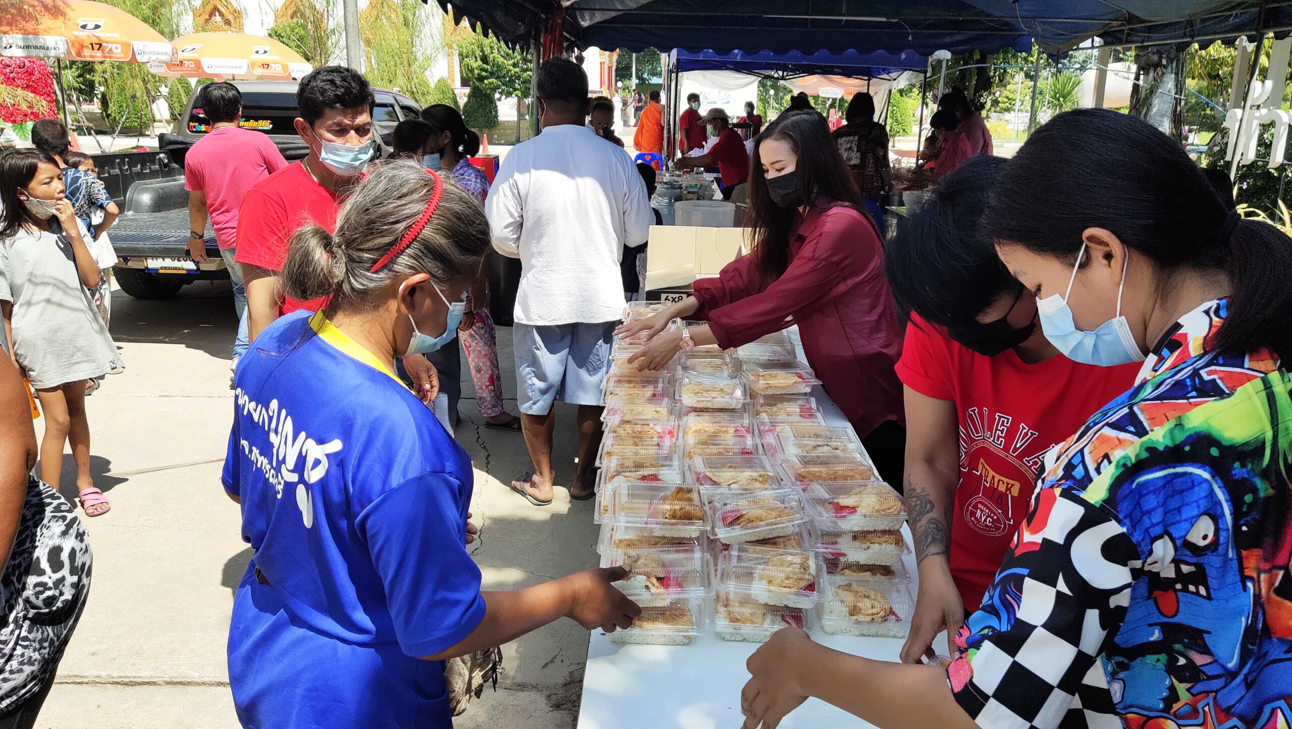 สุพรรณบุรี รวมพลคนดวงเฮงนำอาหารคาวหวานเลี้ยงชาวบ้านแก้บนท้าวเวสสุวรรณ