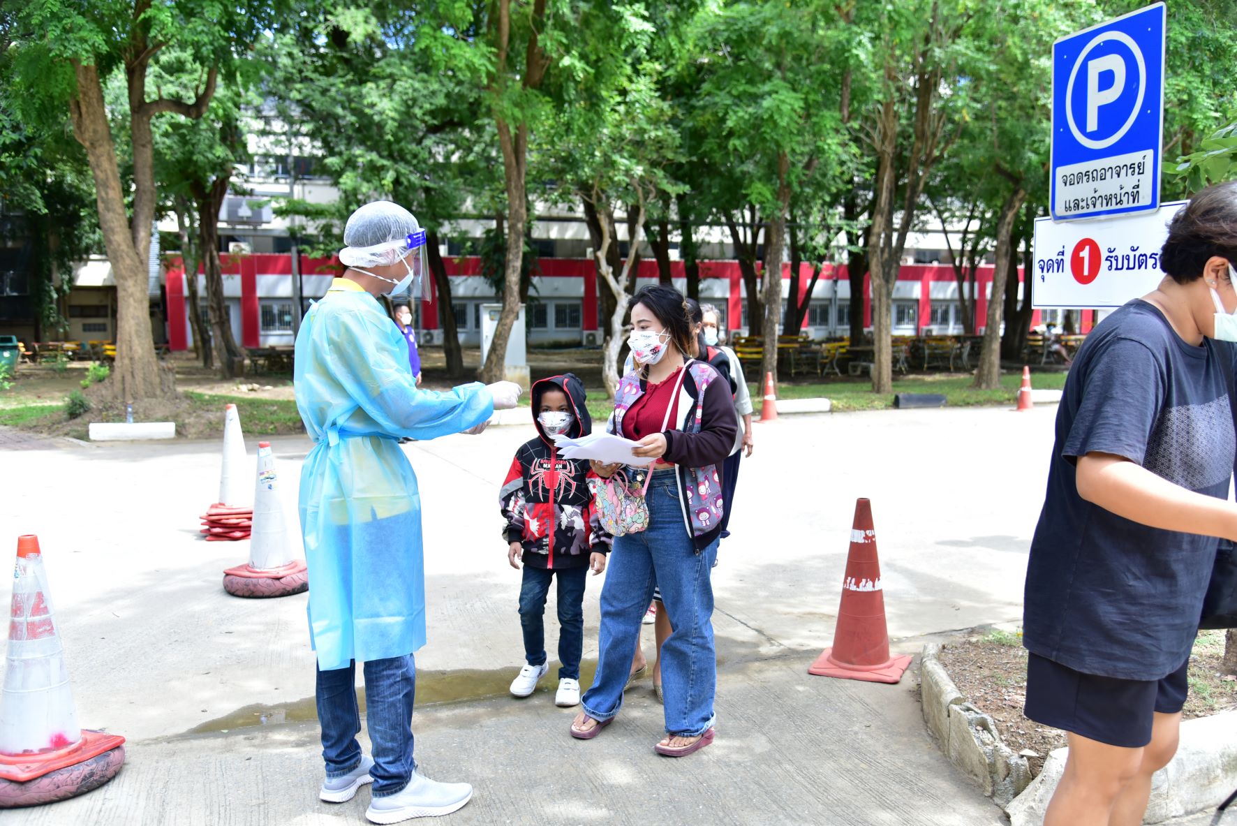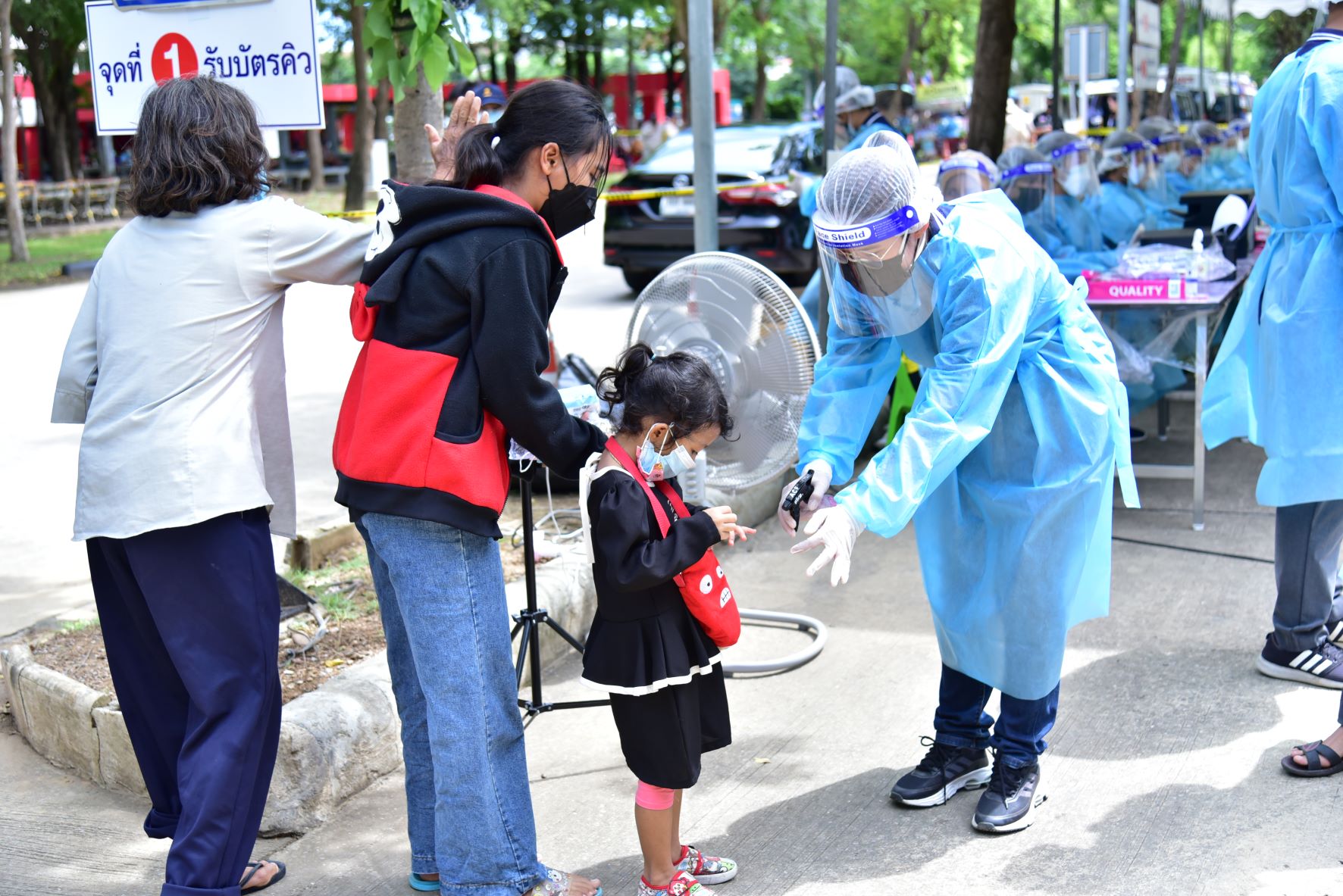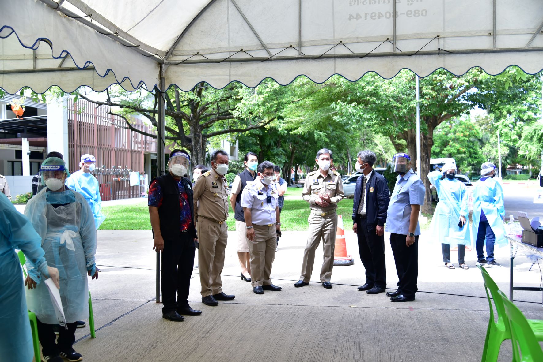วันที่ 23 สิงหาคม 2564 ที่มหาวิทยาลัยราชภัฏนครปฐม นายสุรศักดิ์ เจริญศิริโชติ ผู้ว่าราชการจังหวัดนครปฐม พร้อมด้วยนายอำเภอเมืองนครปฐม อธิการบดีมหาวิทยาลัยราชภัฏนครปฐม ผู้แทนสาธารณสุขจังหวัด ตรวจเยี่ยมการตรวจค้นหาผู้ป่วยโควิด-19 เชิงรุกโดย Antigen Test Kit ฟรี ให้กับผู้ที่มีความเสี่ยงที่มีชื่อตามทะเบียนในจังหวัดนครปฐม รับจำนวน 1,000 คน ทั้งนี้ผู้ที่มีความเสี่ยงสูงและสงสัยว่ามีอาการที่มารับการตรวจ เจ้าหน้าที่ได้แจ้งในเบื้องต้นให้เตรียมเสื้อผ้า ยาประจำตัว และสิ่งของใช้จำเป็นมาพร้อม หากตรวจพบเชื้อจะส่งเข้าระบบรักษา ที่ศูนย์พักคอยสำหรับผู้ป่วยโควิด-19 ณ อาคารหอพักนักศึกษาพยาบาล 2 ภายในมหาวิทยาลัยราชภัฏนครปฐม อำเภอเมือง จังหวัดนครปฐม หากผลเป็นลบและยังไม่ได้รับการฉีดวัคซีนเจ้าหน้าที่จะให้ไปรับการฉีดวัคซีน ณ จุดบริการใกล้เคียงกัน ทั้งนี้เพื่อเป็นการอำนวยความสะดวกแก่ประชาชนที่มีความเสี่ยงให้ได้รับการตรวจ เข้าระบบการรักษา และรับวัคซีนป้องกันโควิด-19 ในเวลาเดียวกัน