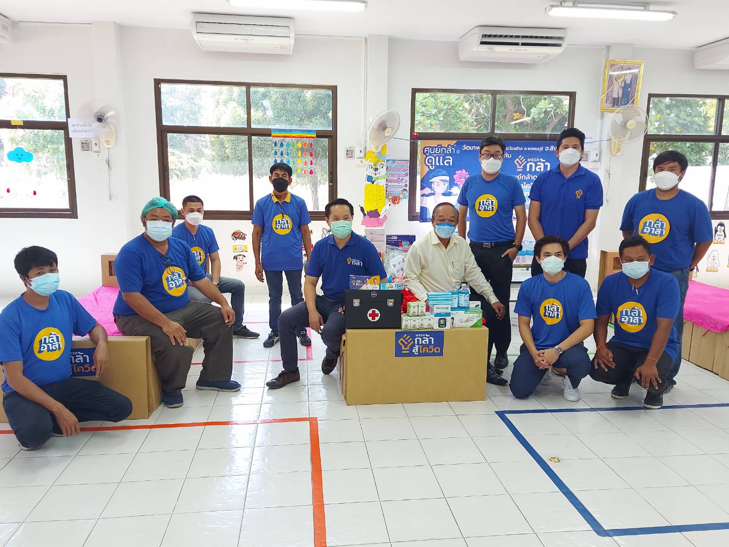 ในการนี้ ทางพรรคกล้า ได้มอบเวชภัณฑ์ เตียงสนาม สิ่งของให้ศูนย์พักคอย พรรคกล้า โดยมอบ – เตียงสนาม – ชุดPPE – หน้ากาก -หน้ากาก N95 – ปรอทวัดไข้ – เครื่องวัดออกซิเจนปลายนิ้ว – เครื่องวัดความดัน – ฟ้าทะลายโจน