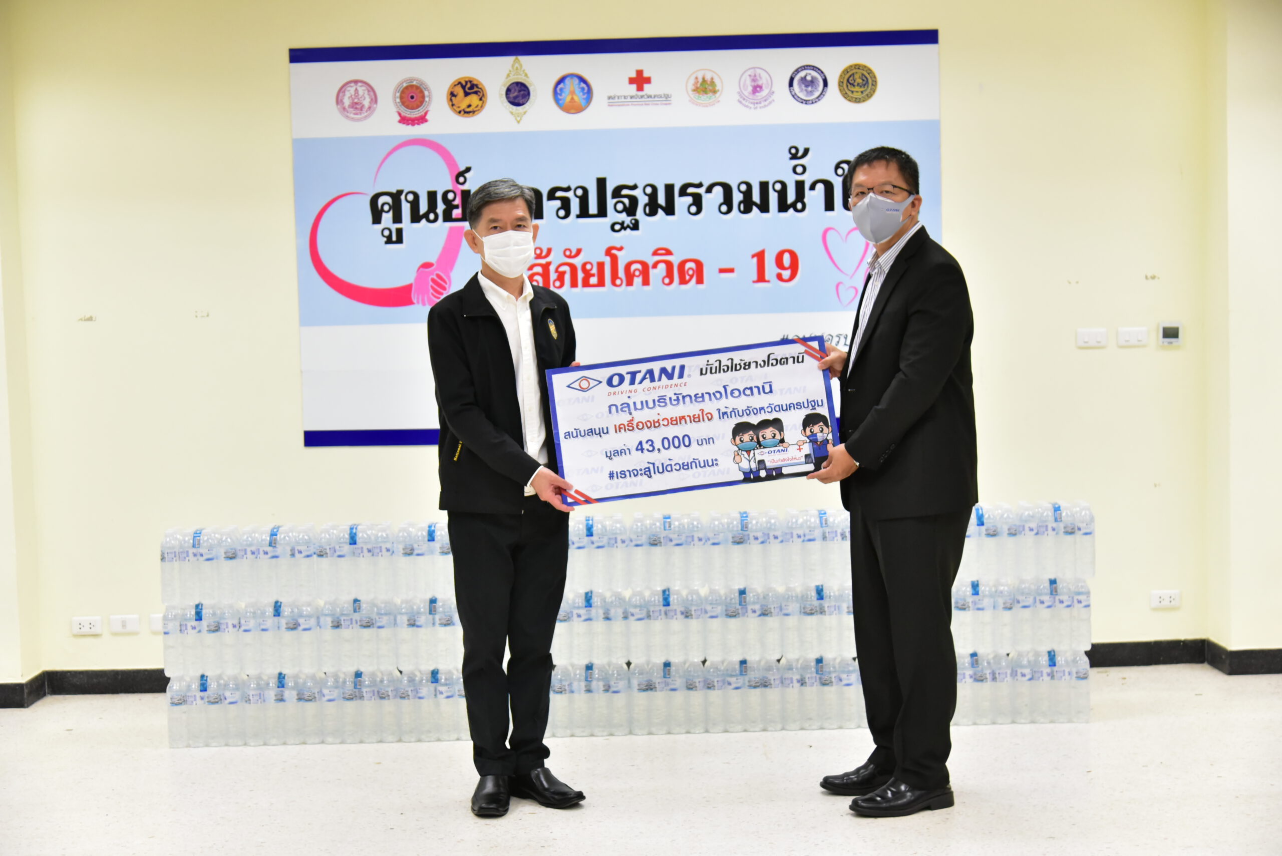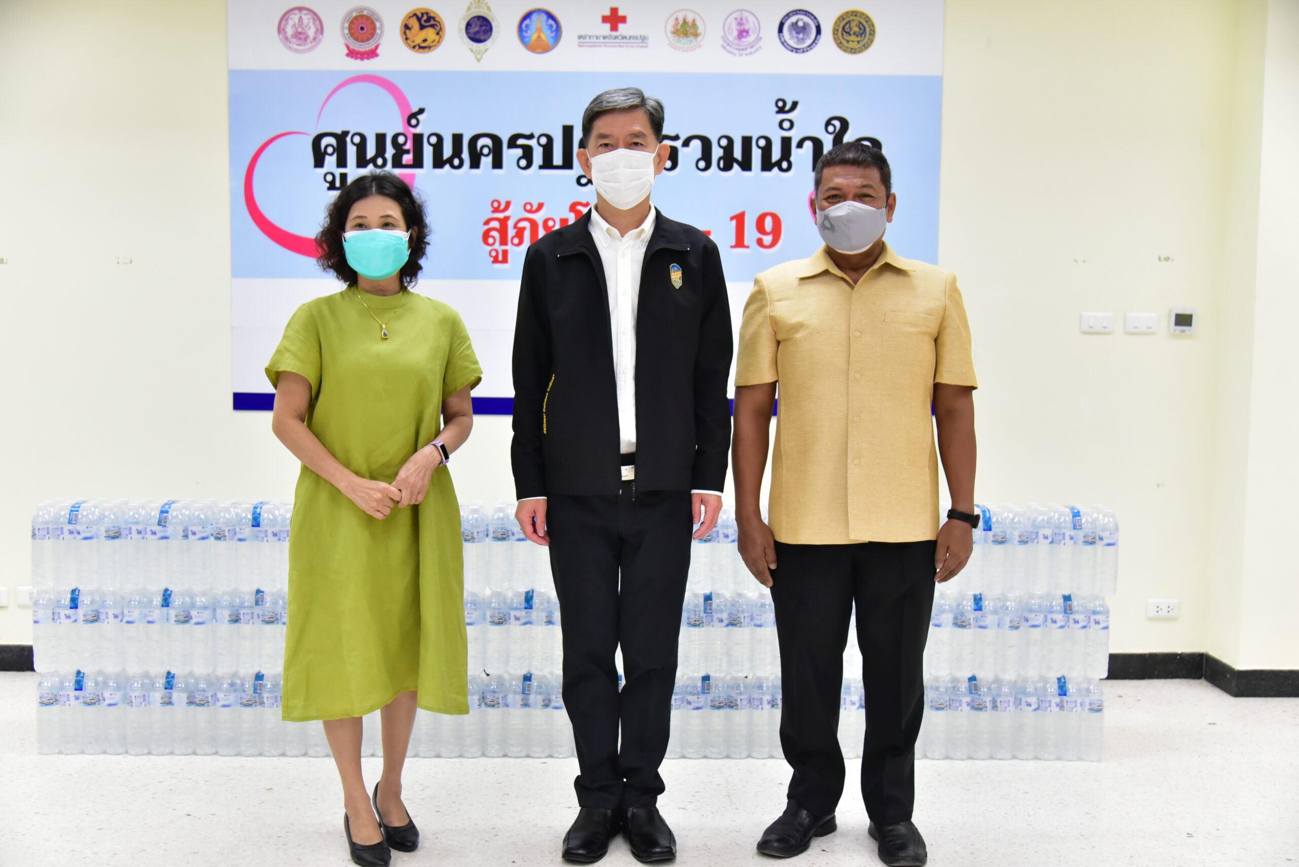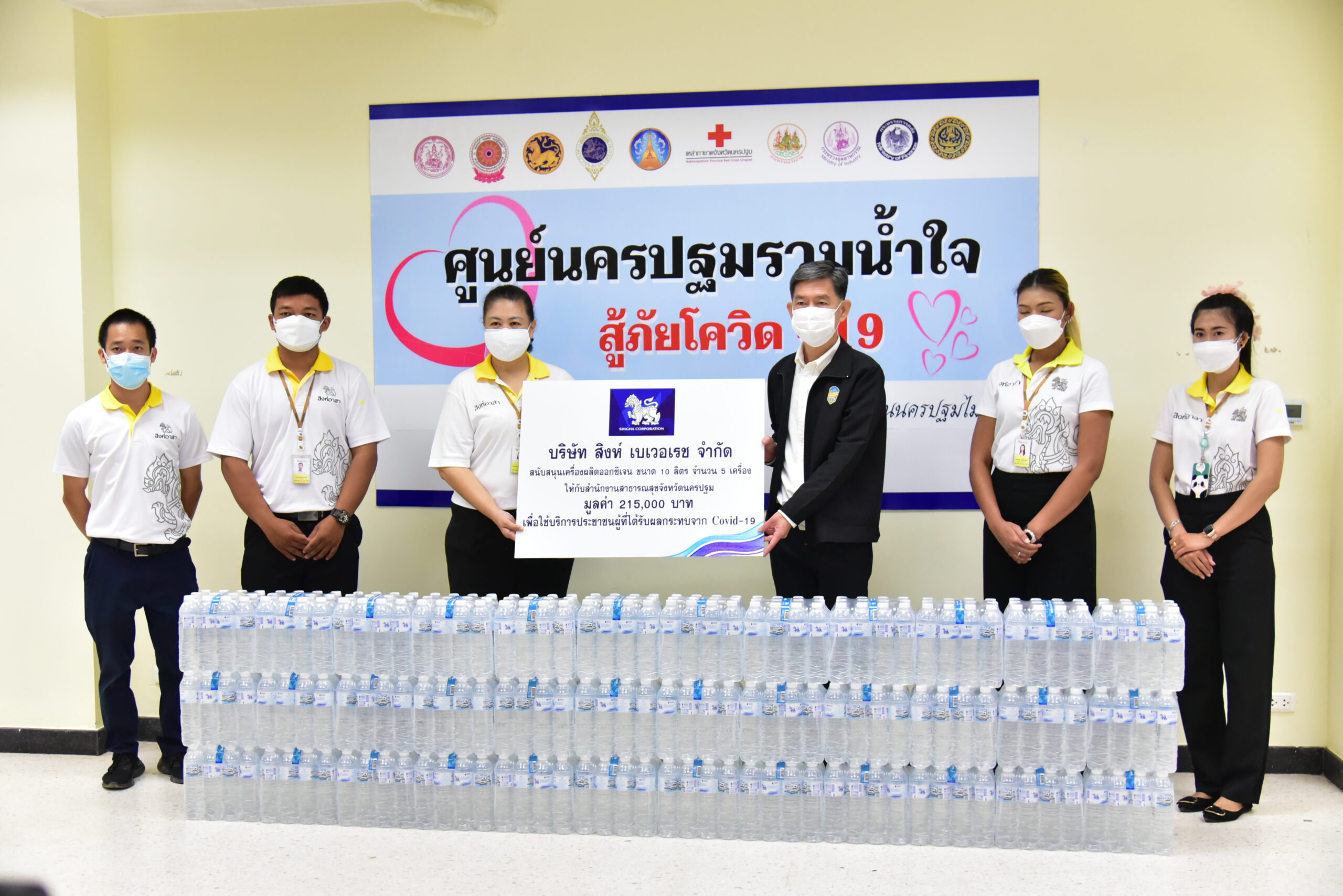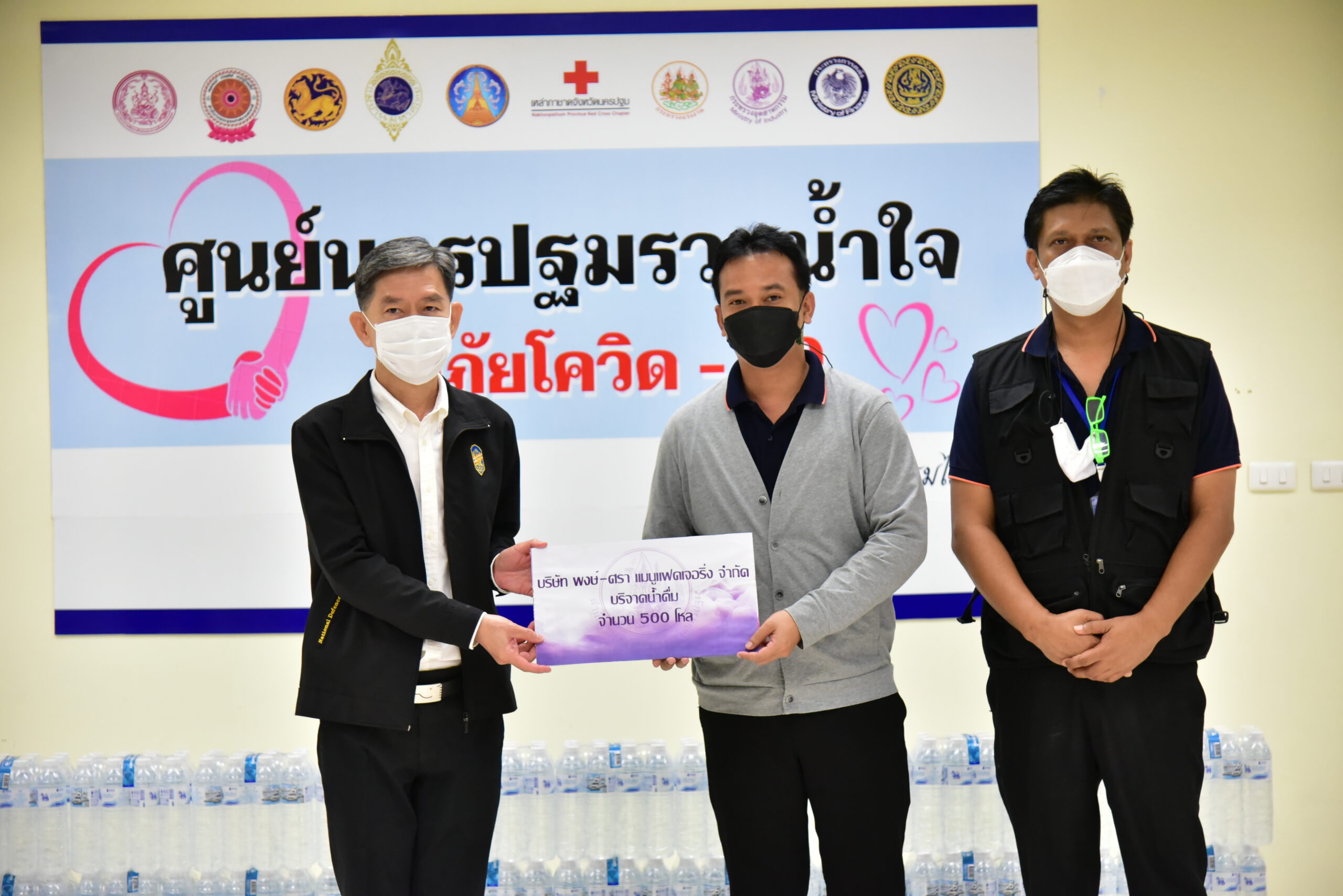 นายสุรศักดิ์ เจริญศิริโชติ ผู้ว่าราชการจังหวัดนครปฐม พร้อมด้วย นายรัฐศาสตร์ ชิดชู รองผู้ว่าราชการจังหวัด และหัวหน้าส่วนราชการ ร่วมรับมอบเงินและสิ่งของบริจาคจากภาคเอกชน สมาคม และบุคคล เพื่อช่วยเหลือผู้ที่ได้รับผลกระทบจากการแพร่ระบาดของโรคติดเชื้อไวรัสโควิด-19 ตลอดจนสนับสนุนโรงพยาบาลในจังหวัดจัดซื้ออุปกรณ์ทางการแพทย์ ได้แก่ เงินสดรวมทั้งสิ้น 52,000 บาท ข้าวสาร 1,000ถุง เครื่องผลิตออกซิเจน รวม 11 เครื่อง เจลแอลกฮอล์ 2,400 หลอด น้ำดื่ม อาหารสำเร็จรูป ตลอดจนกล่องอุ่นใจ เพื่อสนับสนุนการปฏิบัติภารกิจเกี่ยวกับการป้องกันและยับยั้งการแพร่ระบาดของโรคโควิด-19