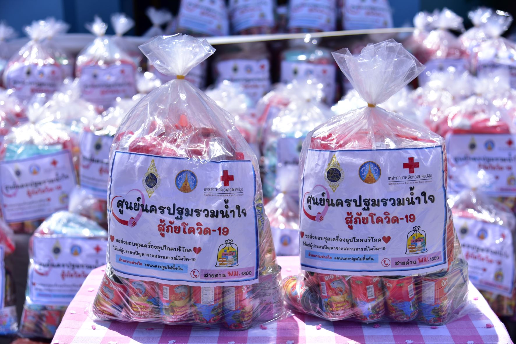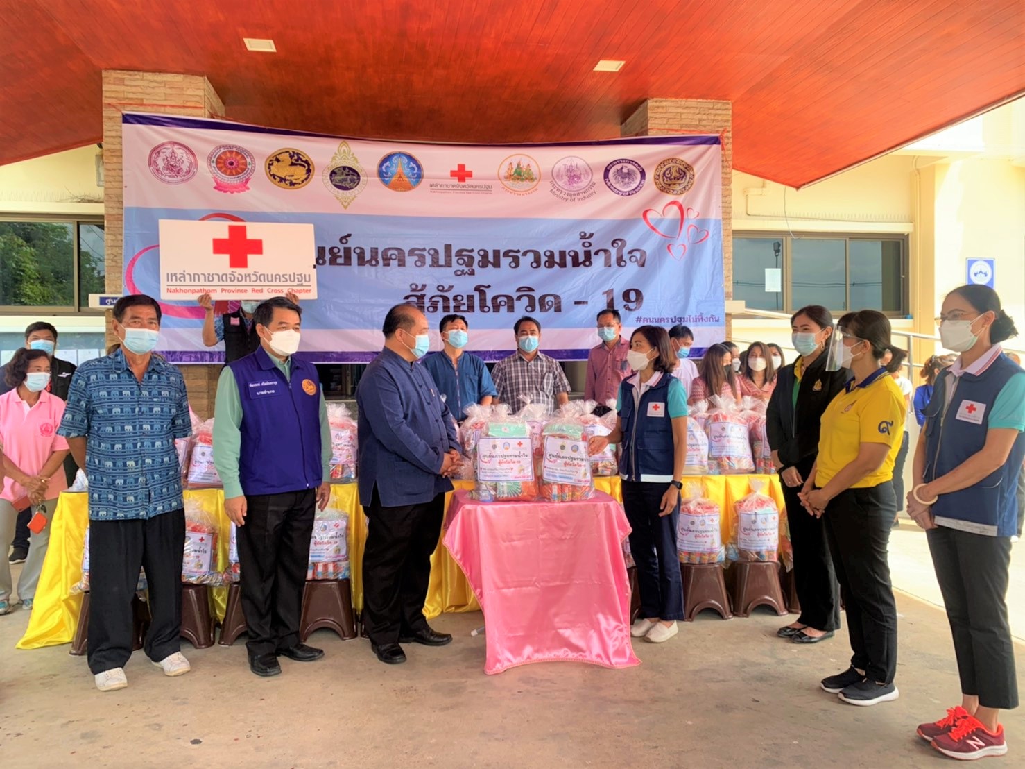 เหล่ากาชาดจังหวัดนครปฐม ลงพื้นที่มอบชุดถุงยังชีพตามชุมชน ให้กับประชาชนกลุ่มเปราะบางที่ได้รับผลกระทบจากสถานการณ์การแพร่ระบาดของเชื้อไวรัสโคโรนา 2019