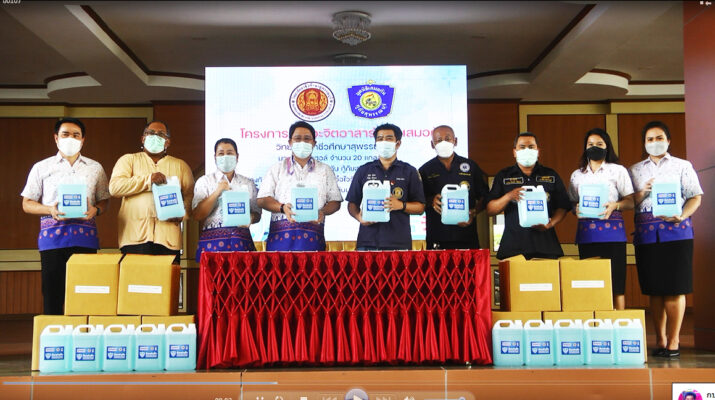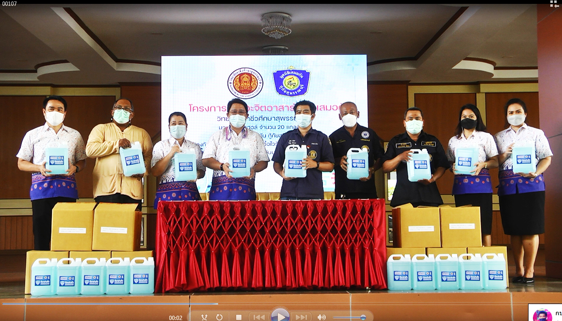 สุพรรณบุรี วิทยาลัยอาชีวศึกษาสุพรรณบุรีมอบแอลกอฮอล์กู้ภัยจิตอาสาด่านหน้า