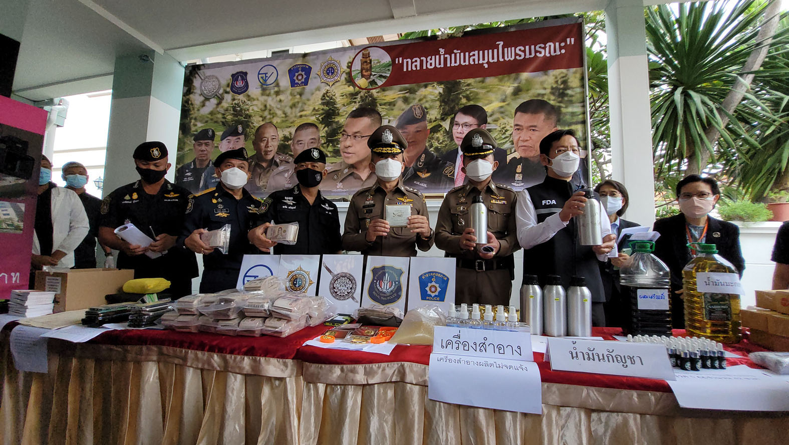 สมุทรปราการ ป.ป.ส.บุกทลายแหล่งผลิตและจำหน่ายน้ำมันกัญชาออนไลน์ยึดของกลางมูลค่ากว่า 42 ล้านบาท