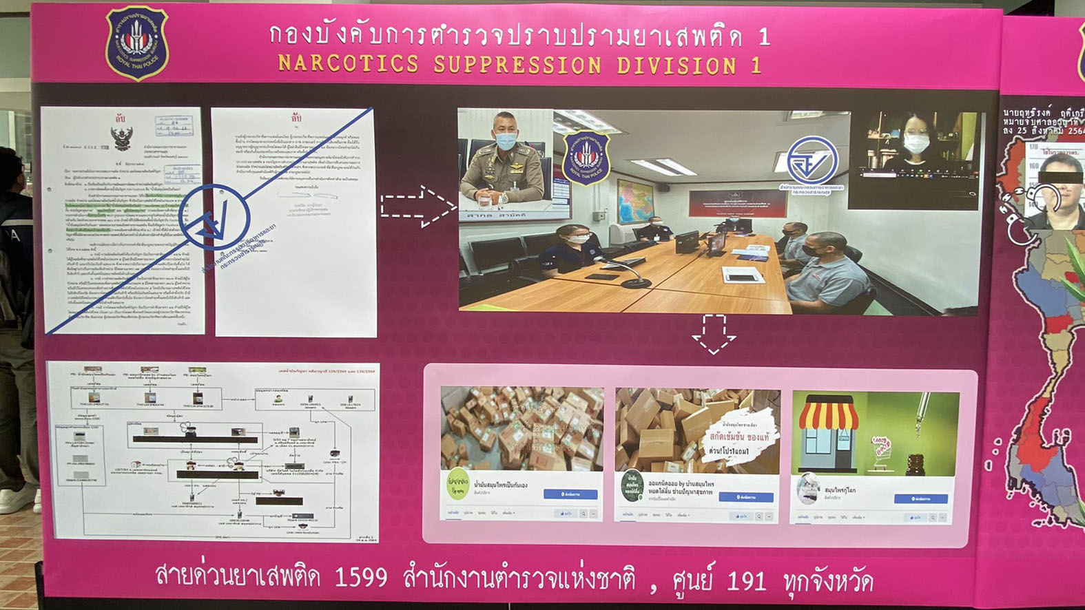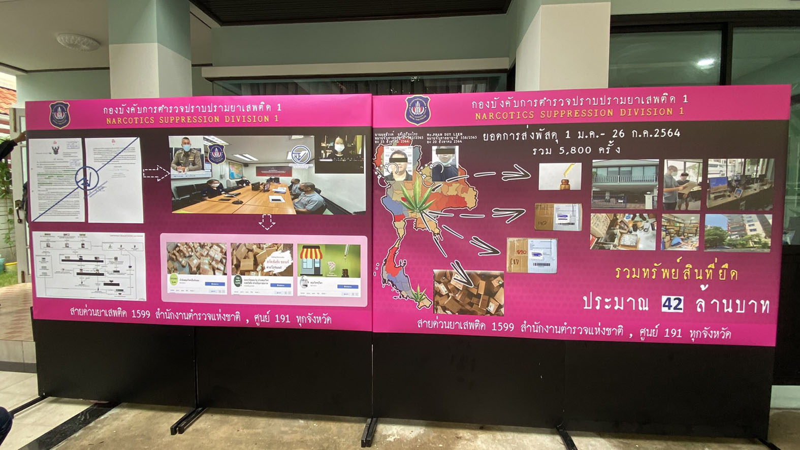 *****ทั้งนี้สืบเนื่องจากก่อนหน้านี้เจ้าหน้าที่ตำรวจ บก.ปส. 1 ได้รับการประสานงานจาก กองควบคุมวัตถุเสพติดสำนักงานคณะกรรมการอาหารและยา กระทรวงสาธารณสุข ขอความร่วมมือในการตรวจสอบการผลิต จำหน่าย และโฆษณาผลิตภัณฑ์กัญชา ซึ่งเป็นยาเสพติดให้โทษประเภท 5 ผ่านทางสื่อสังคมออนไลน์ โดยกลุ่มบุคคลใช้เพจเฟสบุ๊คชื่อ น้ำมันสมุนไพรเป็นกันเอง ออแกนิคออยby บ้านสมุนไพรหยดใต้ลิ้น ช่วยปัญหาสุขภาพ สมุนไพรกู้โลก พล.ต.ท.มนตรี ยิ้มแย้ม ผบช.ปส.จึงได้สั่งการให้เจ้าหน้าที่ตำรวจ กก. 3 บก.ปส. 1 เร่งสืบสวนหาข่าววางแผนสืบสวนจับกุมวางแผนซื้อน้ำมันกัญชาจากผู้ค้ารายนี้ ผลการตกลงซื้อขาย ผู้ขายได้ส่งน้ำมันกัญชามาให้ทางพัสดุ จึงตรวจยึดไว้เป็นของกลางและสืบสวนหาต้นทางจนกระทั่งทราบว่าแหล่งผลิตและจำหน่วยอยู่บ้านเลขที่ 9/53 หมู่บ้าน ธนาภิรมย์ ถ.ศรีนครินทร์ ต.เทพารักษ์ อ.เมือง จ.สมุทรปราการ จึงได้รวบรวมพยานหลักฐานขออนุมัติหมายจับเข้าตรวจค้นและสามารถจับกุมผู้กระทำผิดได้จำนวน 2 ราย และตรวจพบยาเสพติดและของกลางรายอื่นๆ รวมทั้งทรัพย์สินที่เกี่ยวข้องกับการกระทำผิด จึงยึดไว้เป็นของกลาง