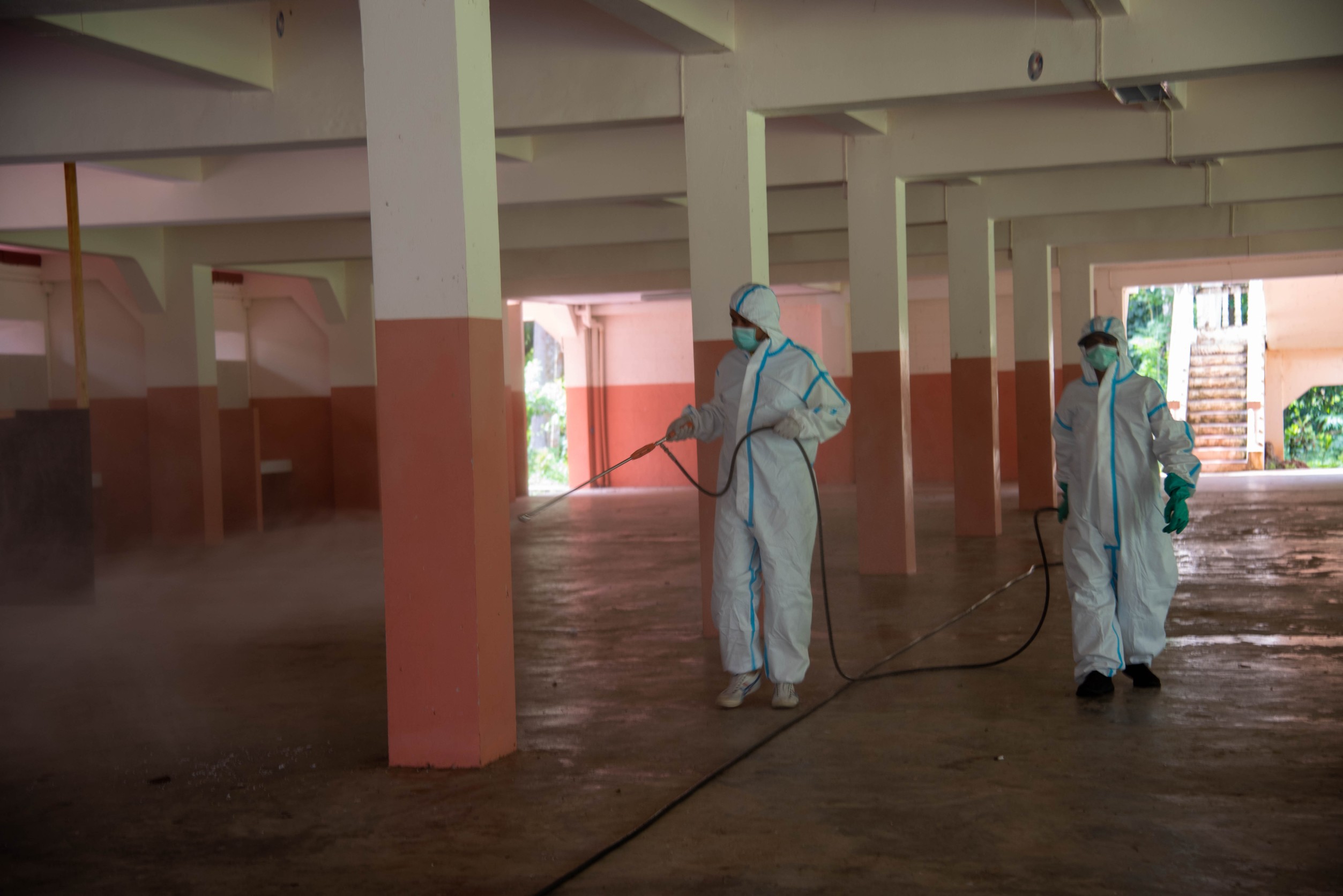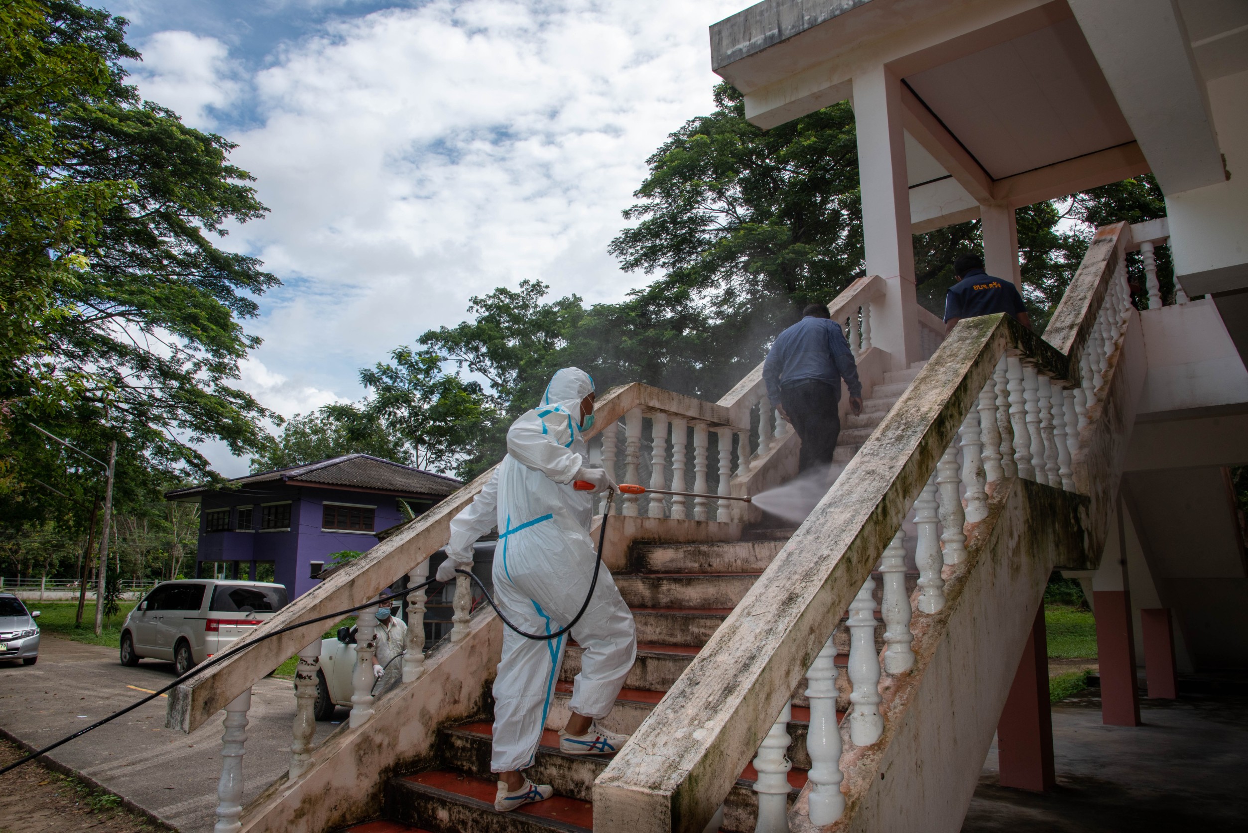 อบจ.ตรัง ฉีดพ่นยาฆ่าเชื้อป้องกันโควิด -19 รอบๆบริเวณโรงพยาบาลสนามชุมชน (Community Isolation) ที่ค่ายลูกเสือรัษฏานุประดิษฐ์ อ.นาโยง จ.ตรัง