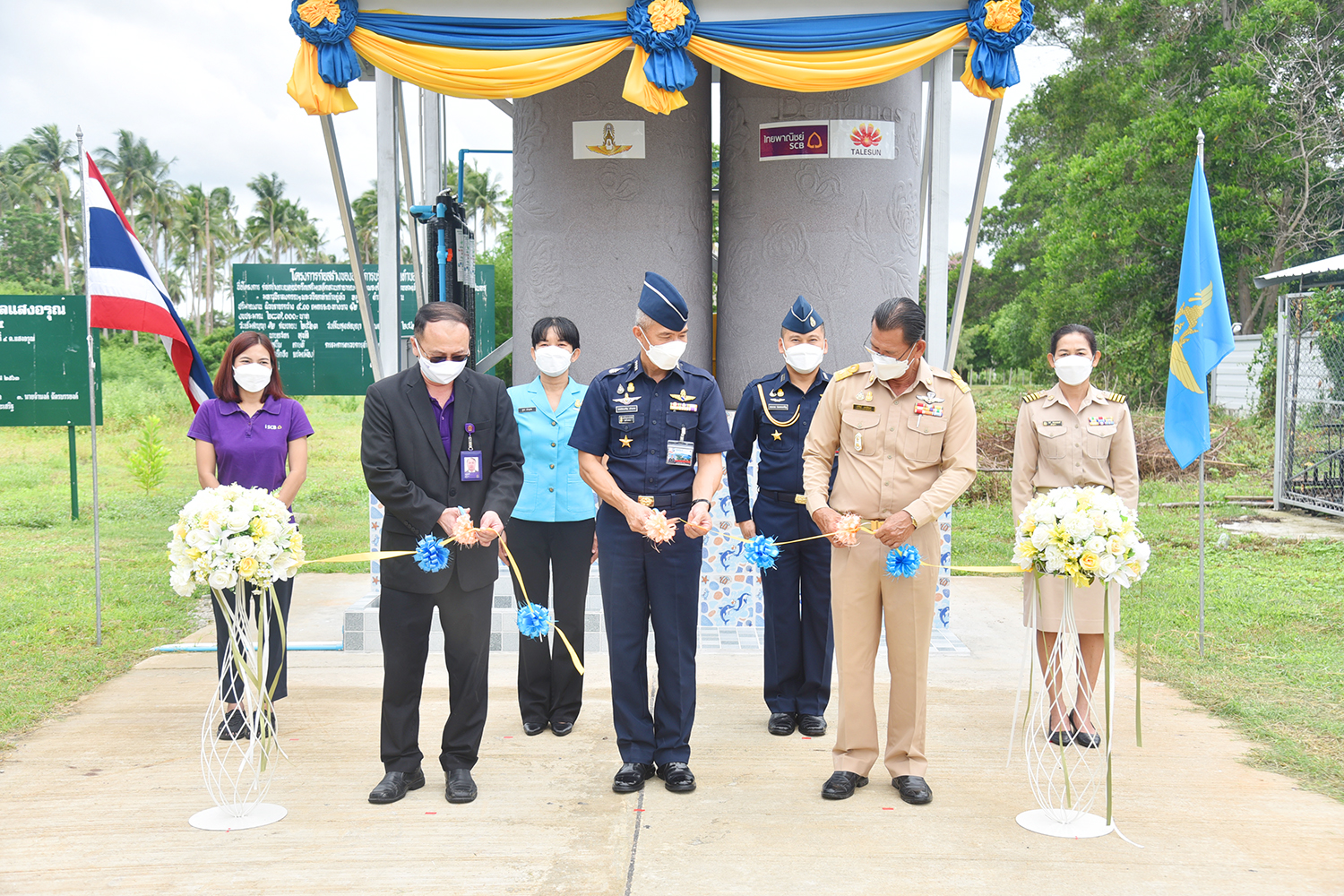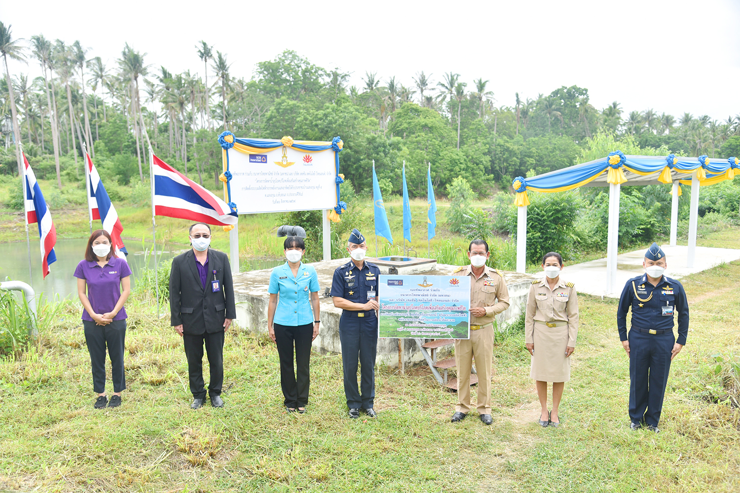 ทัังนี้กองทัพอากาศ ร่วมกับธนาคารไทยพาณิชย์ จำกัด(มหาชน) และบริษัทเทลซันเทคโนโลยี(ประเทศไทย) ร่วมส่งมอบให้กับชุมชนในพื้นที่ โดยมี นายสุรศิลป์ ยนปลัดยศ นายกองค์การบริหารส่วนตำบลแสงอรุณ และผู้ใหญ่บ้านหมู่ที่ 4 เป็นผู้แทนรับมอบ ณ ชุมชนหมู่ที่ 4 ตำบลแสงอรุณ อำเภอทับสะแก จังหวัดประจวบคีรีขันธ์ การจัดพิธีดังกล่าว ได้ปฏิบัติตามมาตรการการป้องกันการแพร่ระบาดของโรคติดเชื้อไวรัสโคโรนา 2019 (โควิด-19) อย่างเคร่งครัด